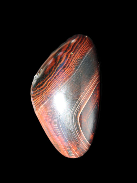 This Crazy Lace Agate from Madagascar weighs 71g. It measures 55*25*31mm. The Crazy Lace Silk Banded Agate is found only on the West Central Coast of Madagascar.