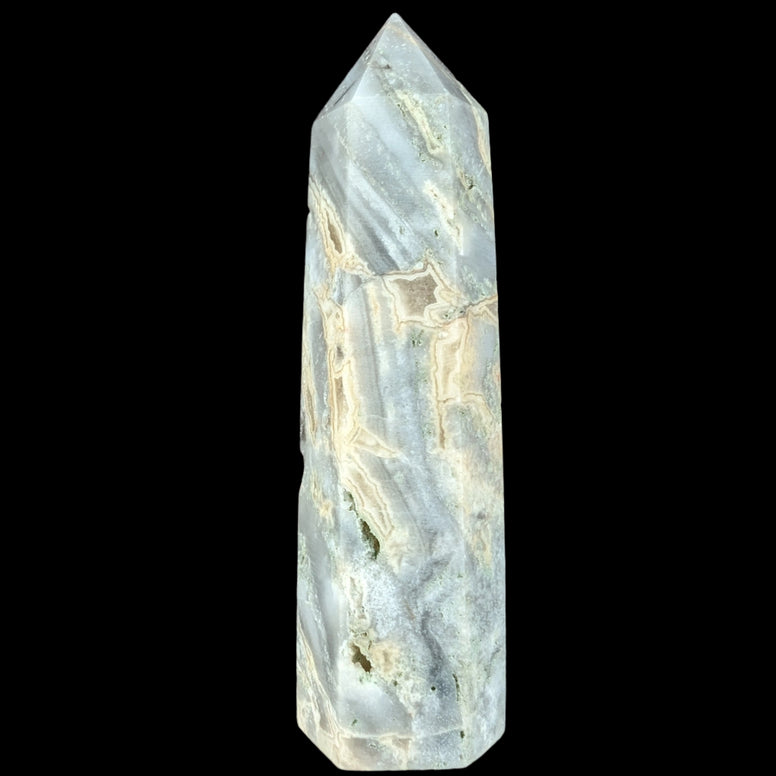 This Claybank Agate Marquise wand weighs 74g. Agate carries a quiet energy that works on the subtle bodies. This is good for achieving stability and balance in key aspects of your life. Agate works in the background on the cause of your issues, rather than its symptoms. Agate can also help you with overcoming negative emotions by bringing love into the chakras. This grounding of emotions makes Agate great for easing anxiety and stress. Agate can improve your mental functioning by helping you find clarity and steadiness. Agate can also boost creativity. In combination, these two qualities make Agate a good stone for both students and artists.