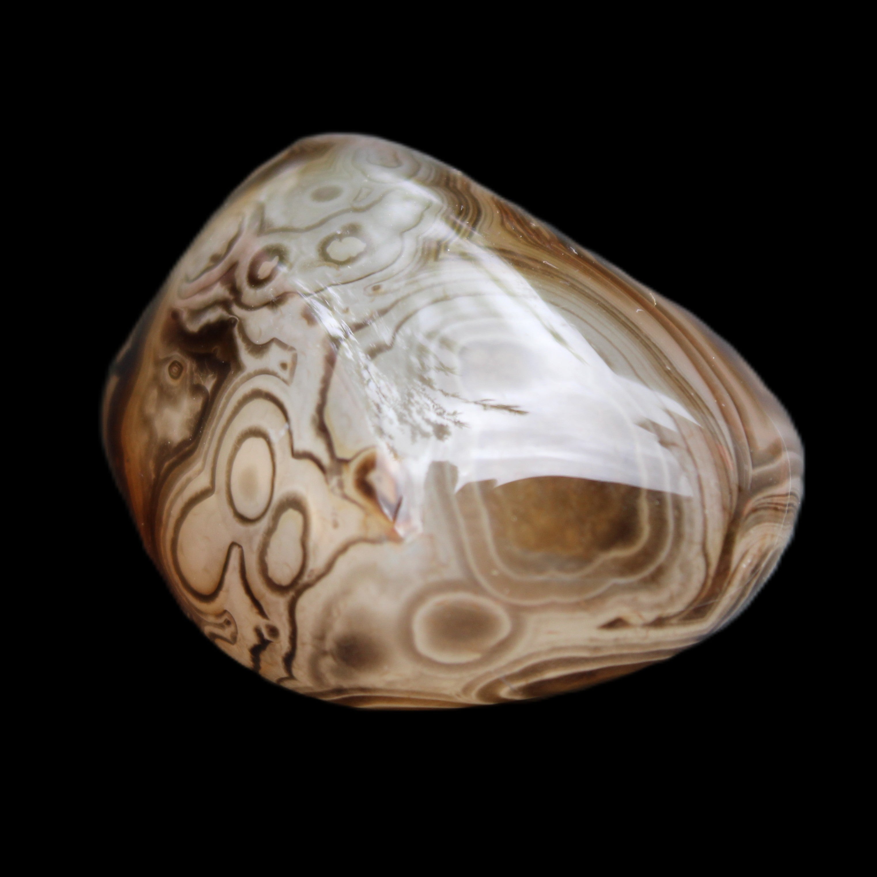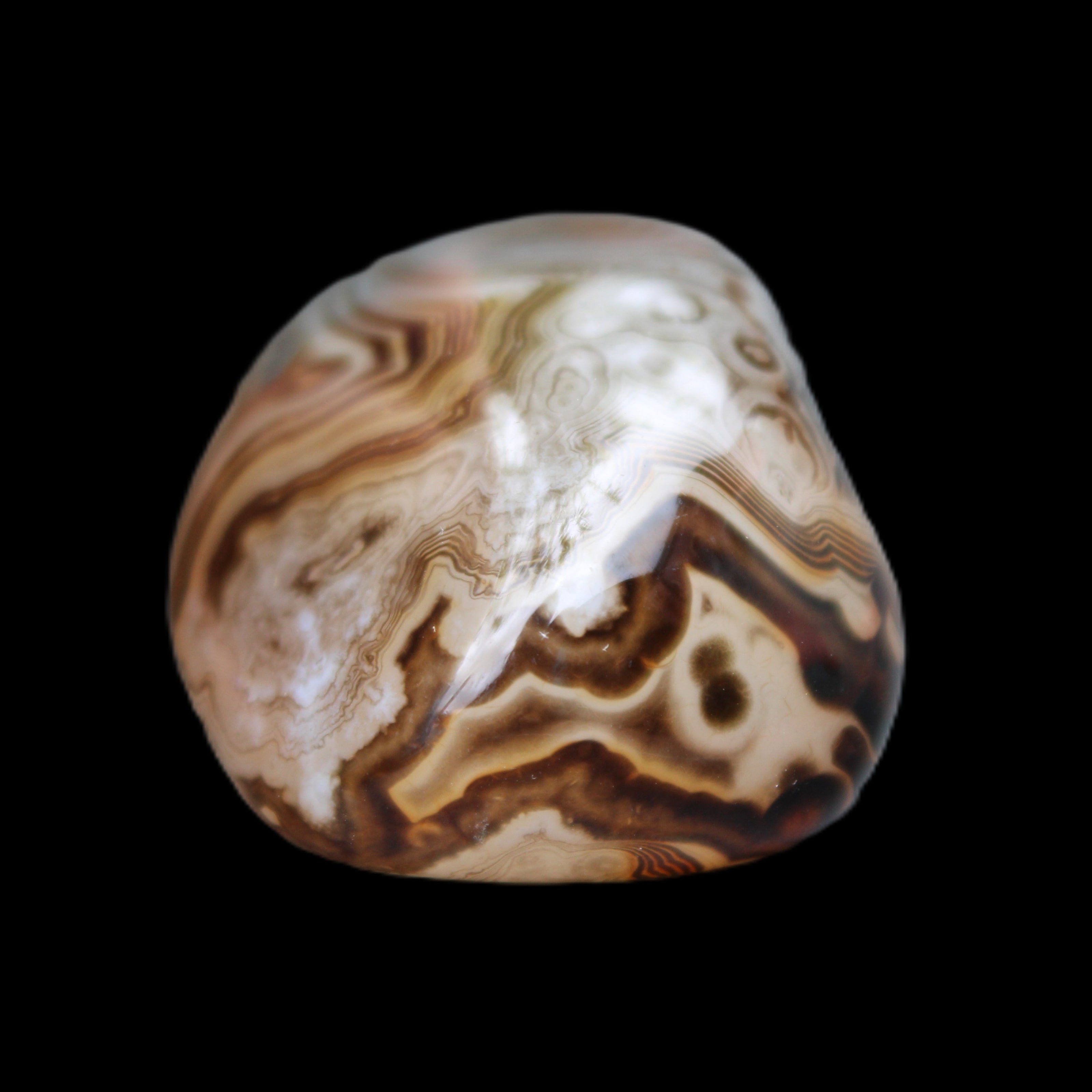 Like all agates, these vibrate to a slower frequency than other microcrystalline quartz. This results from the multiplicity of tight banding, layers, and eyes within the agates. These beautiful features teach the importance of slowing down and being at peace with a slower pace. The Madagascar Agate has pronounced ability to encourage positive thoughts, allowing you to deal with negative thinking. These agates have an instant soothing feel to them. It also assists with finding and understanding your deeper purpose and meaning in life.
