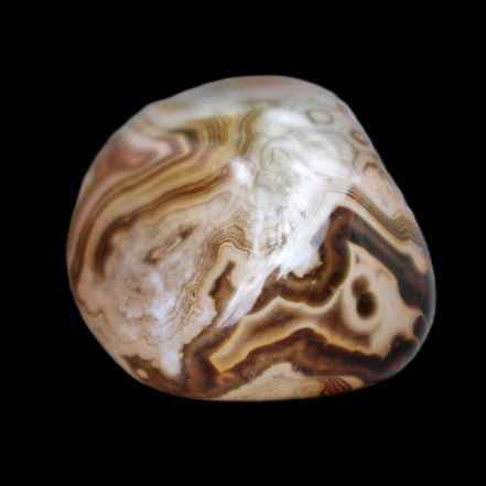 This Crazy Lace Sardonyx Agate from Madagascar 36*22*18mm weighs 24g. Sardonyx has light and dark banding with reddish and brown tones. The original Crazy Lace Agate is found only in Mexico. The Crazy Lace Silk Banded Agate is found only on the West Central Coast of Madagascar. Crazy Lace Agate features swirling patterns of cream, brown, red, and yellow. It is uplifting, protective, and encourages mental agility and balance.