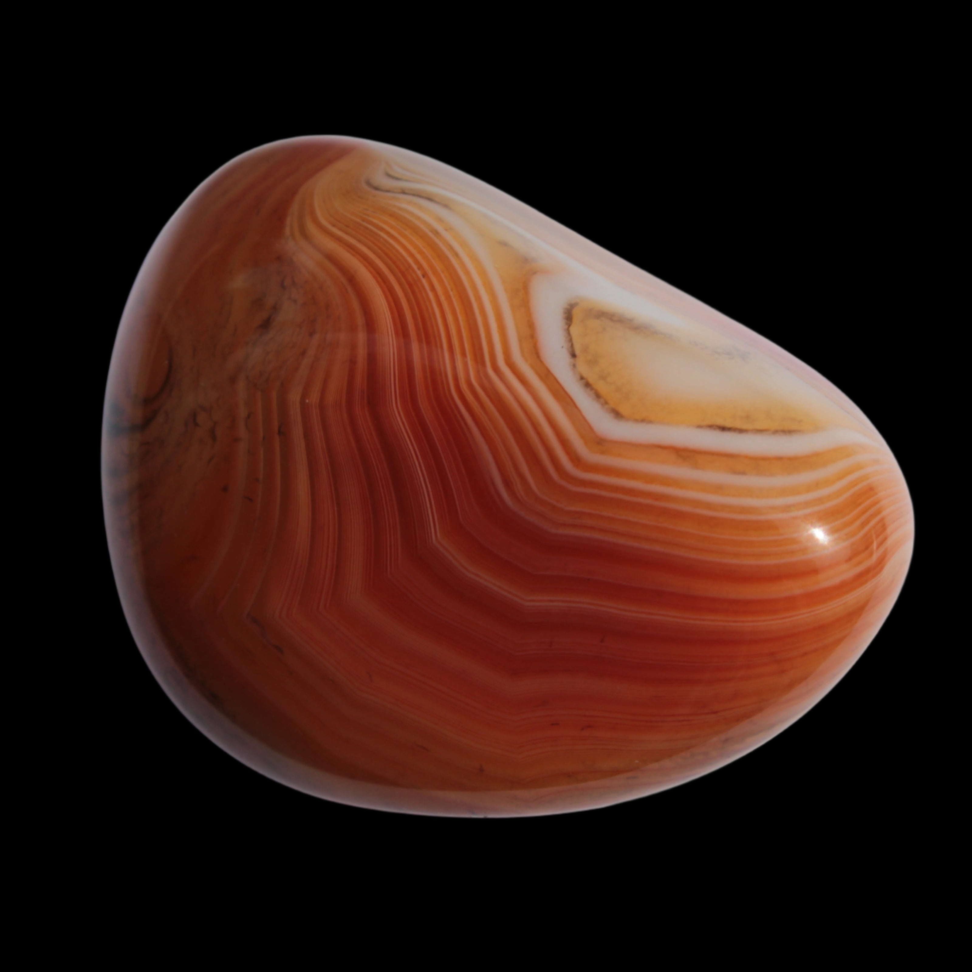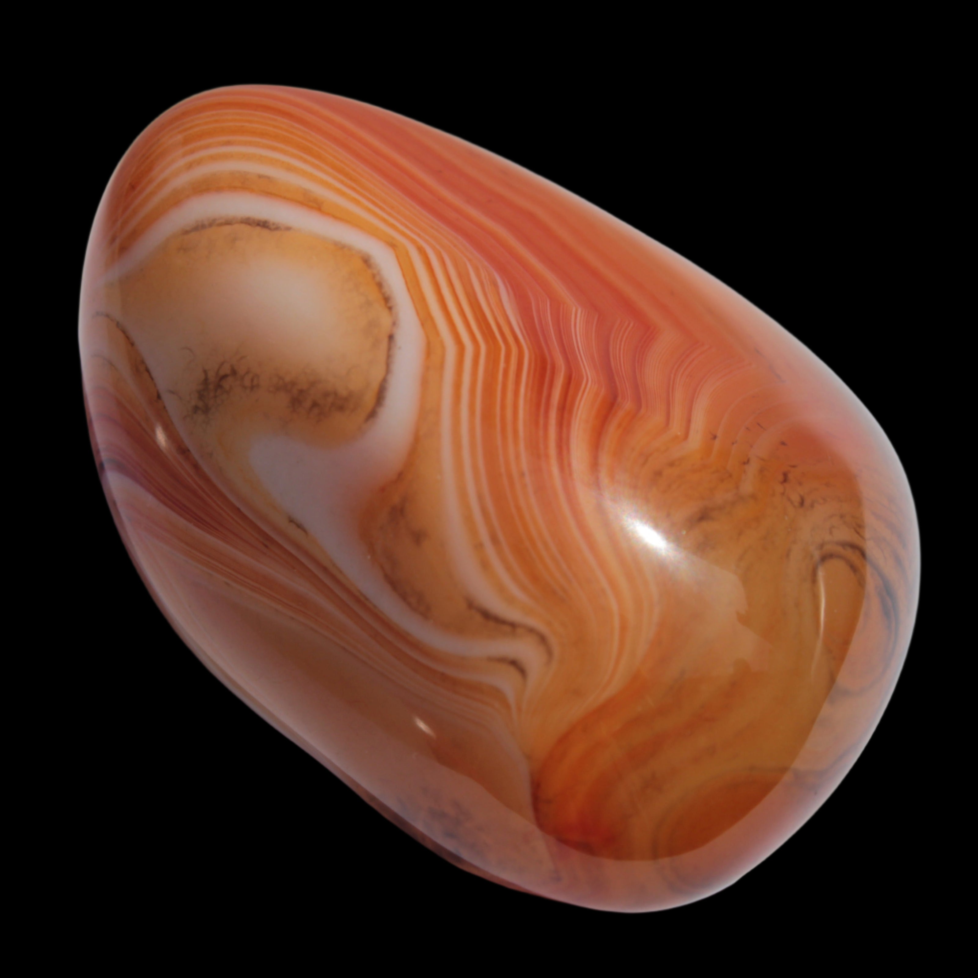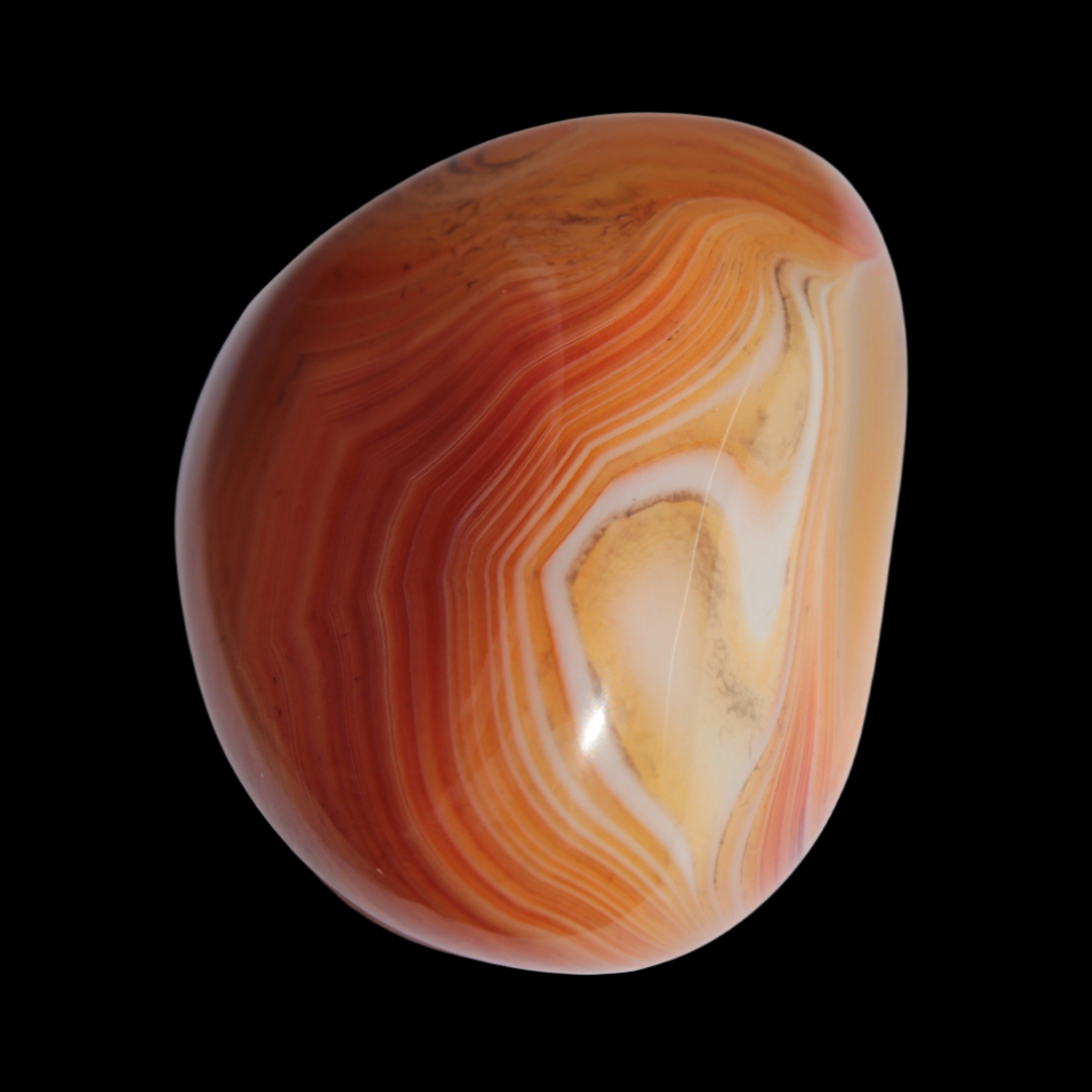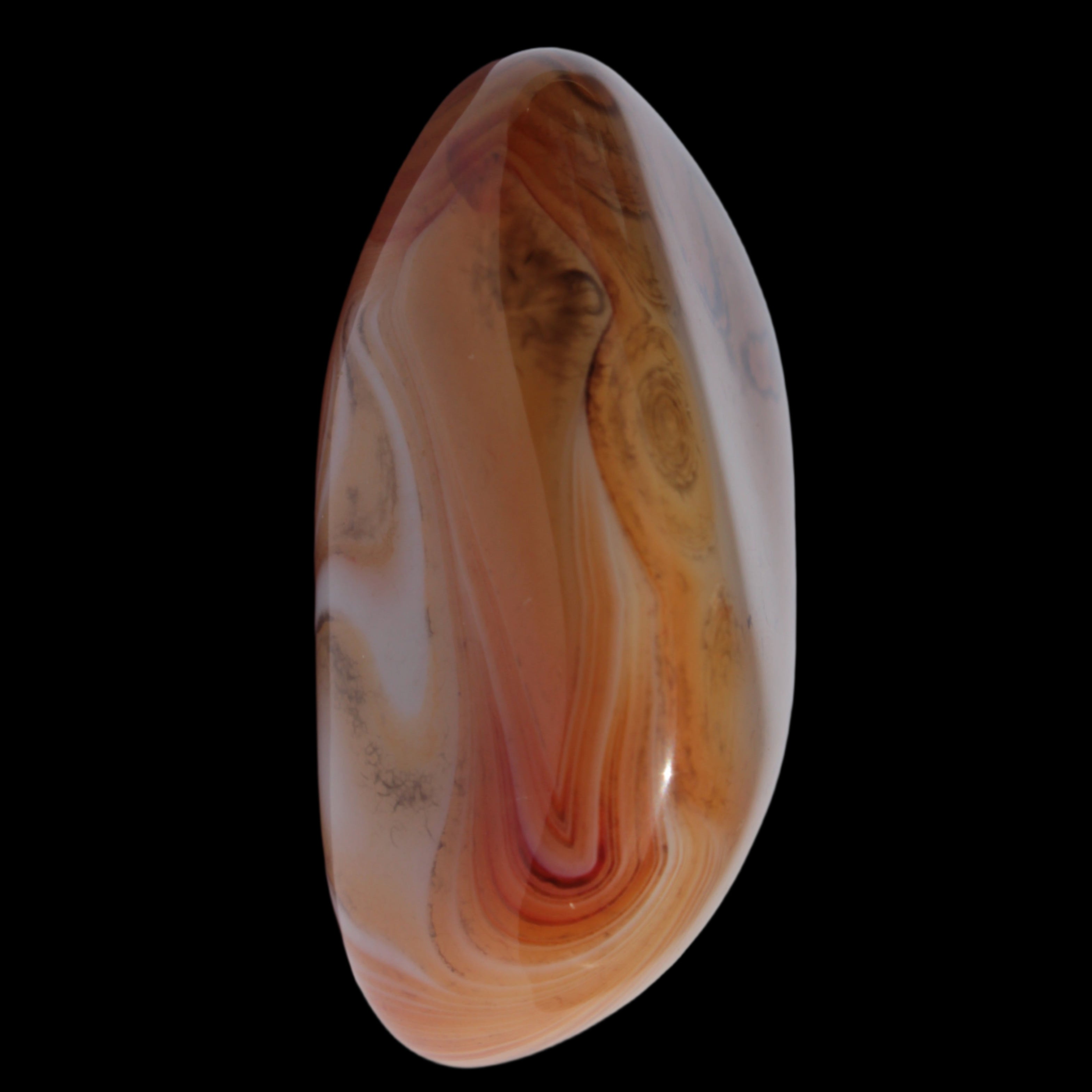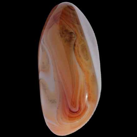 This Crazy Silk Banded Agate from Madagascar weighs 33g. The original Crazy Lace Agate is found only in Mexico. The Crazy Lace Silk Banded Agate is found only on the West Central Coast of Madagascar. Crazy Lace Agate features swirling patterns of cream, brown, red, and yellow. It is uplifting, protective, and encourages mental agility and balance.