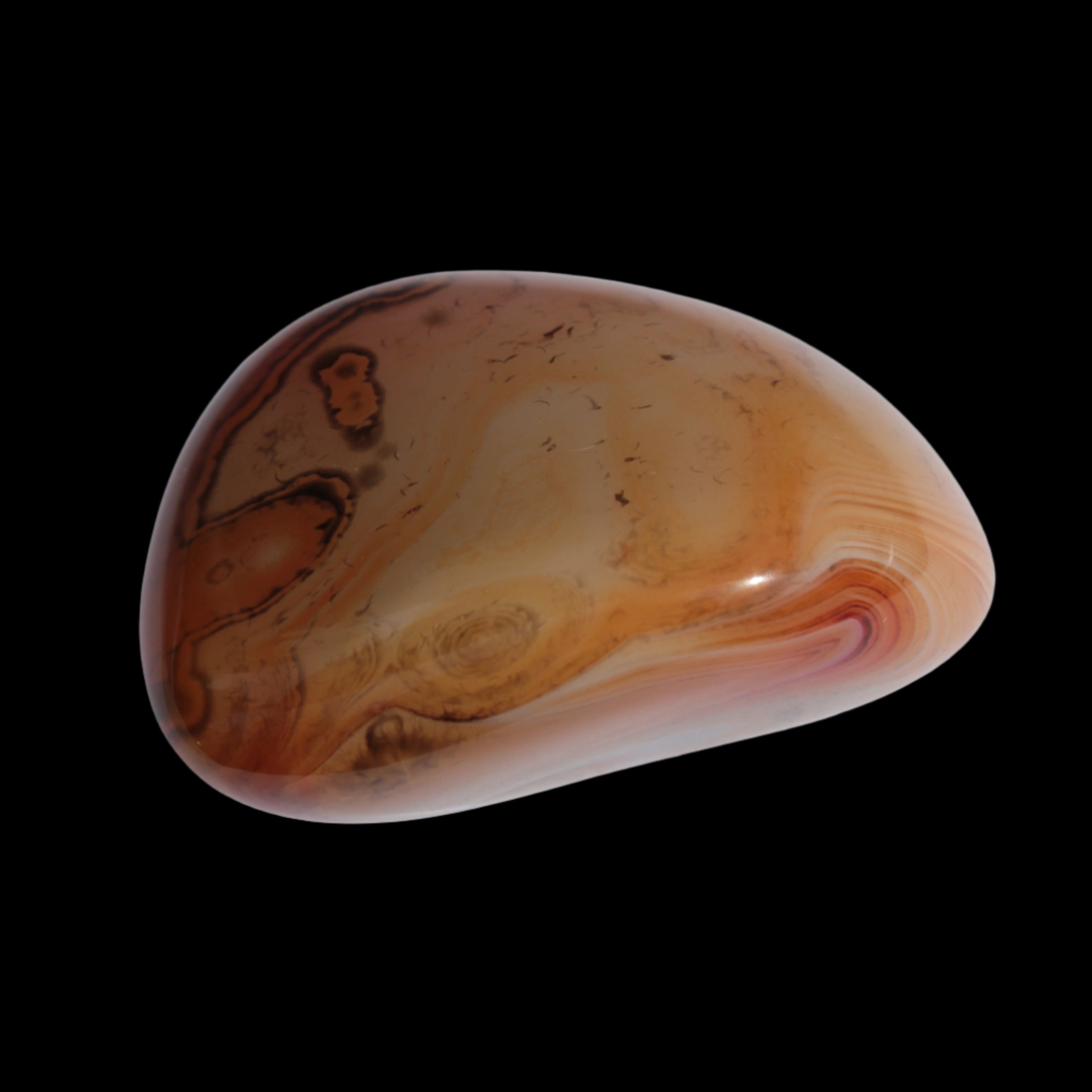 Like all agates, these vibrate to a slower frequency than other microcrystalline quartz. This results from the multiplicity of tight banding, layers, and eyes within the agates. These beautiful features teach the importance of slowing down and being at peace with a slower pace. The Madagascar Agate has pronounced ability to encourage positive thoughts, allowing you to deal with negative thinking. These agates have an instant soothing feel to them. It also assists with finding and understanding your deeper purpose and meaning in life.