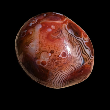 Slowing down: The original Crazy Lace Agate is found only in Mexico. The Crazy Lace Silk Banded Agate is found only on the West Central Coast of Madagascar. Like all agates, these vibrate to a slower frequency than other microcrystalline quartz. This results from the multiplicity of tight banding, layers, and eyes within the agates. These beautiful features teach the importance of slowing down and being at peace with a slower pace. The Madagascar Agate has pronounced ability to encourage positive thoughts, allowing you to deal with negative thinking. These agates have an instant soothing feel to them.