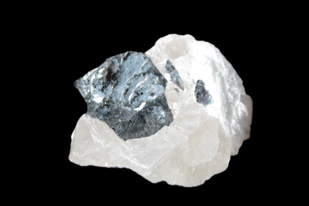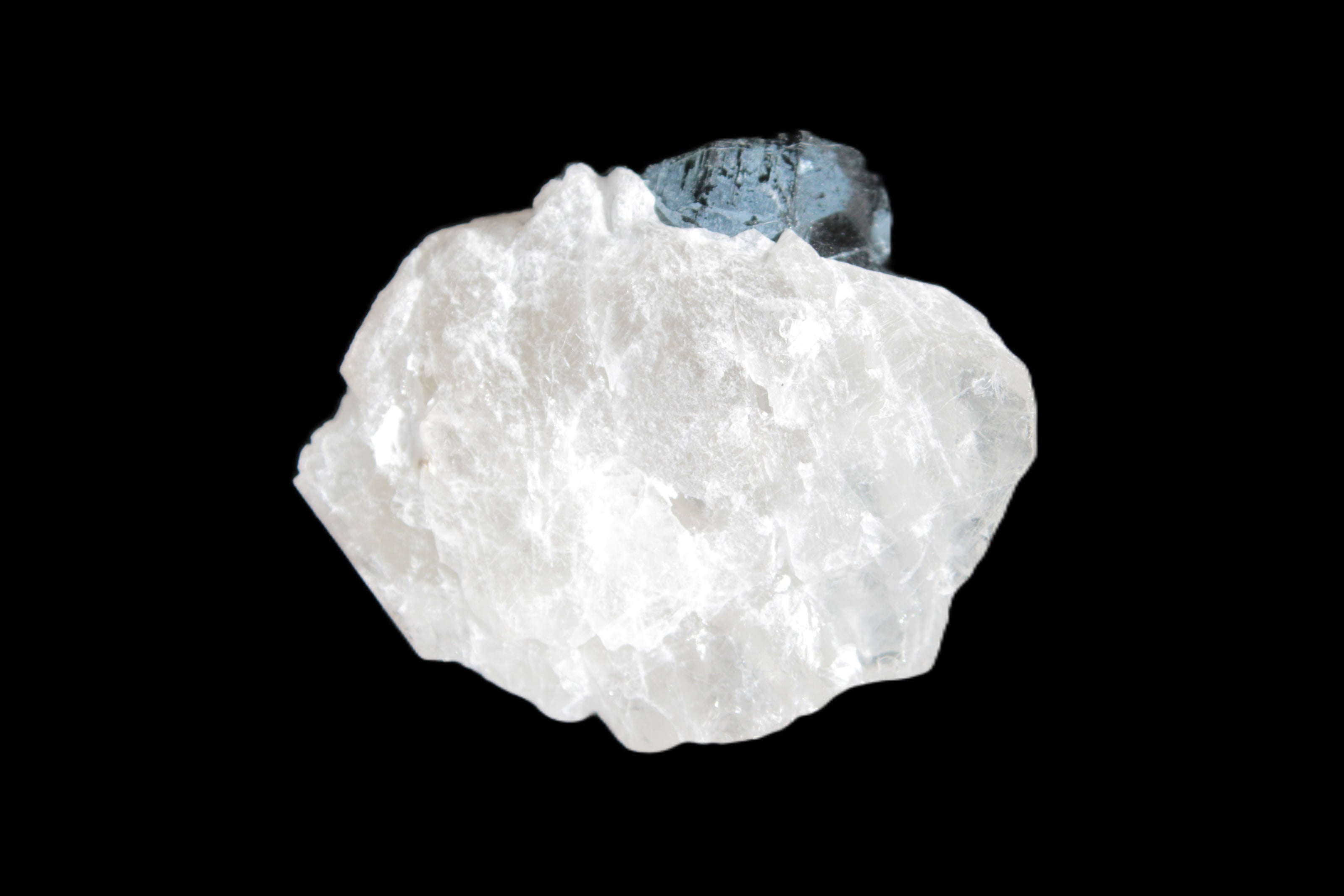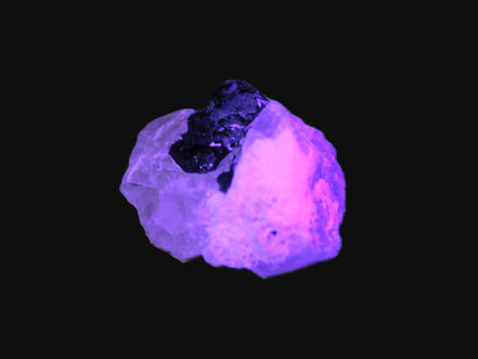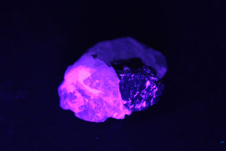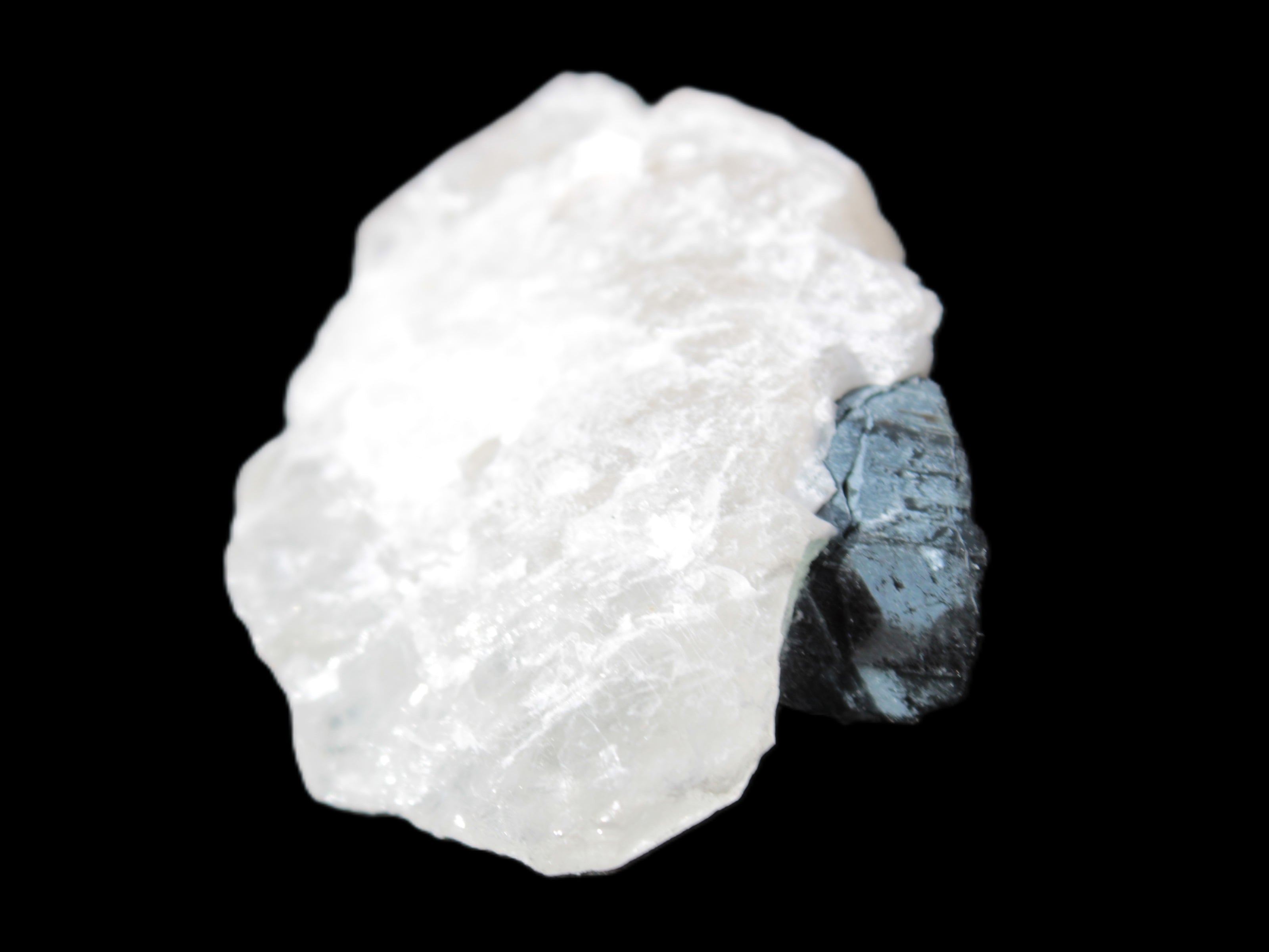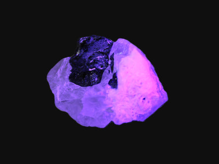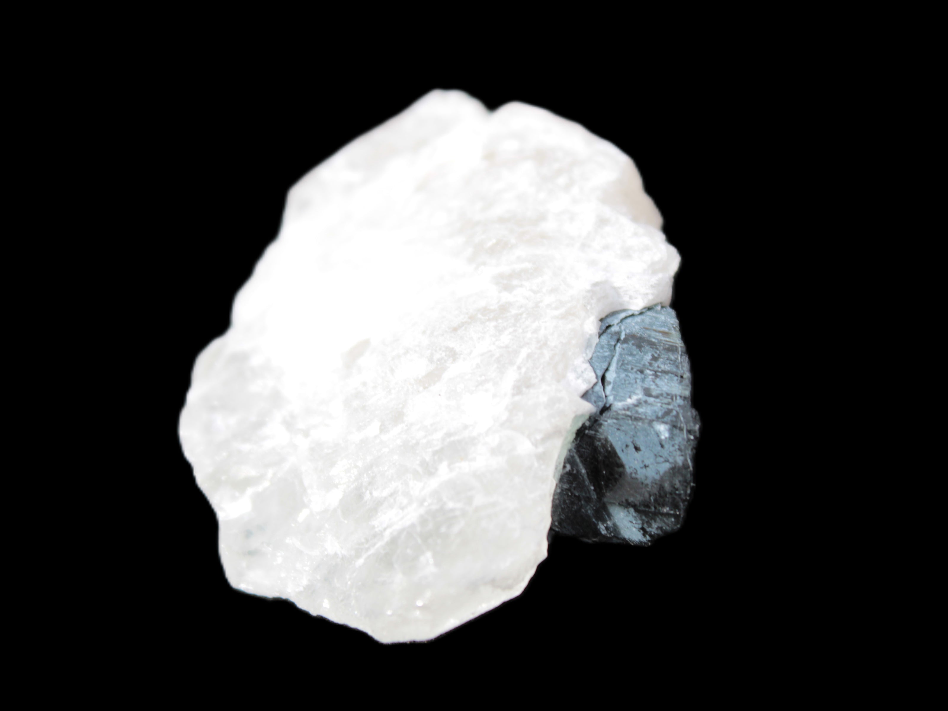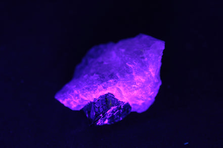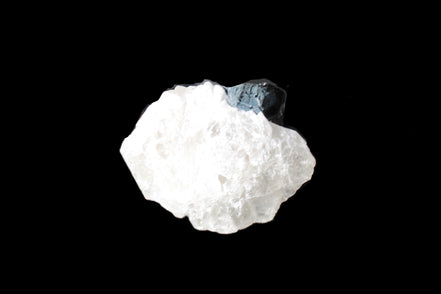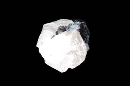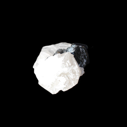 This Blue Tourmaline Indicolite on Black Tourmaline was obtained in the gem-fields of Afghanistan for Rocks and Things by our partner, Lawrence Handicrafts. The matrix is UV reactive Calcite. The Black Tourmaline flashes with rainbows in strong light.