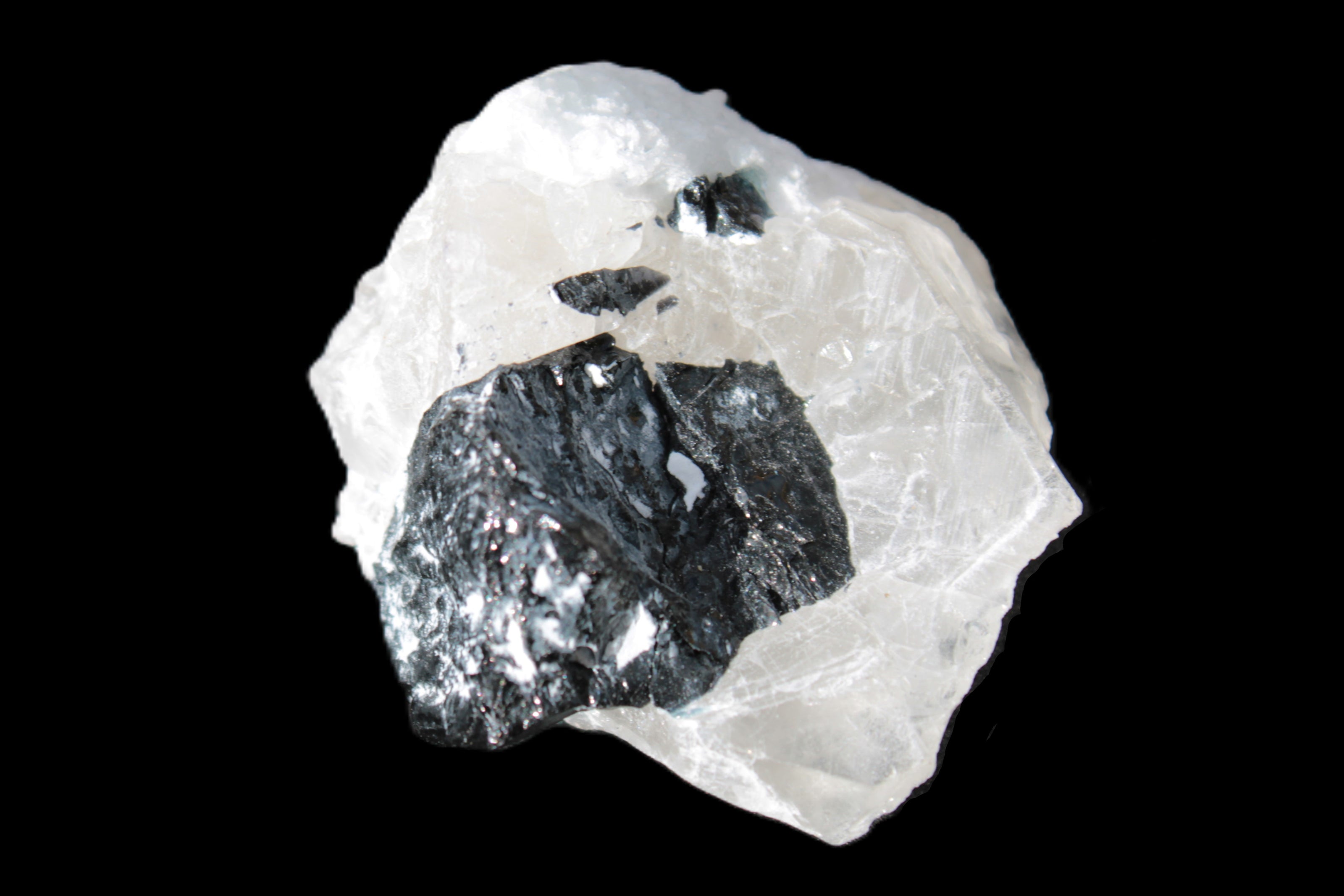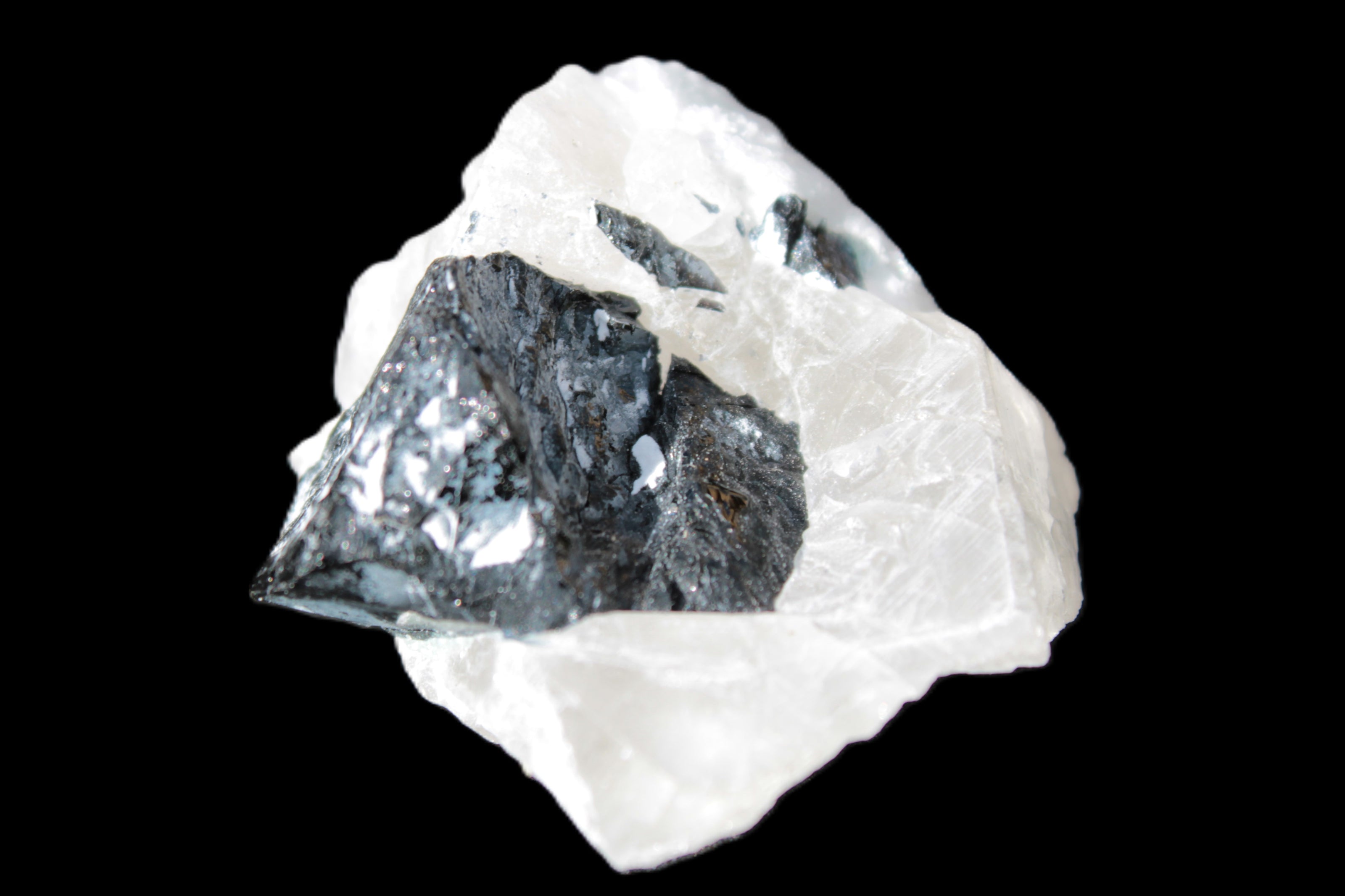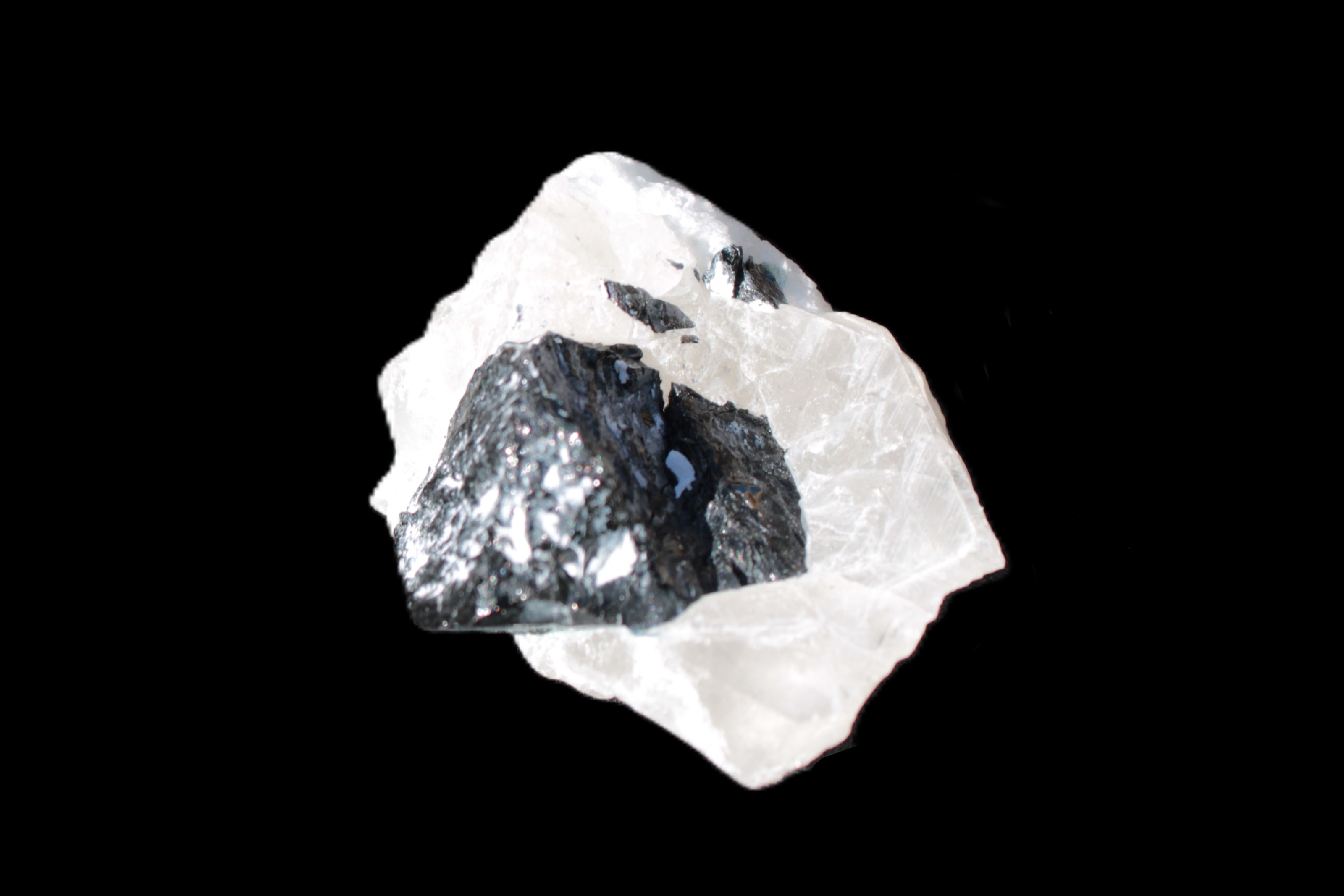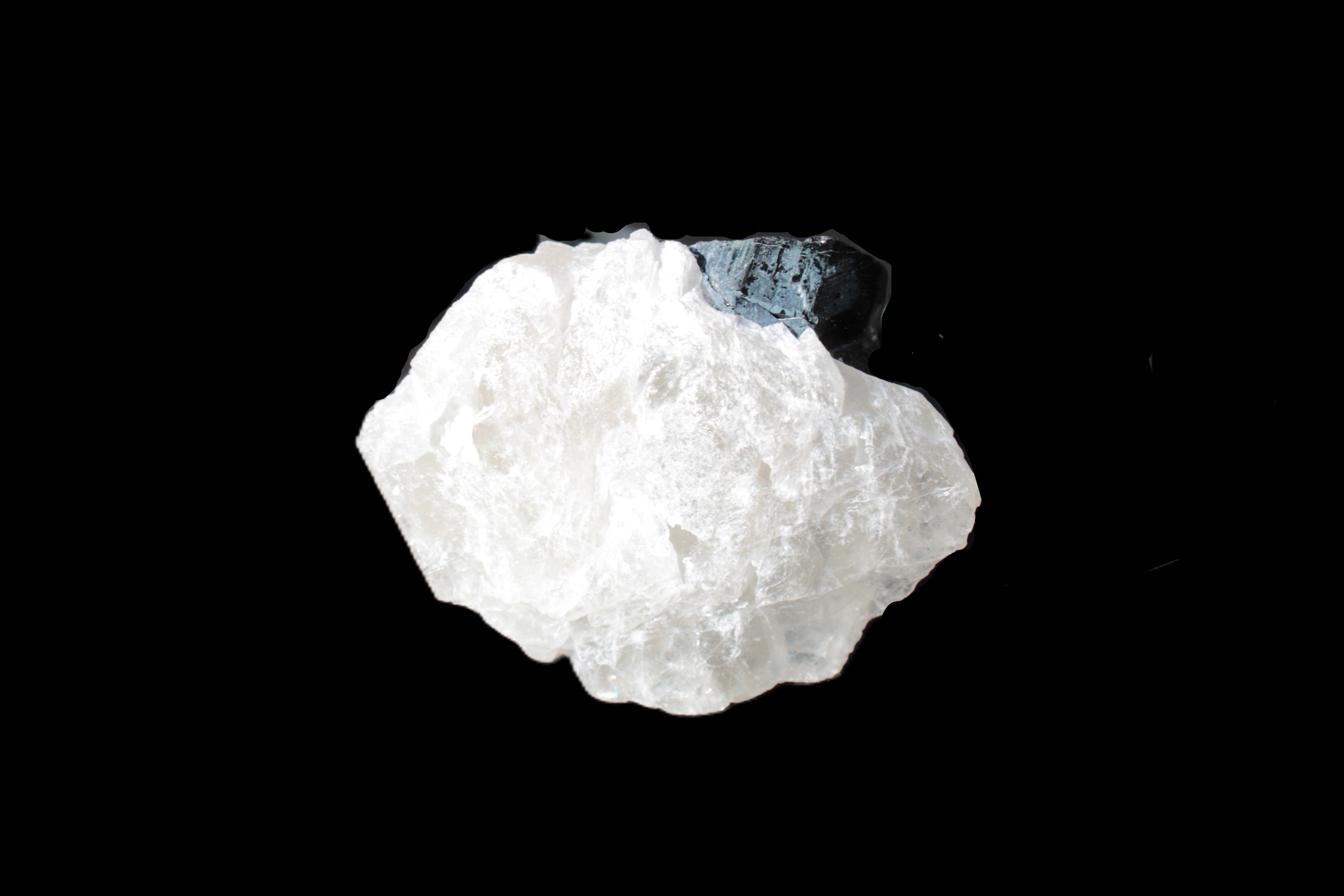 Rare Blue Tourmaline patina over Black Tourmaline on Calcite matrix 43mm 135.9ct  27.1g Rocks and Things