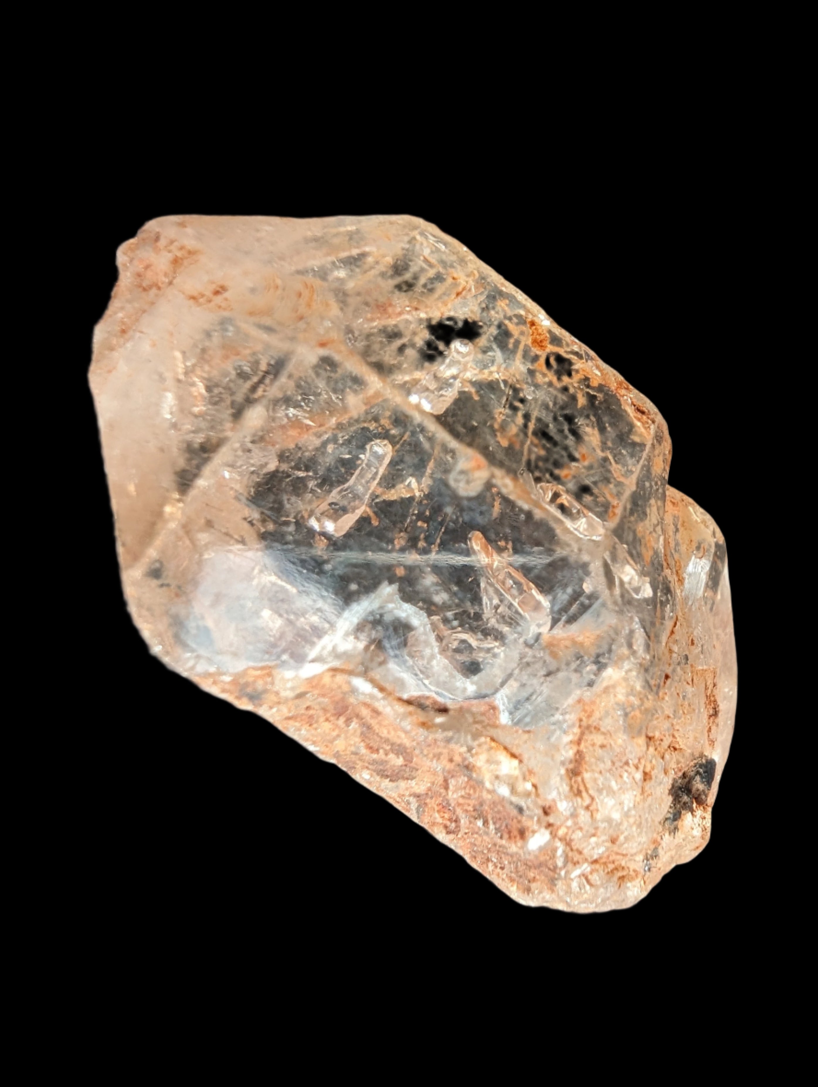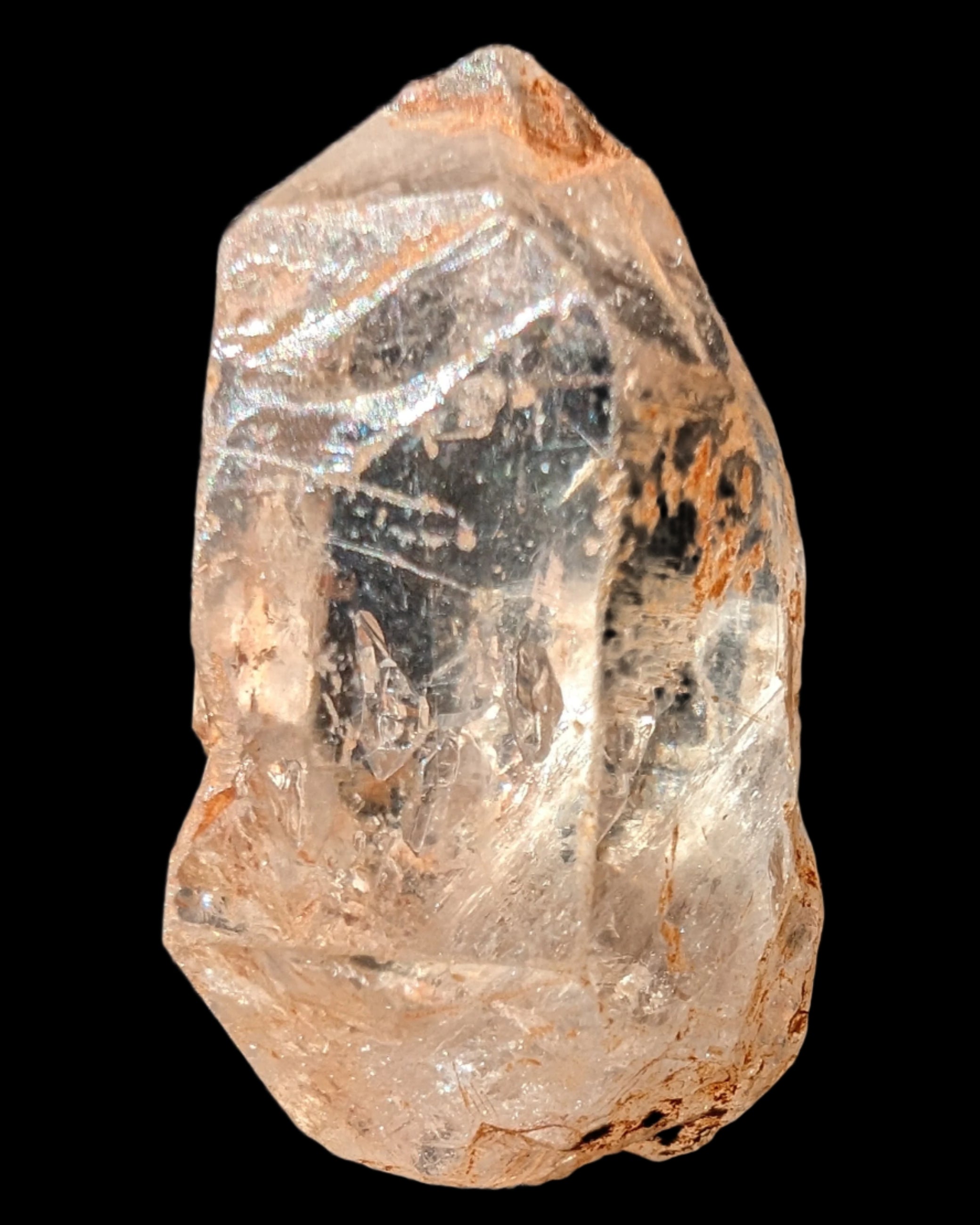 The complex formation of Fenster Quartz gives them additional healing properties to the extensive properties of regular Quartz. They are named from the German, ‘Fenster’, which means window. The complex interior structure of these crystals feature many chambers, phantoms and windows within the crystal. These windows are triangular planar formations within the crystal structure. The complex skeletal structure happens because the crystal has formed in unstable conditions, causing stop-start and irregular growth. The myriad interior planes and windows give rise to dancing patterns of light when the crystal is turned in light. Fensters can also feature elestial formations and enhydros.