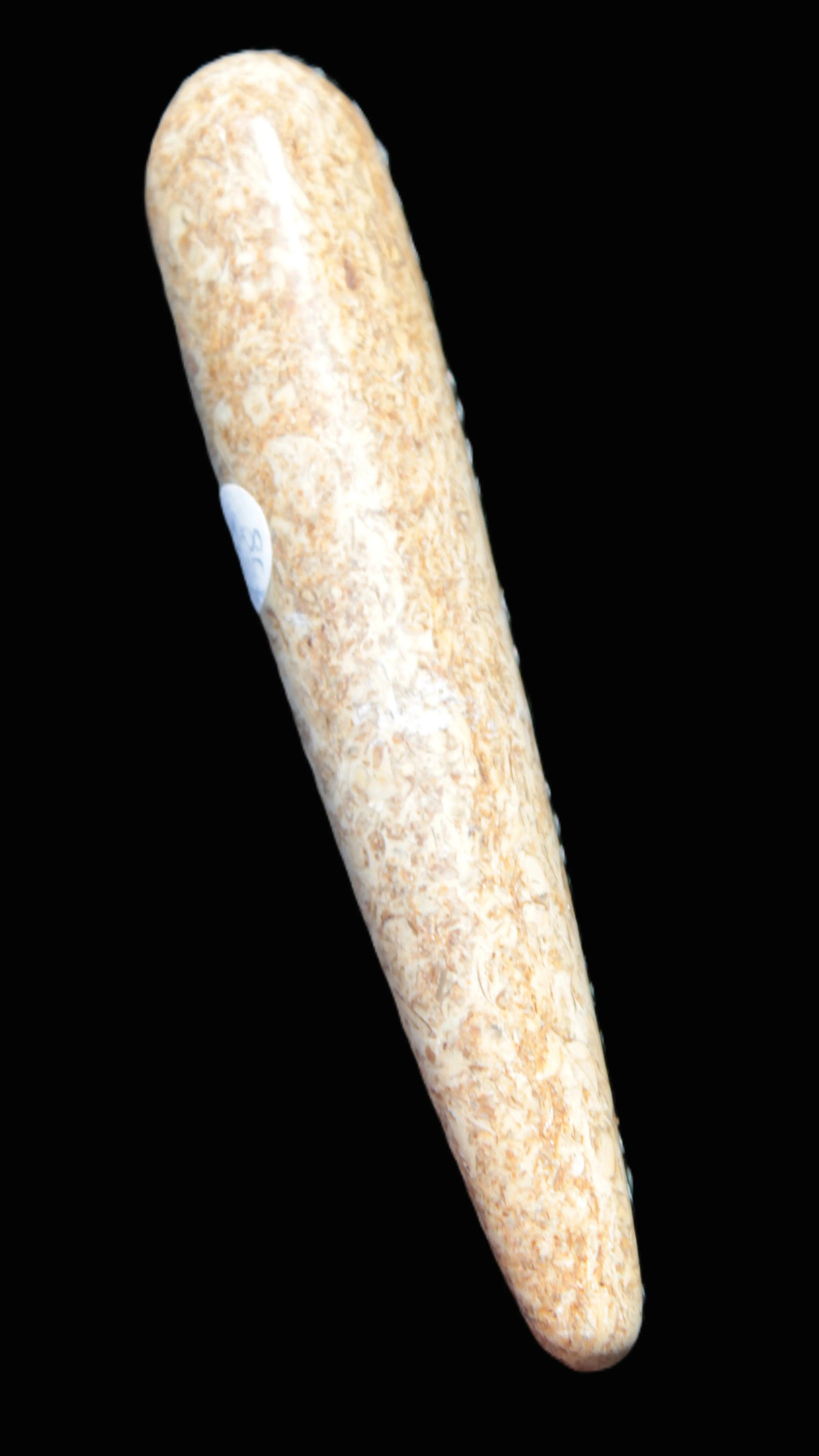 This Dinosaur Bone Fossil massage wand from Madagascar weighs 134g. It i6 140mm long and 87mm in circumference at its maximum width.