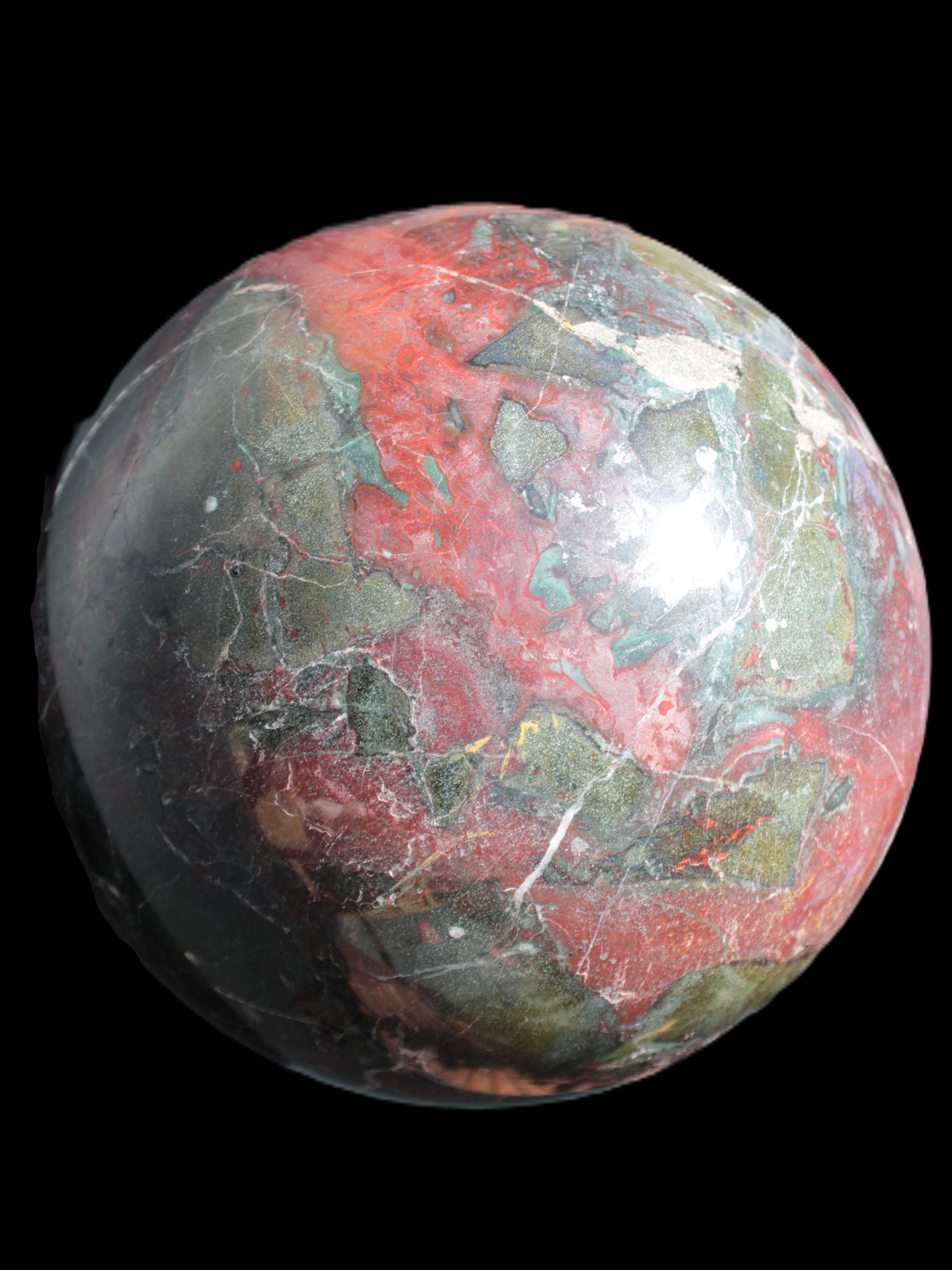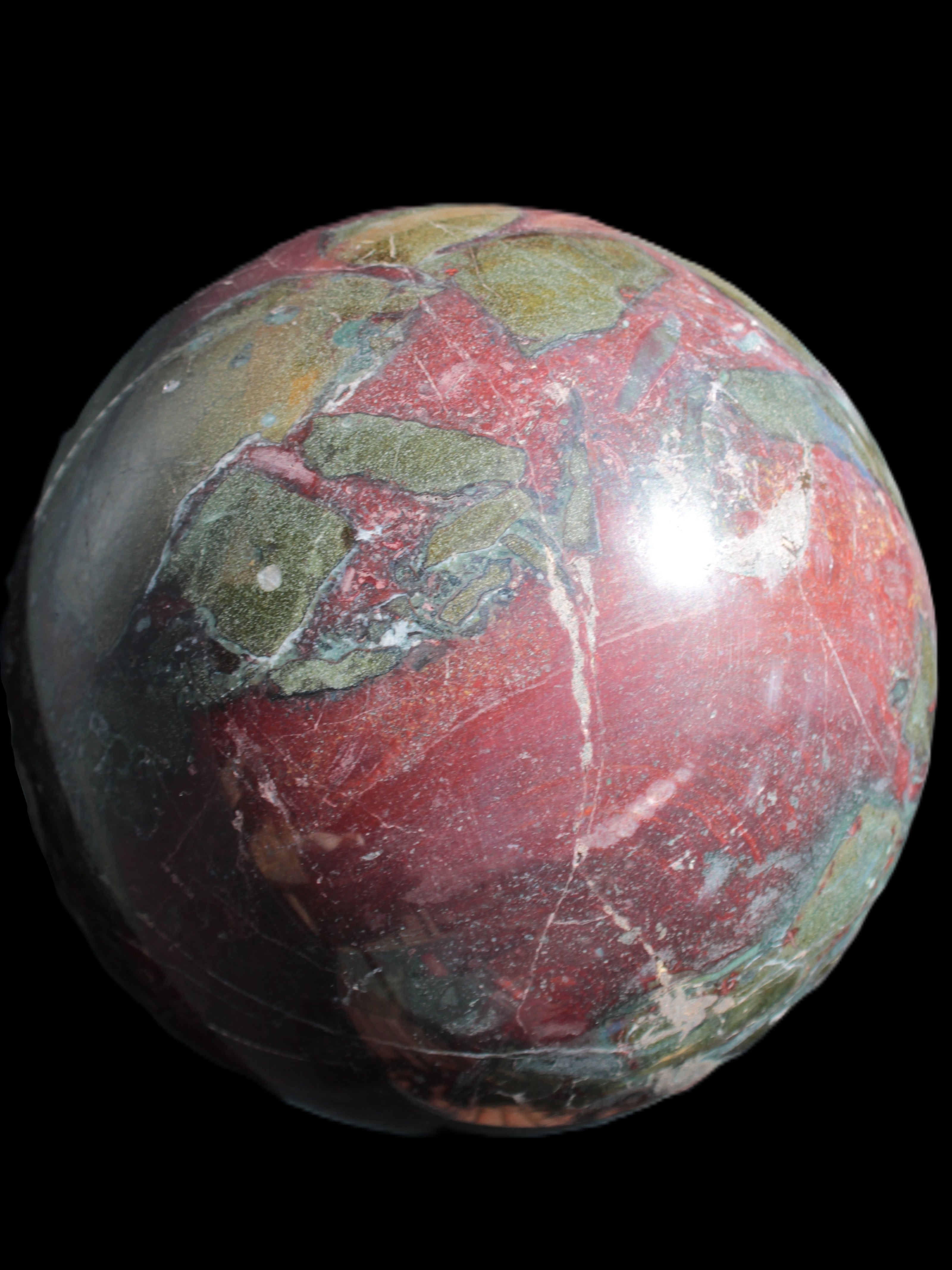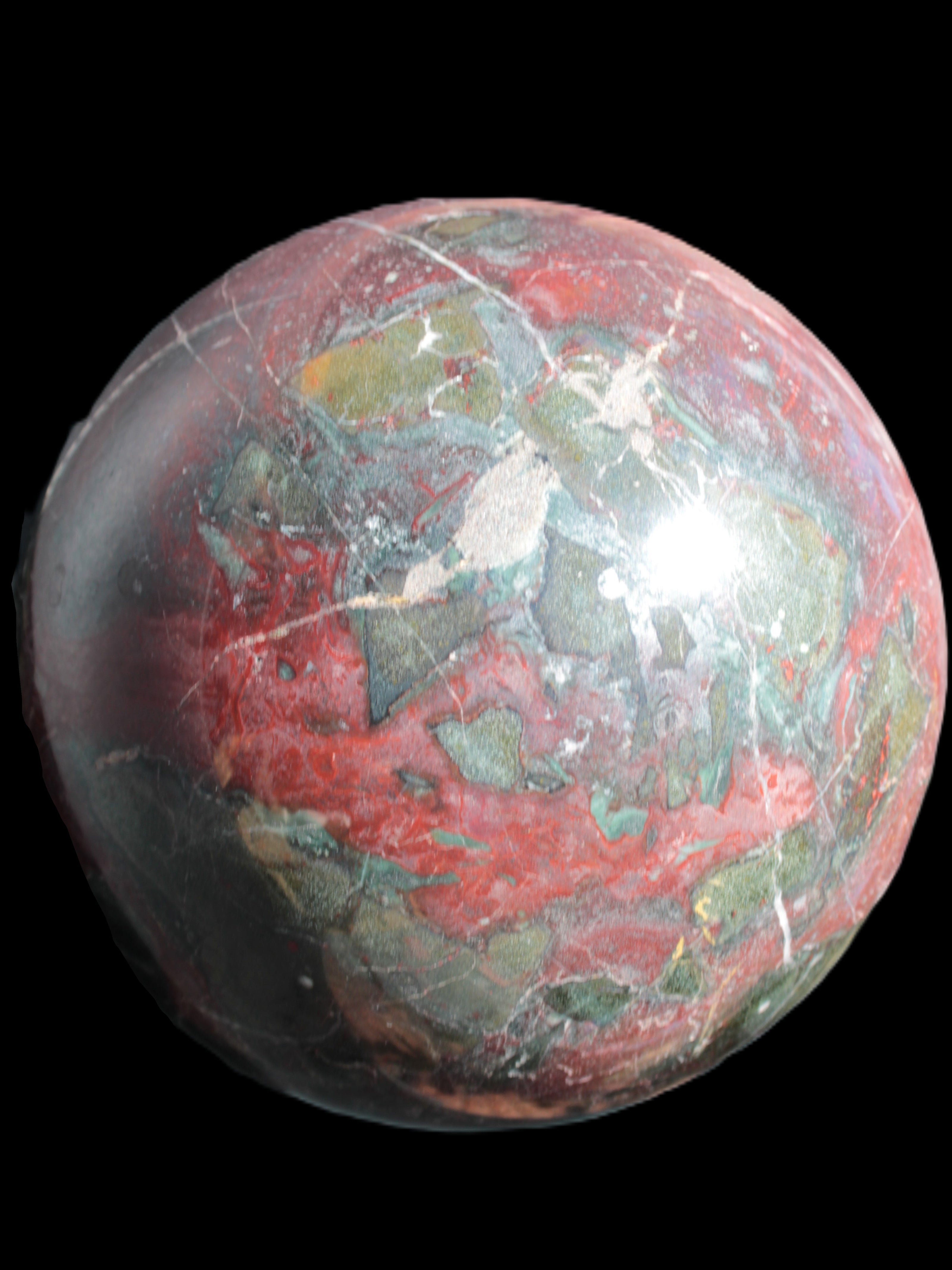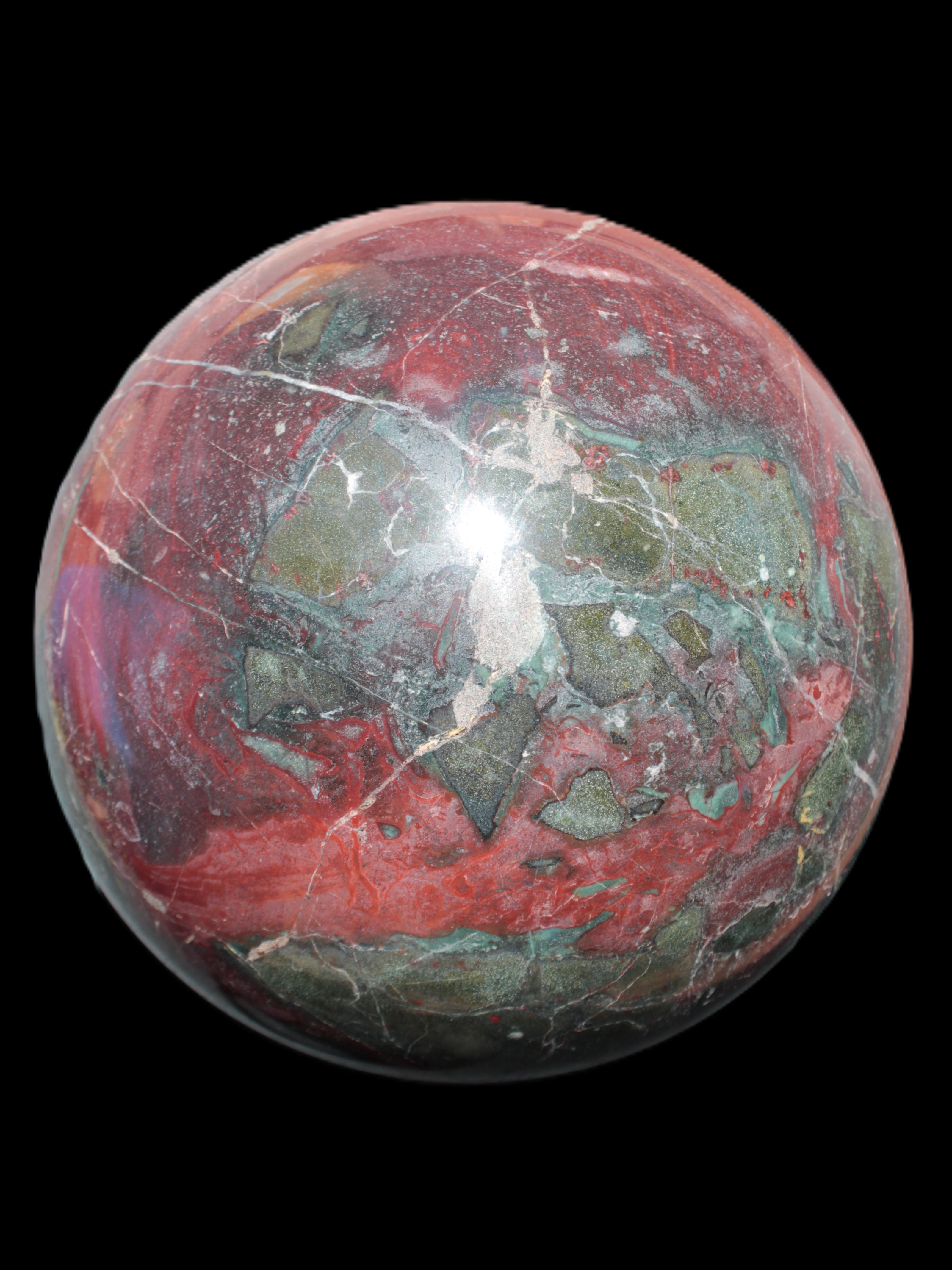 Dragons Blood Stone sphere 151mm 5380g. Dragons Blood Stone is found only in Western Australia and South Africa. , It is a magnifier of energy. Dragon Blood Stone activates and unlocks the heart. Dragons Blood Stone aids the connection between heart, mind and soul, bringing compassion, forgiveness and love.