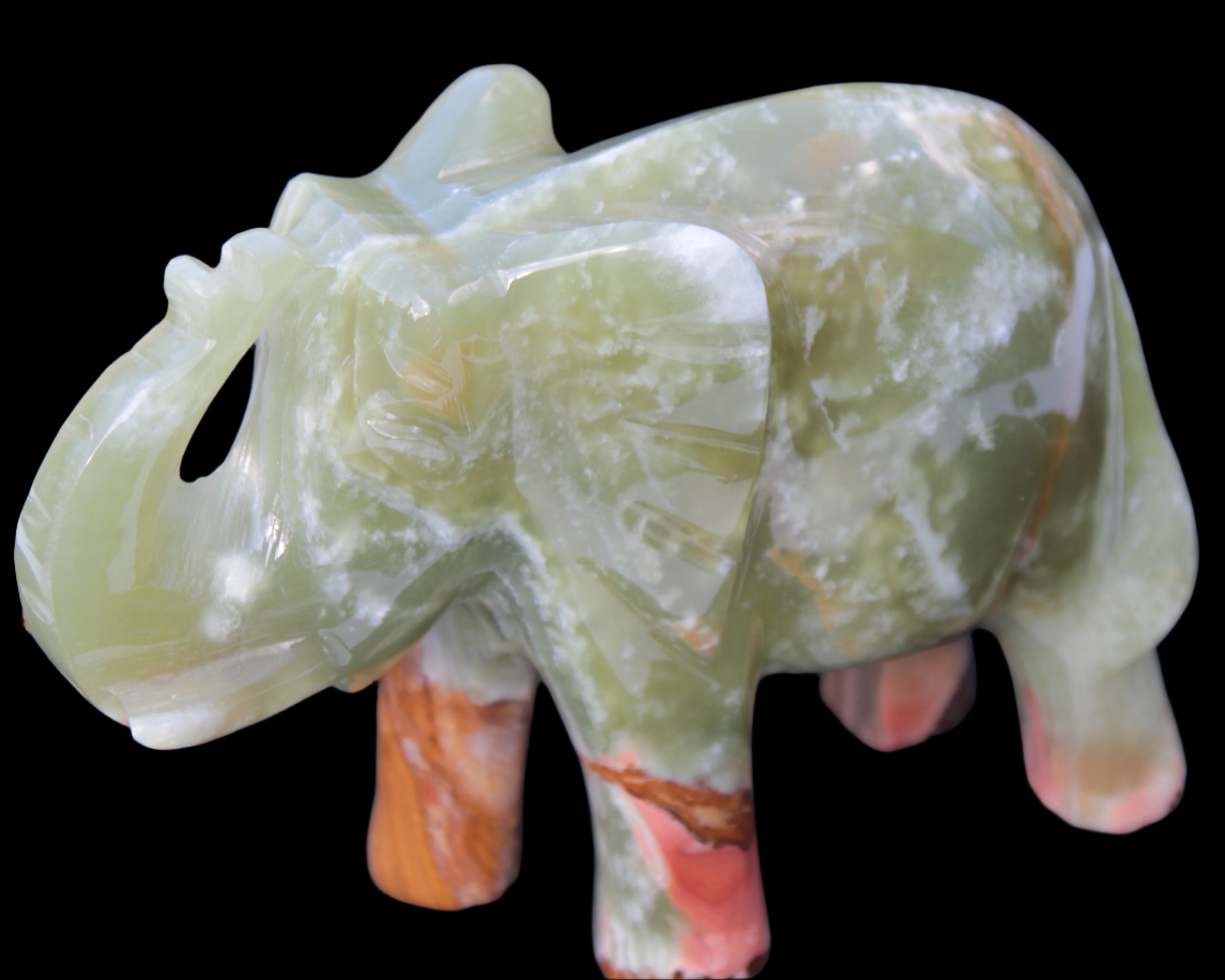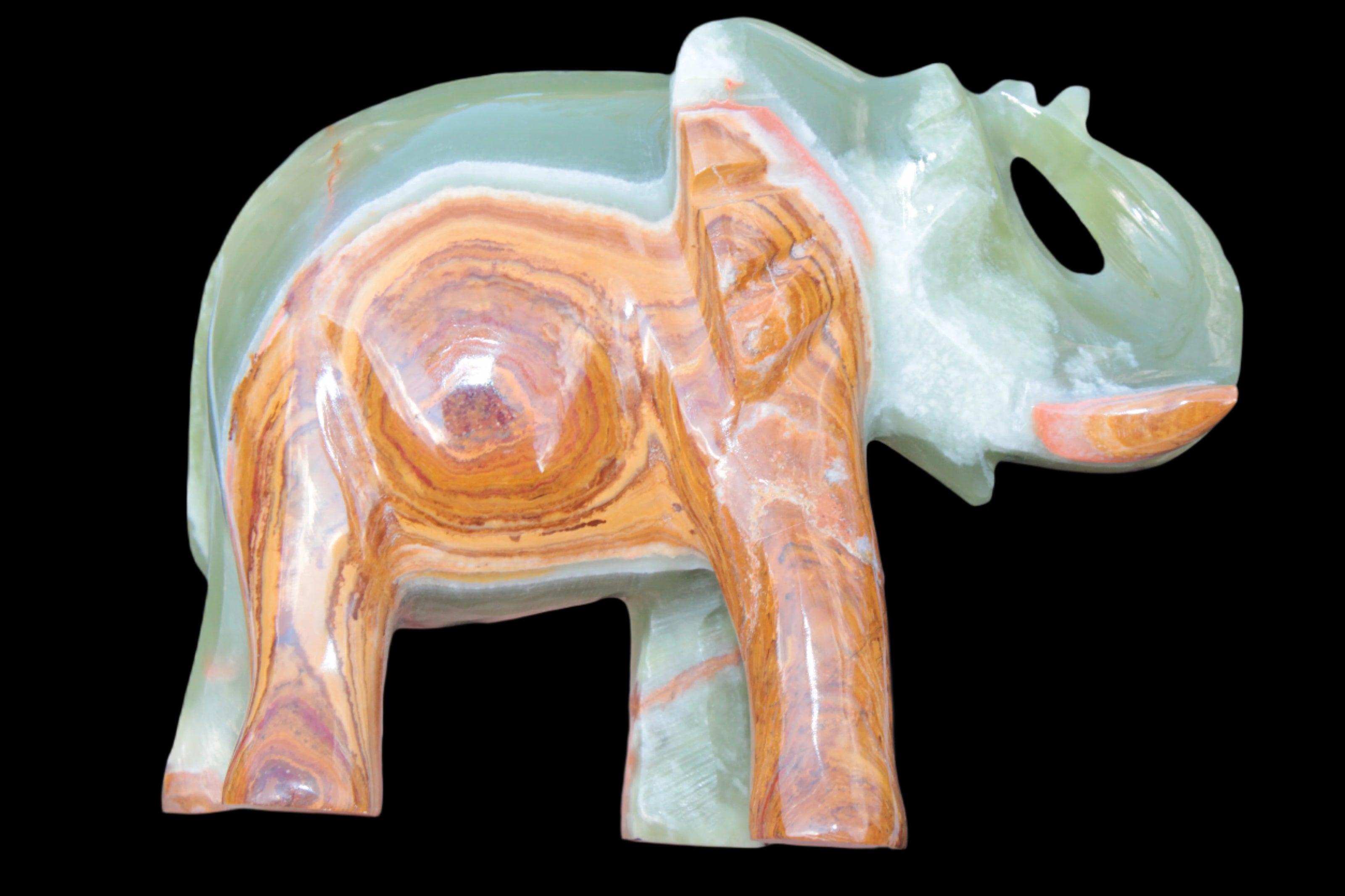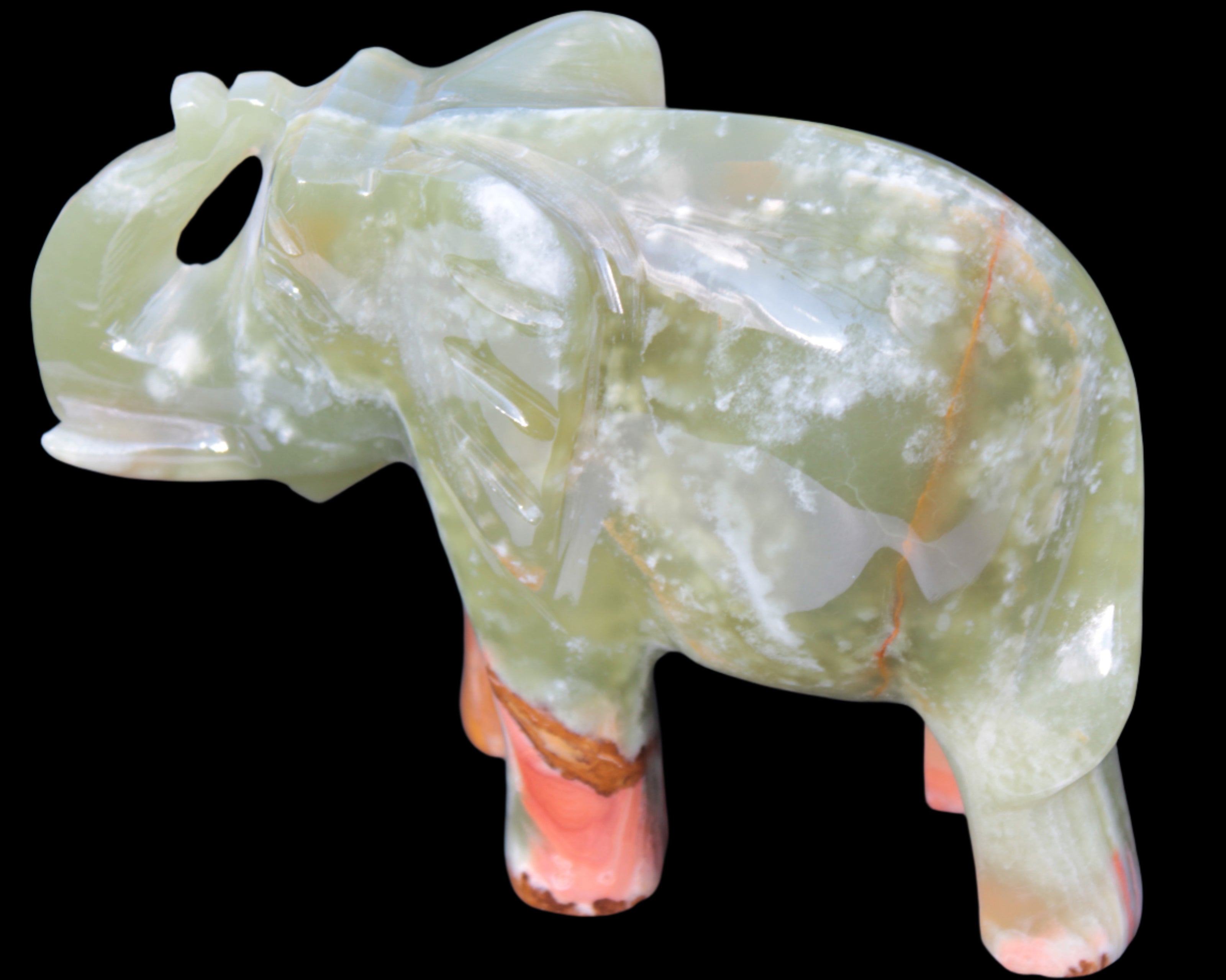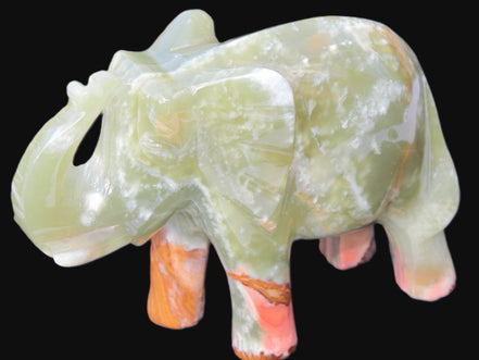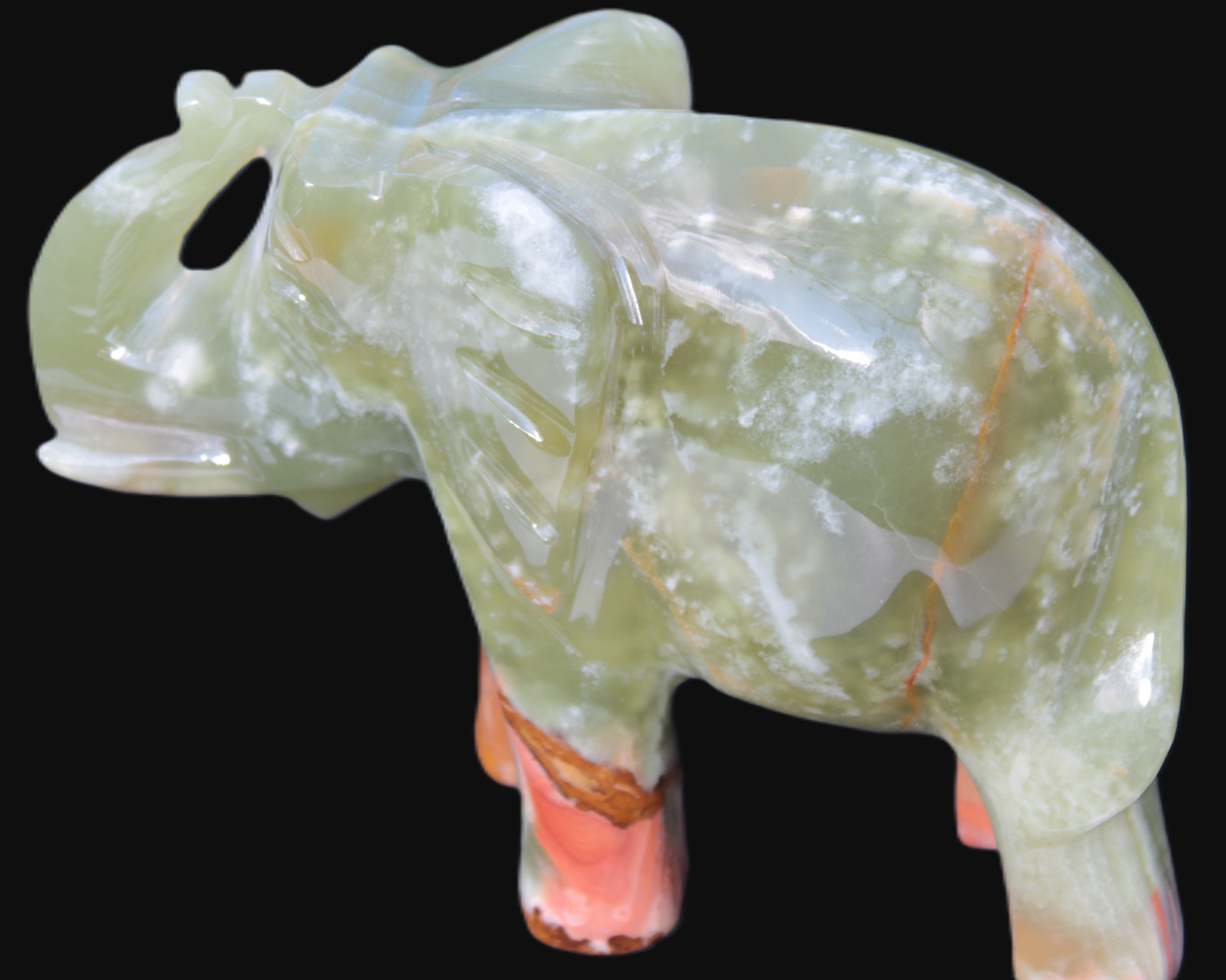 This large Elephant hand-carved Afghan Jade 152*60*117mm weighs 1120g. It was hand-carved by Lawrence Riaz from Afghan Jade found in Pakistan.