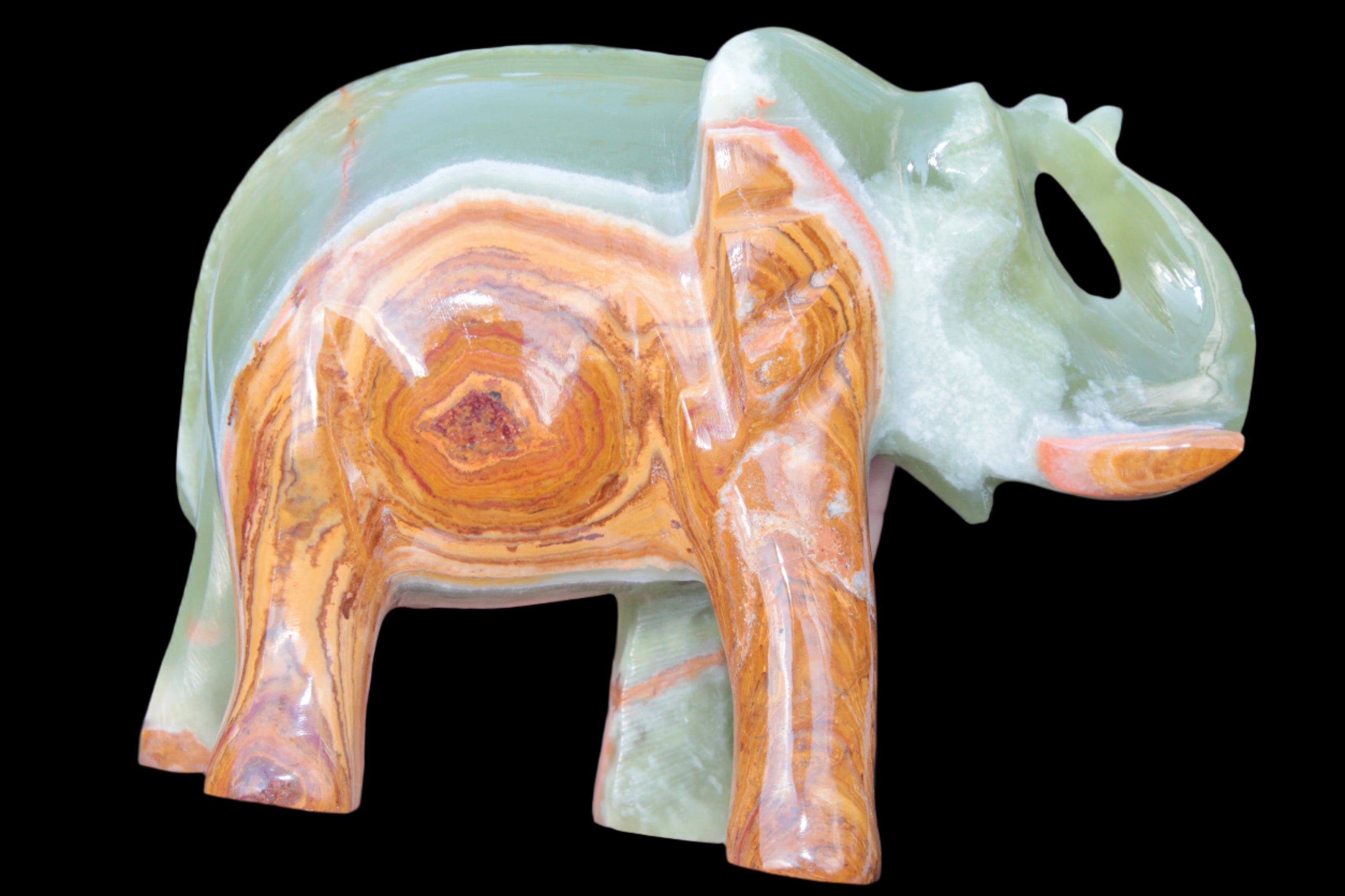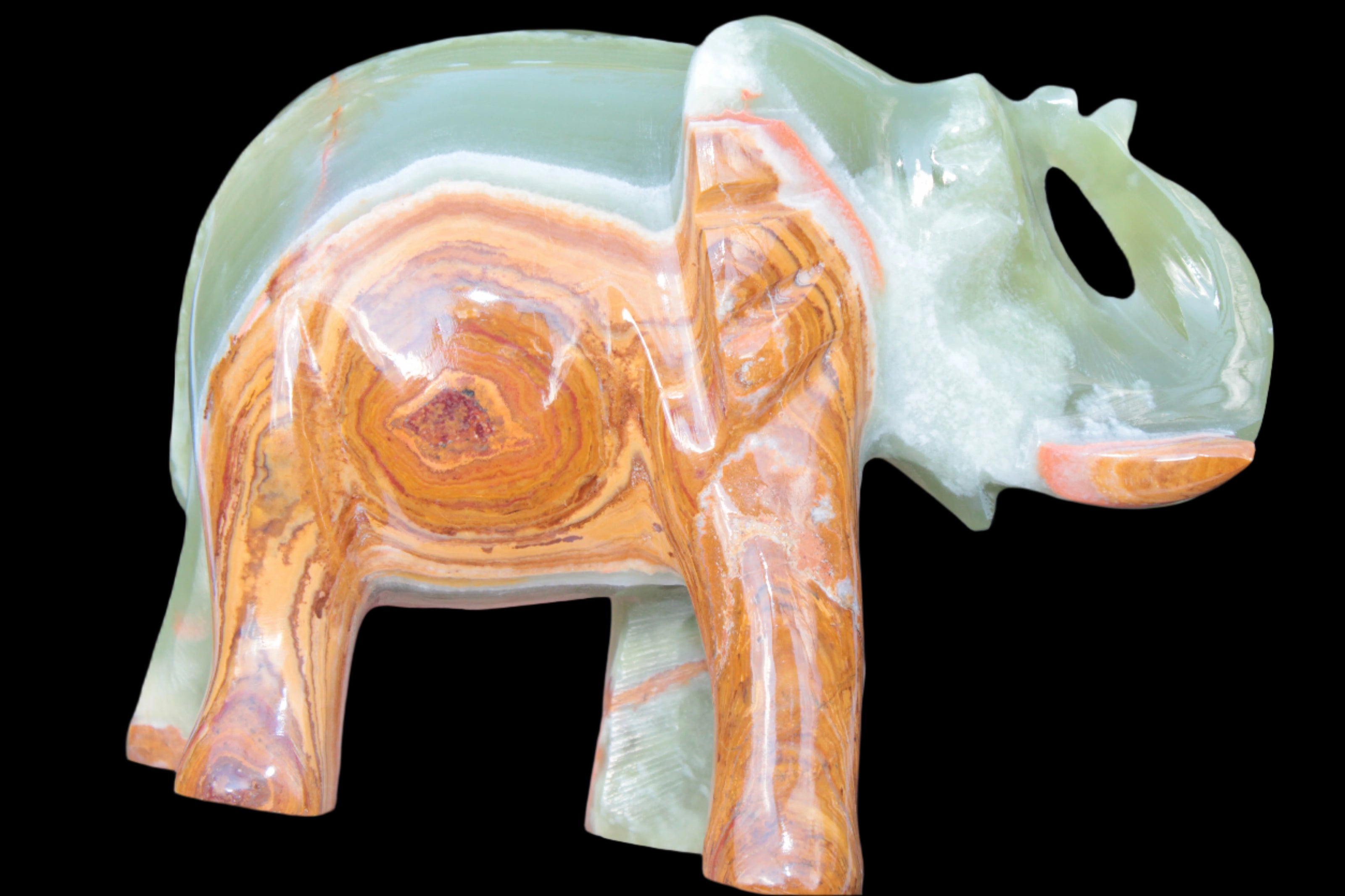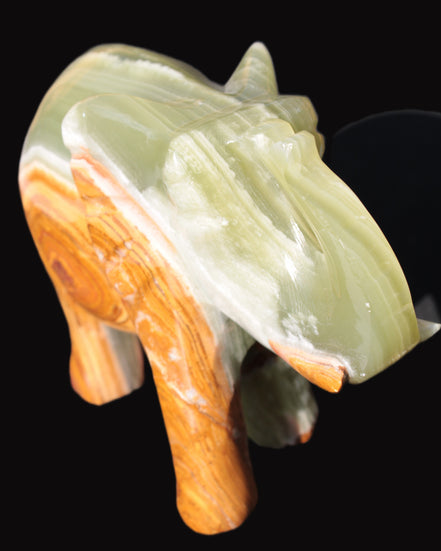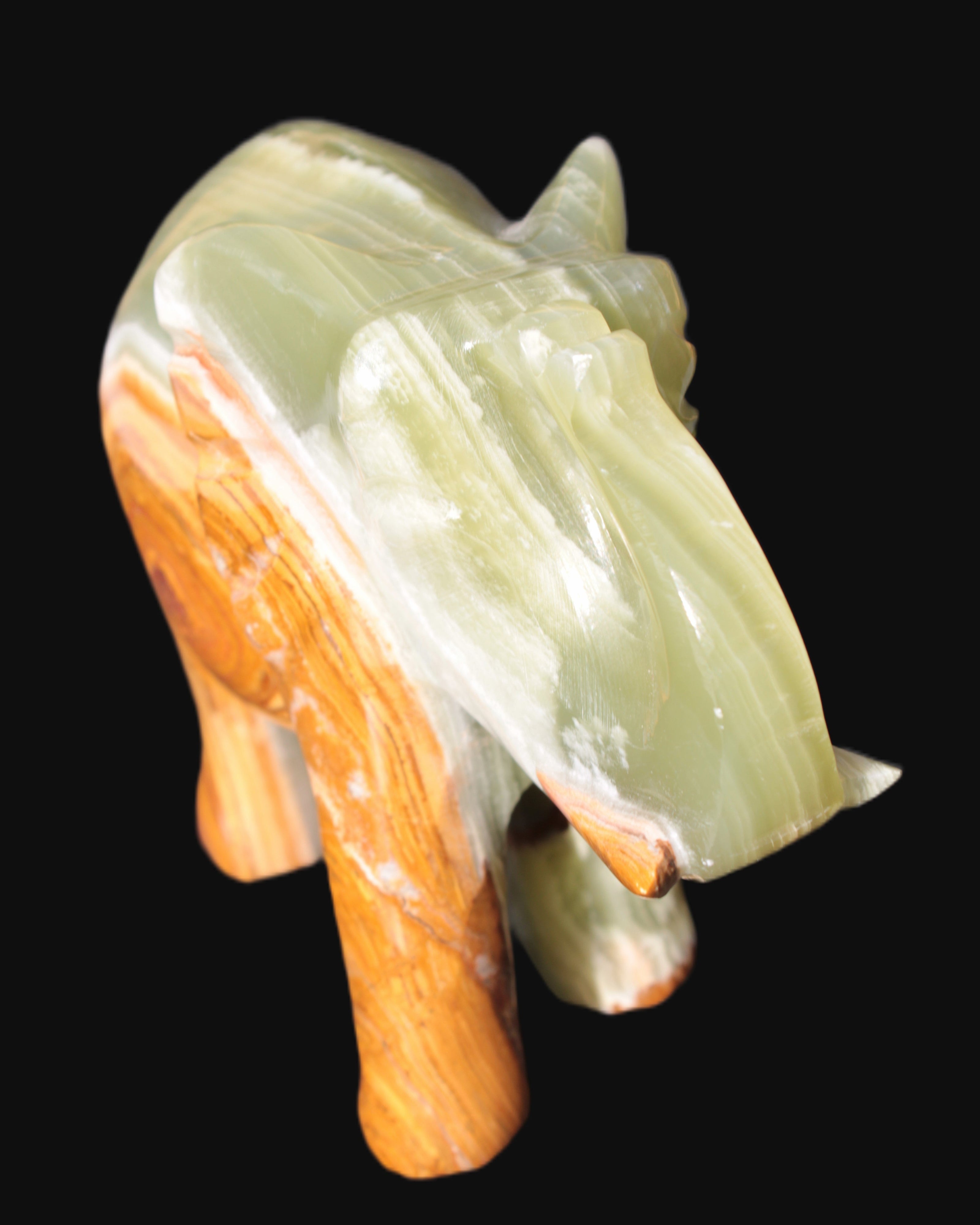 This large Elephant hand-carved Afghan Jade 152*60*117mm weighs 1120g. It was hand-carved by Lawrence Riaz from Afghan Jade found in Pakistan.