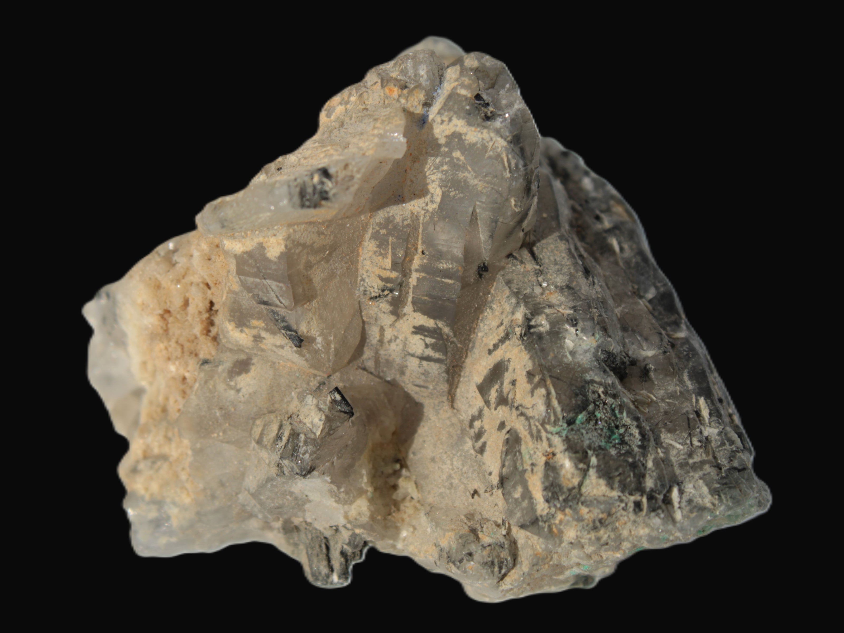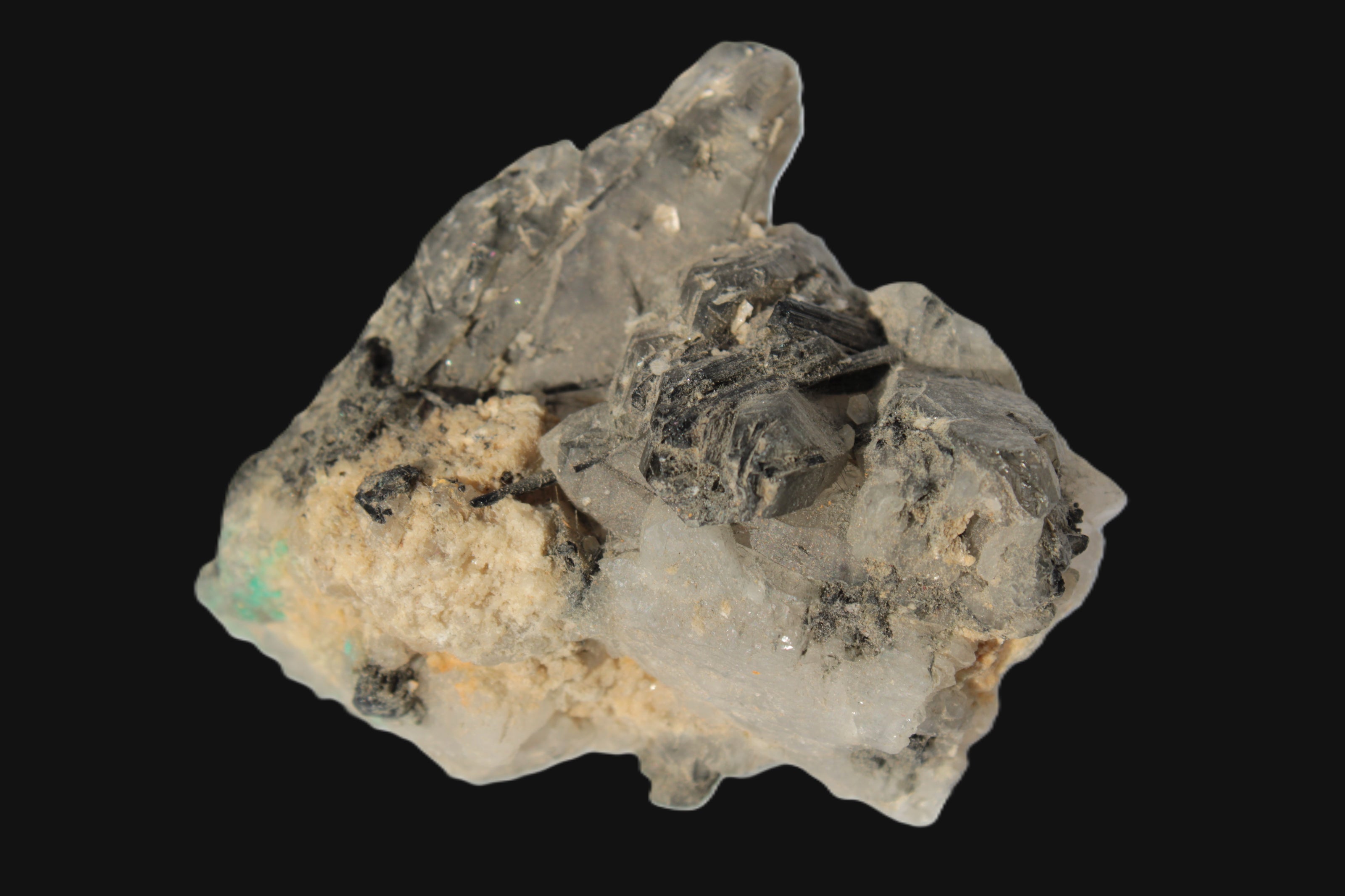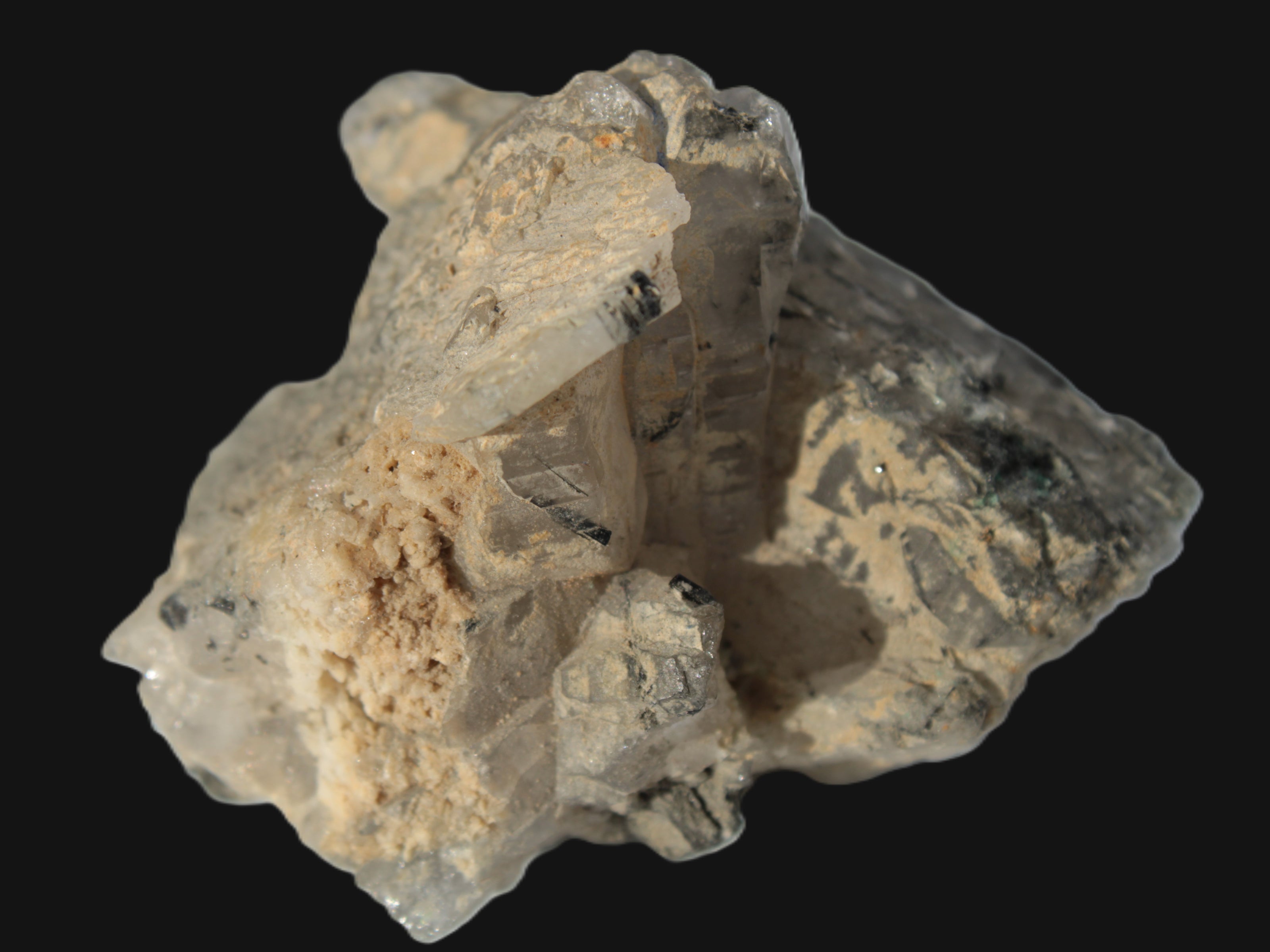 Elestial Smoky and Clear Quartz crystals with Calcite & Elbaite from Afghanistan 99.3g