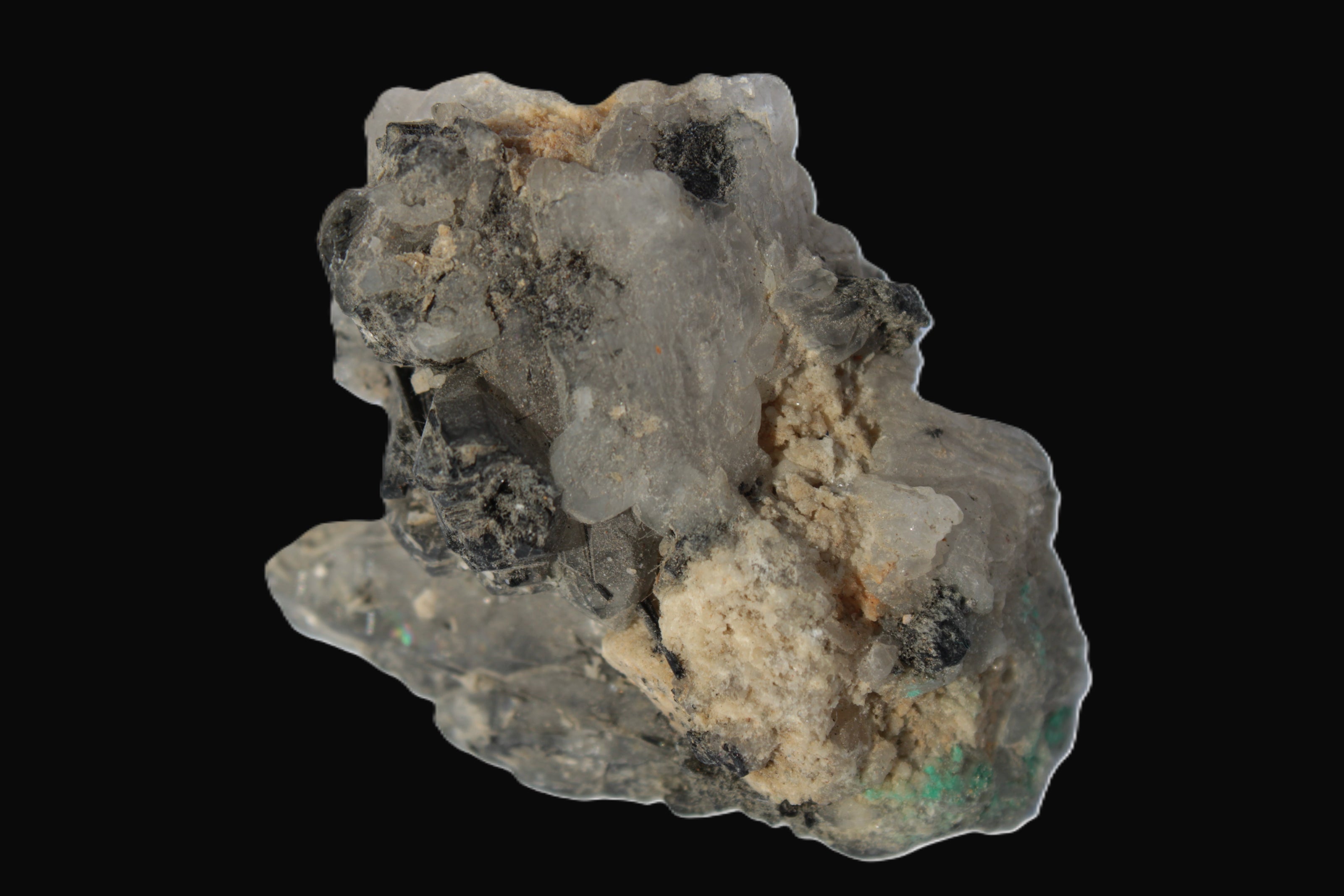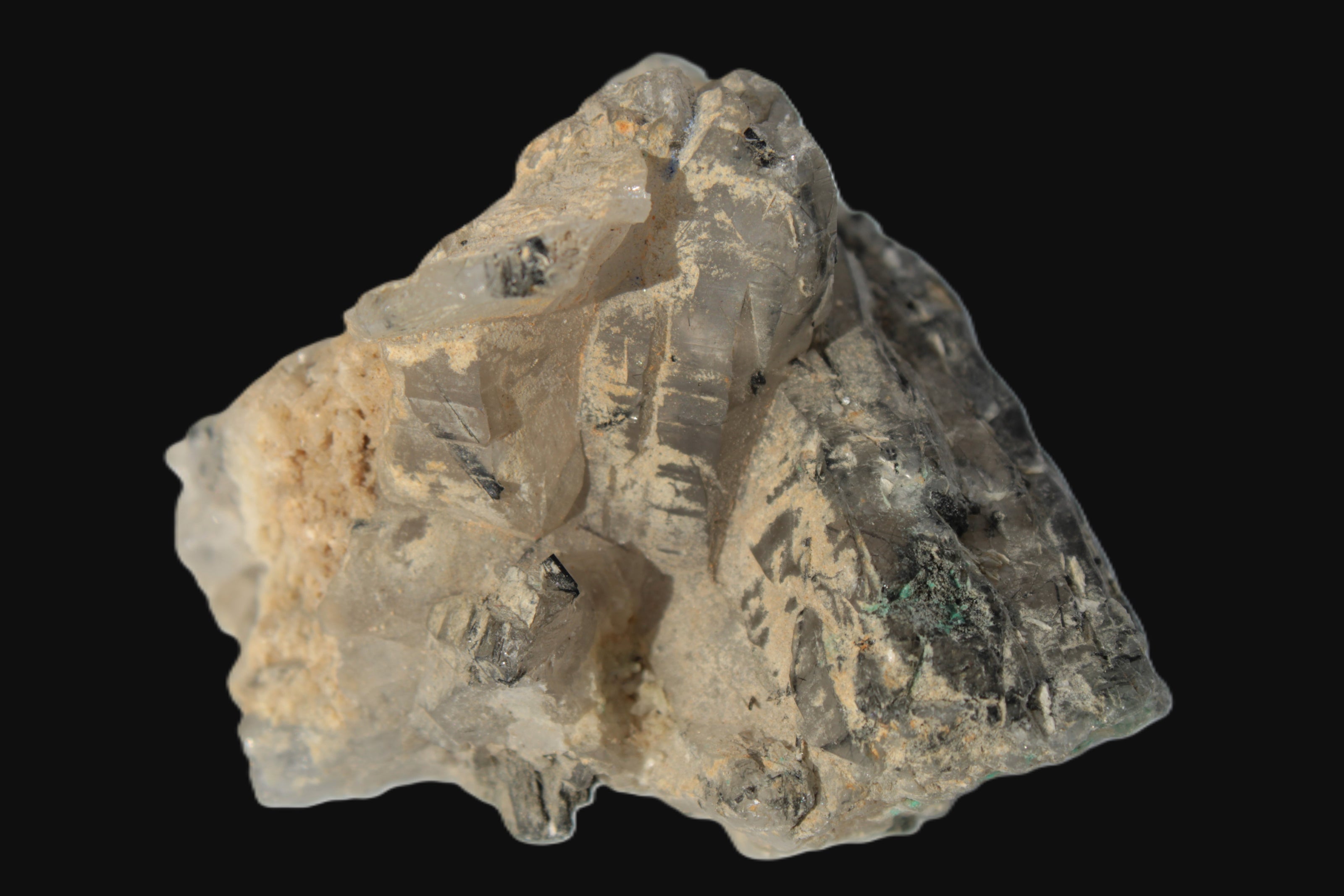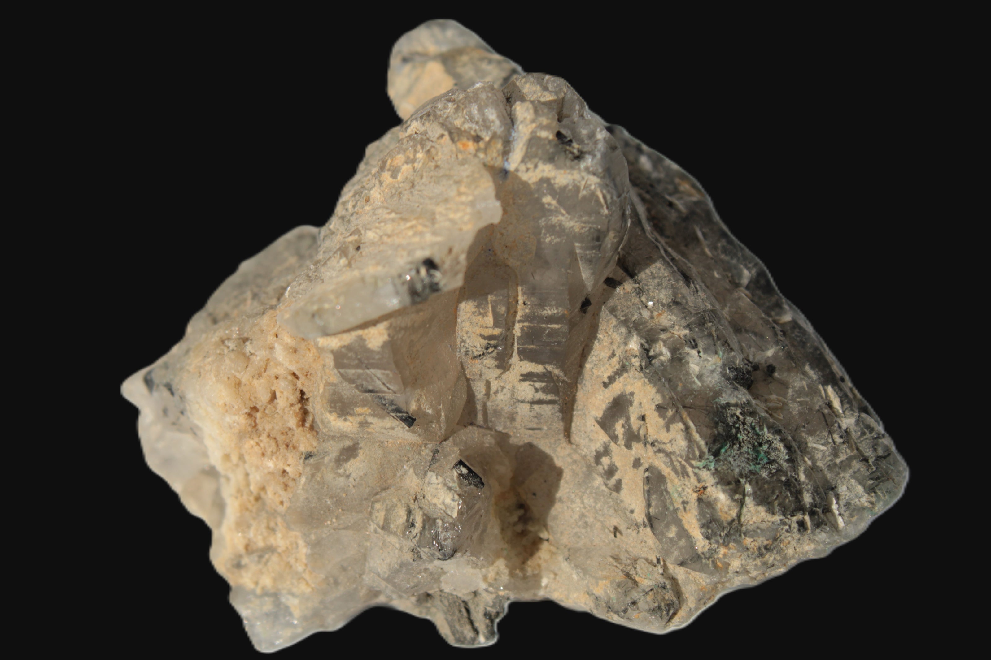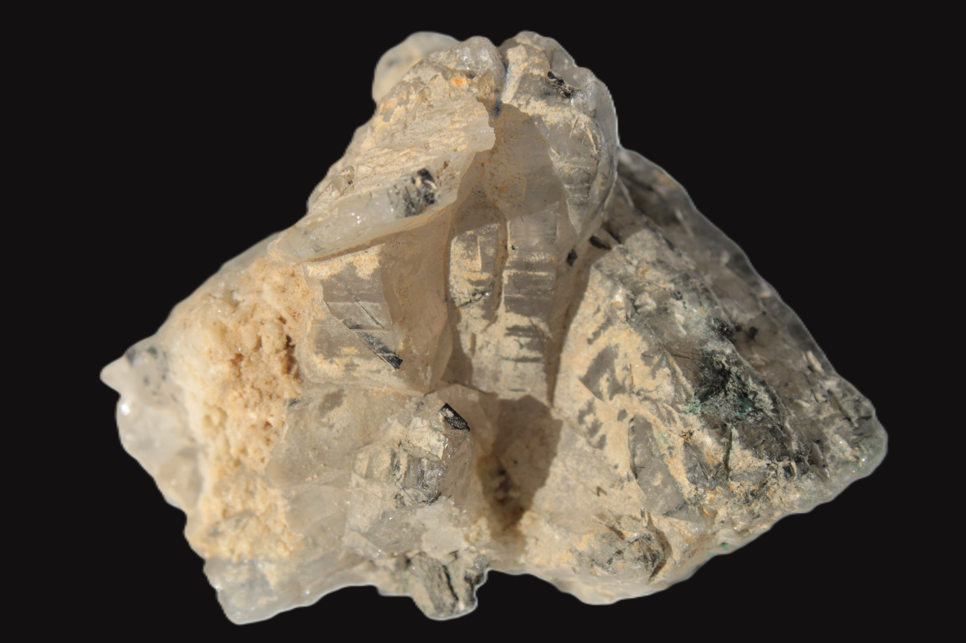 Elestial Smoky and Clear Quartz crystals with Calcite & Elbaite from Afghanistan 99.3g
