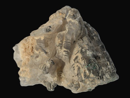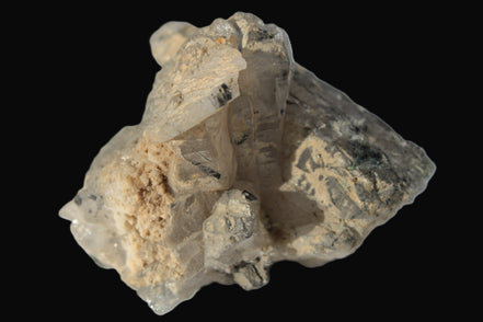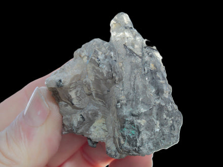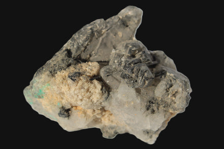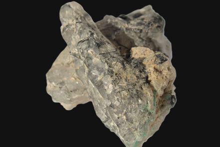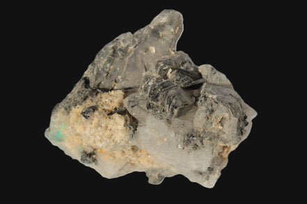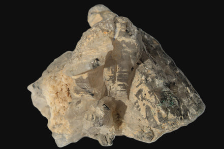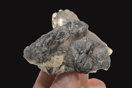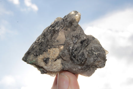 This Elestial Smoky and Clear Quartz crystals with Calcite & Elbaite specimen is from Afghanistan. It weighs 496.5ct or 99.3g. It is a complex multi-crystal that has had a torturous formation. it is about 65*50*60mm. The Smoky Quartz and Quartz crystals are highly interrupted, striated and multi pointed. Small Elbaite crystals are interspersed throughout. There is a small trace green mineral present too plus Mica and Feldspar. Much of this formation is UV reactive. All of this make for an interesting specimen from Afghanistan.