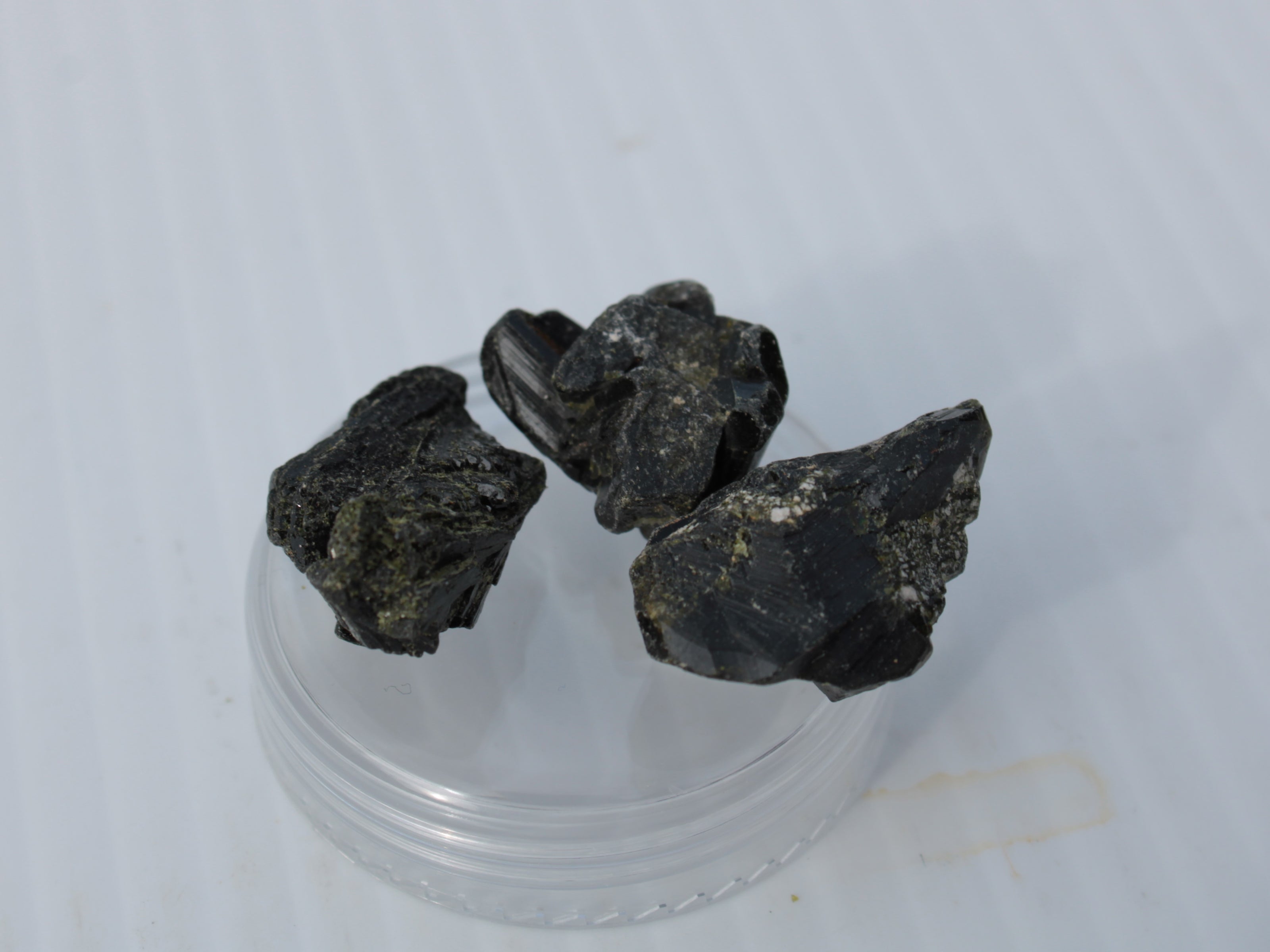 Epidote 3 clusters 69ct 13.8g in dull sunlight - Rocks and Things Store