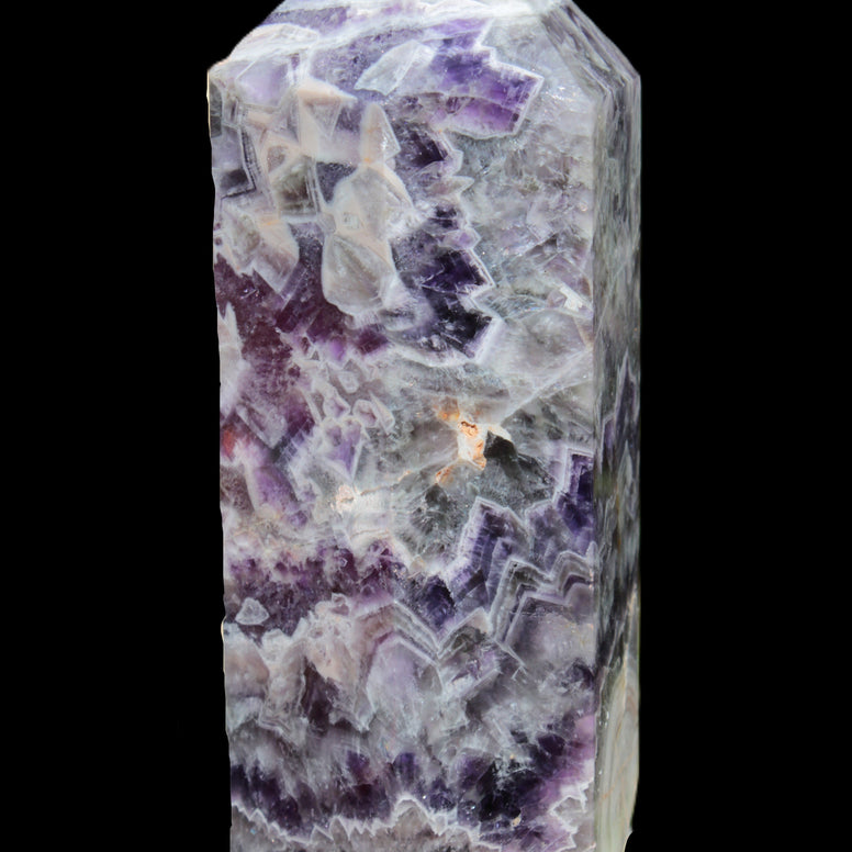 This Fantasy Amethyst obelisk weighs 2013g. Fantasy Amethyst is a more mixed-up version of Dream Amethyst. This is a combination of Amethyst and White Quartz, mixed together. Fantasy Amethyst also features agate banding and additional colours such as orange. This gives extra oomph, with something for all the Chakras.