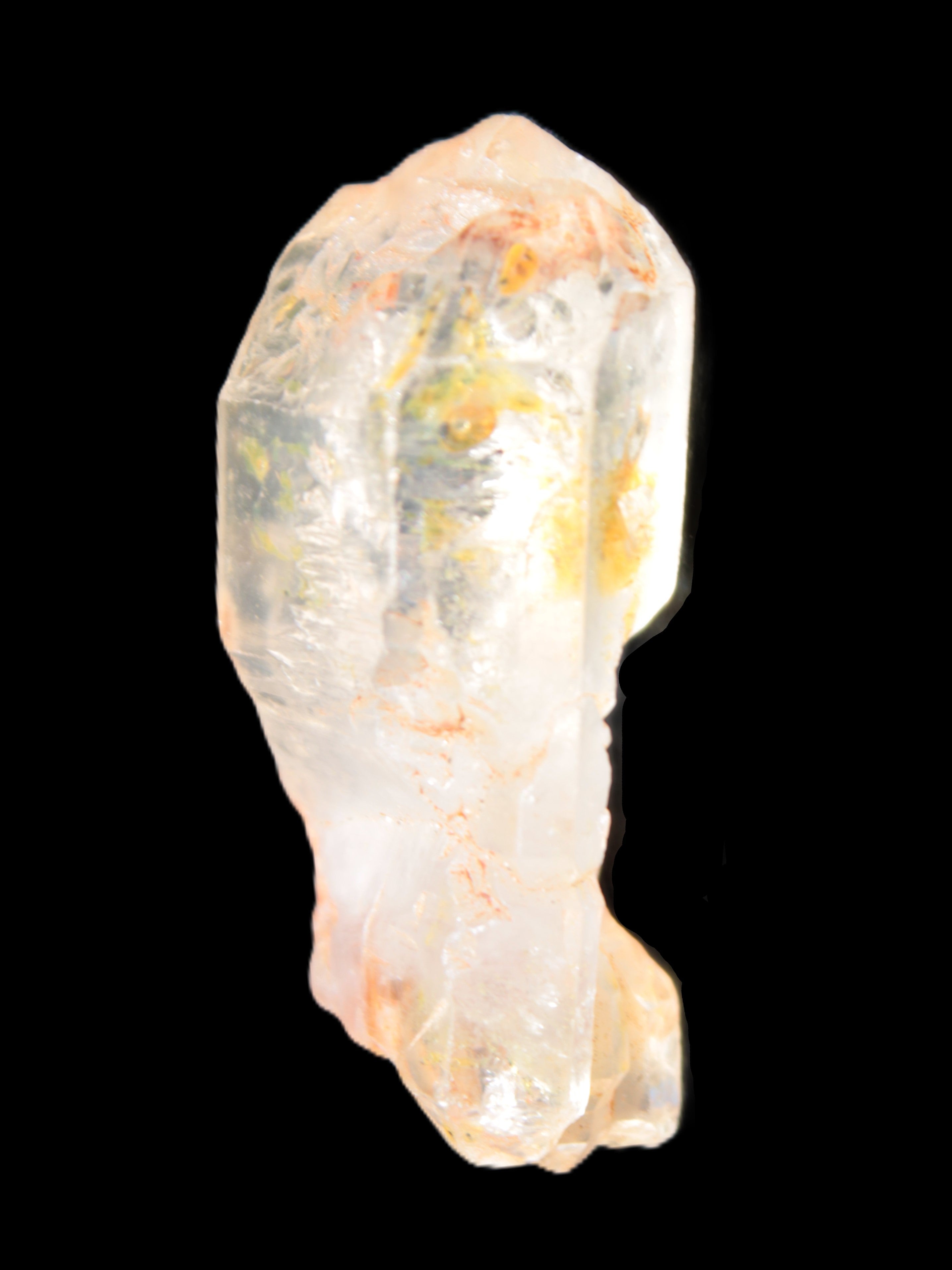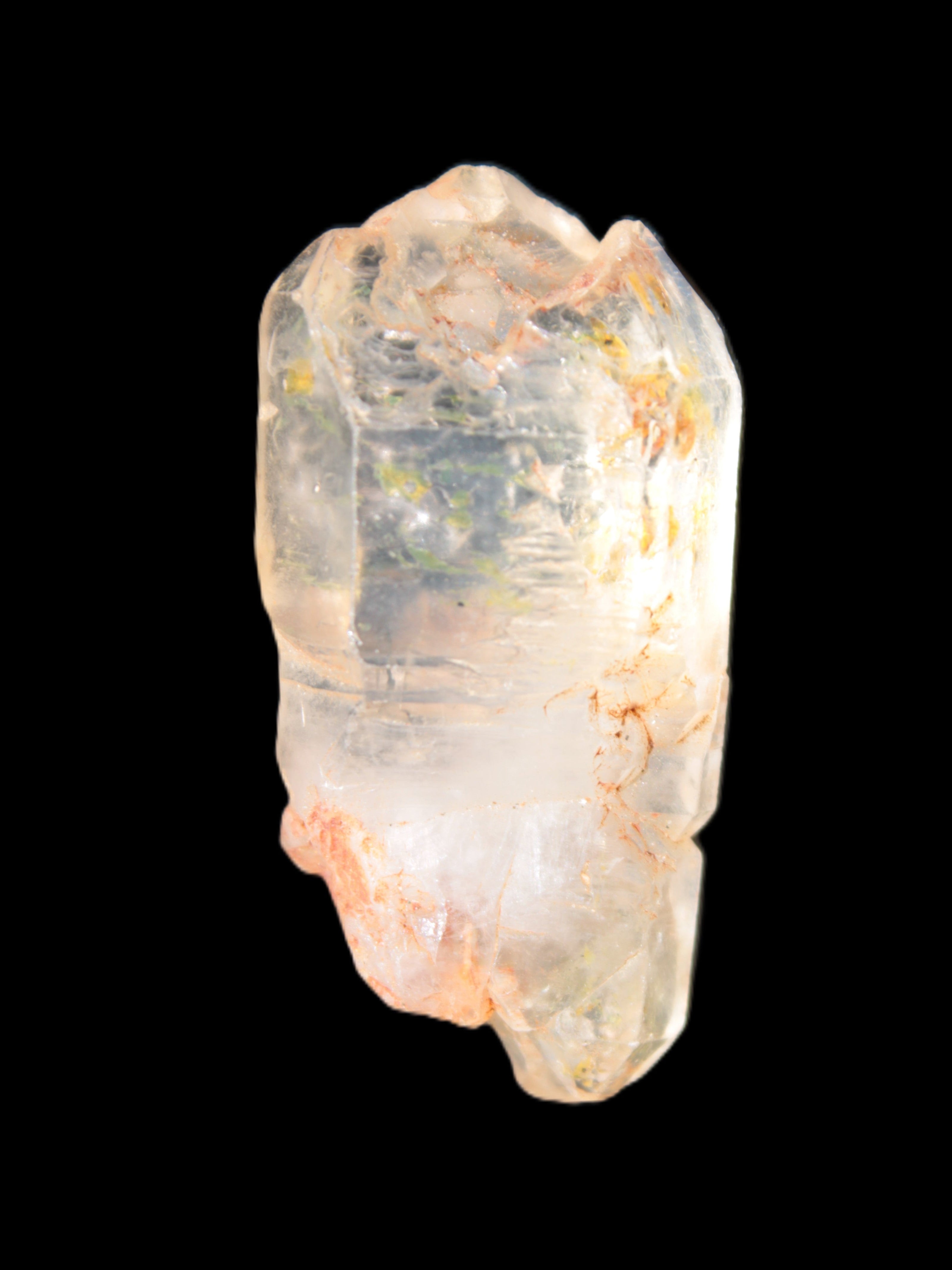From German, ‘Fenster’ means window. These windows are triangular planar formations within the crystal structure. The complex skeletal structure happens because the crystal has formed in unstable conditions, causing stop-start and irregular growth. The myriad interior planes and windows give rise to dancing patterns of light when the crystal is turned in light. Fensters can also feature elestial formations and enhydros.