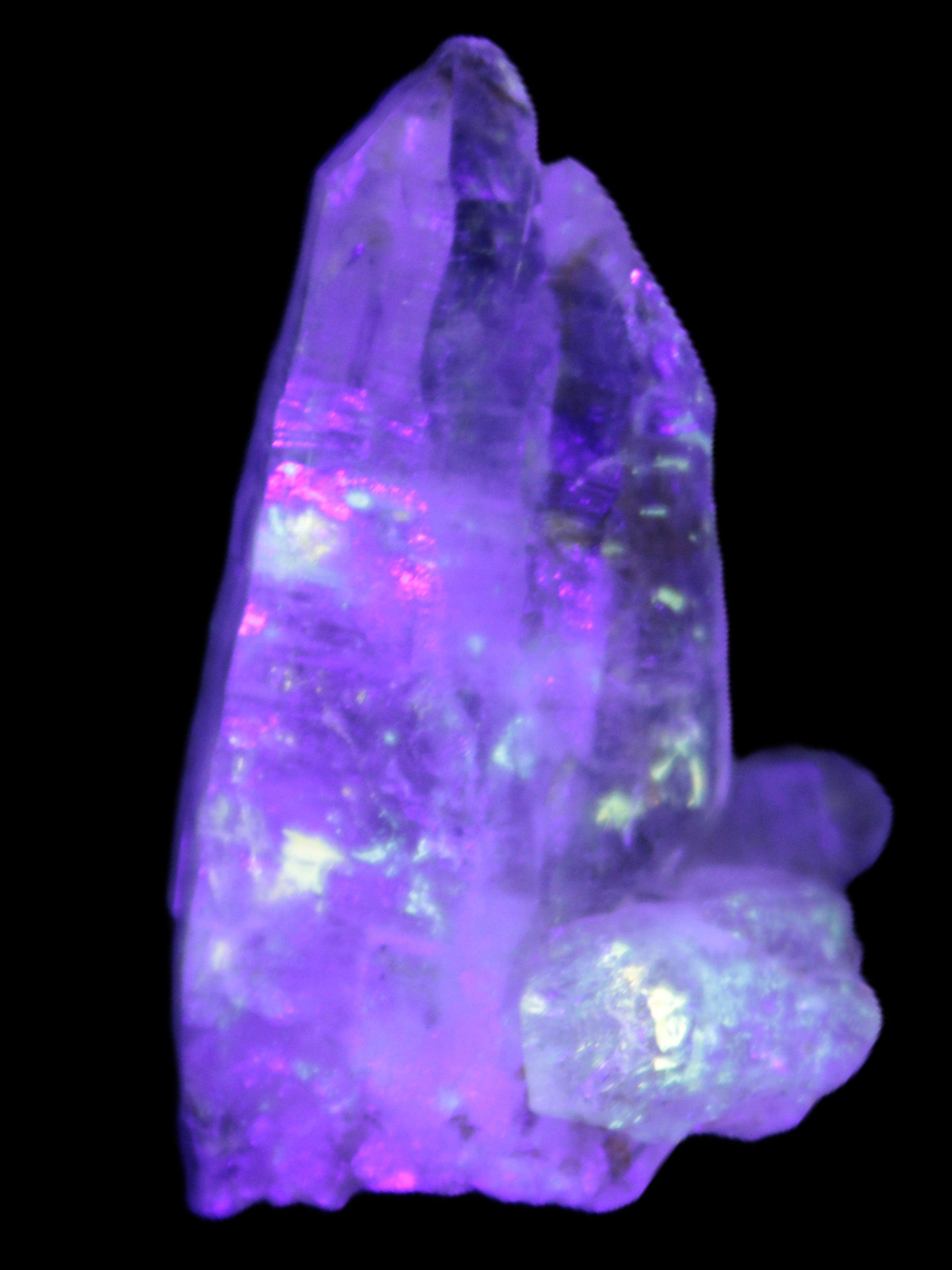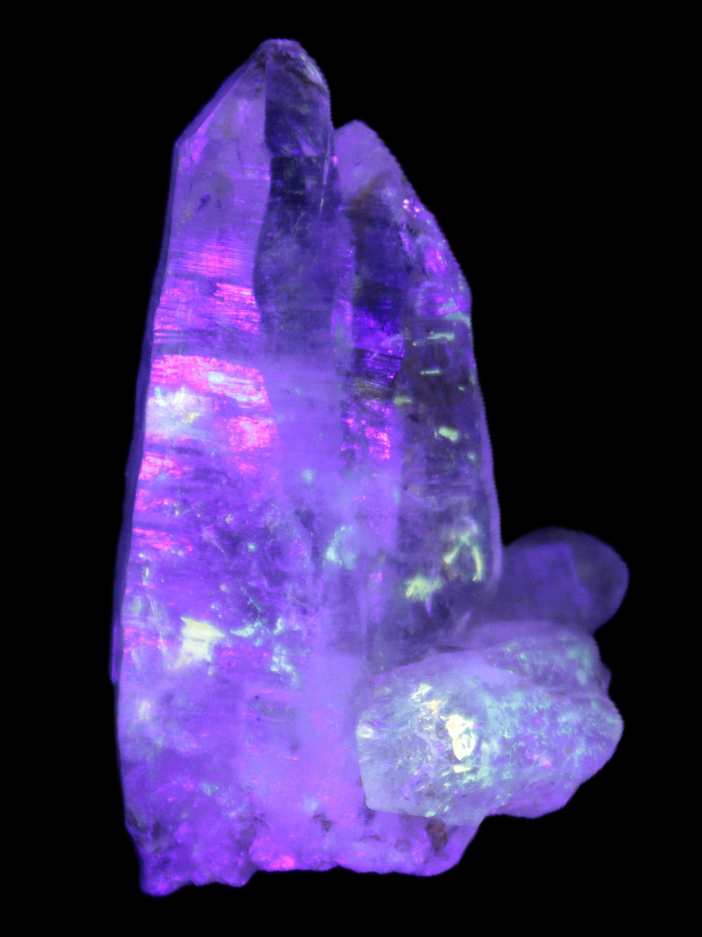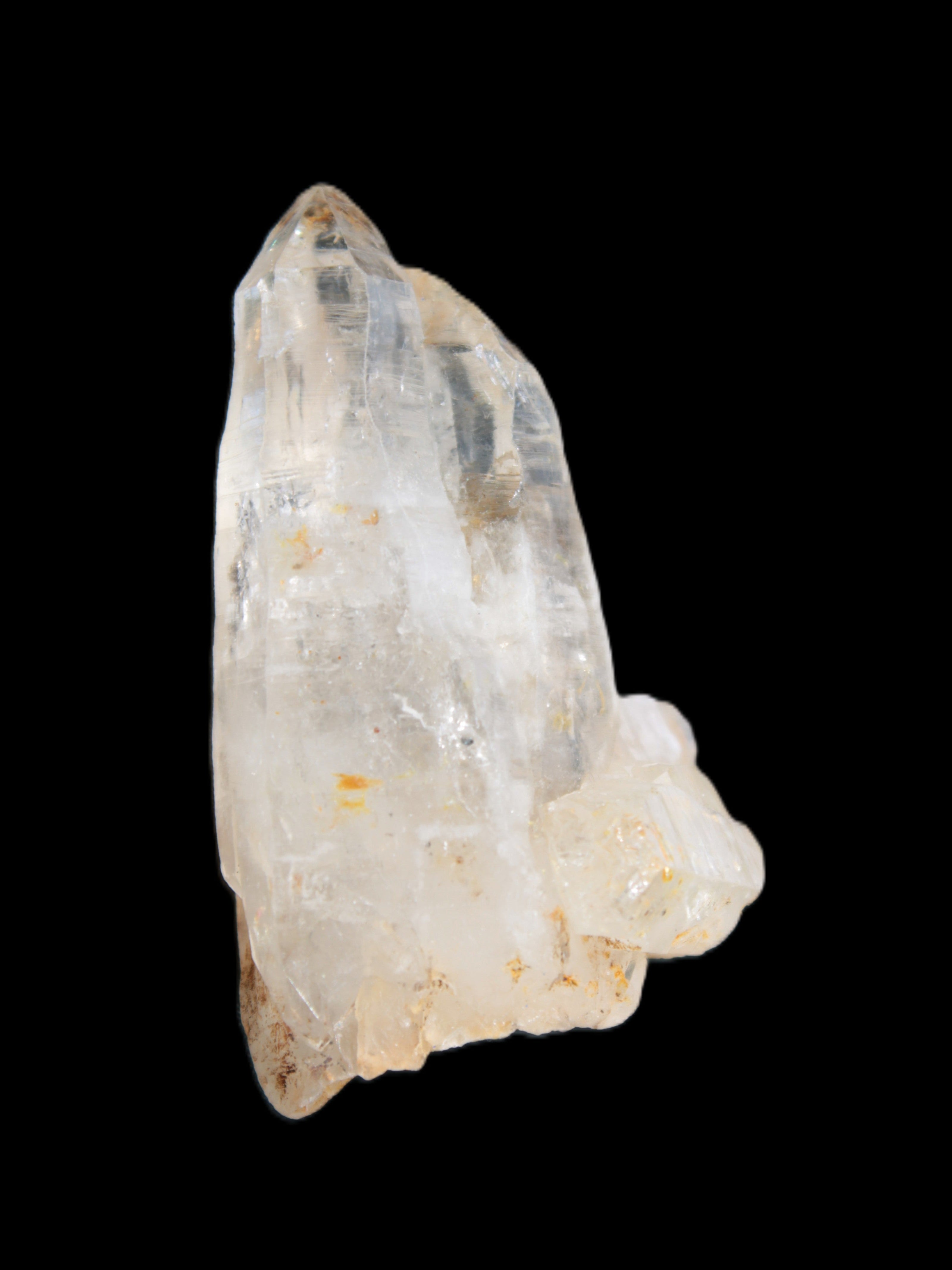These windows are triangular planar formations within the crystal structure. The complex skeletal structure happens because the crystal has formed in unstable conditions, causing stop-start and irregular growth. The myriad interior planes and windows give rise to dancing patterns of light when the crystal is turned in light. Fensters can also feature elestial formations and enhydros. The complex formation gives Fenster Quartz additional healing properties to the extensive properties of regular Quartz.
