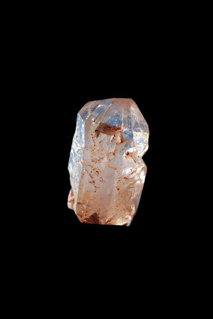 The Fenster Diamond Quartz is a powerhouse for spiritual growth. These fascinating specimens weigh between 12 and 18g. Fenster quartz is named for its complex interior structure, with many chambers, phantoms and windows within the crystal. From German, ‘Fenster’ means window. These windows are triangular planar formations within the crystal structure. The complex skeletal structure happens because the crystal has formed in unstable conditions, causing stop-start and irregular growth. The myriad interior planes and windows give rise to dancing patterns of light when the crystal is turned in light. Fensters can also feature elestial formations and enhydros. The complex formation gives Fenster Quartz additional healing properties to the extensive properties of regular Quartz.