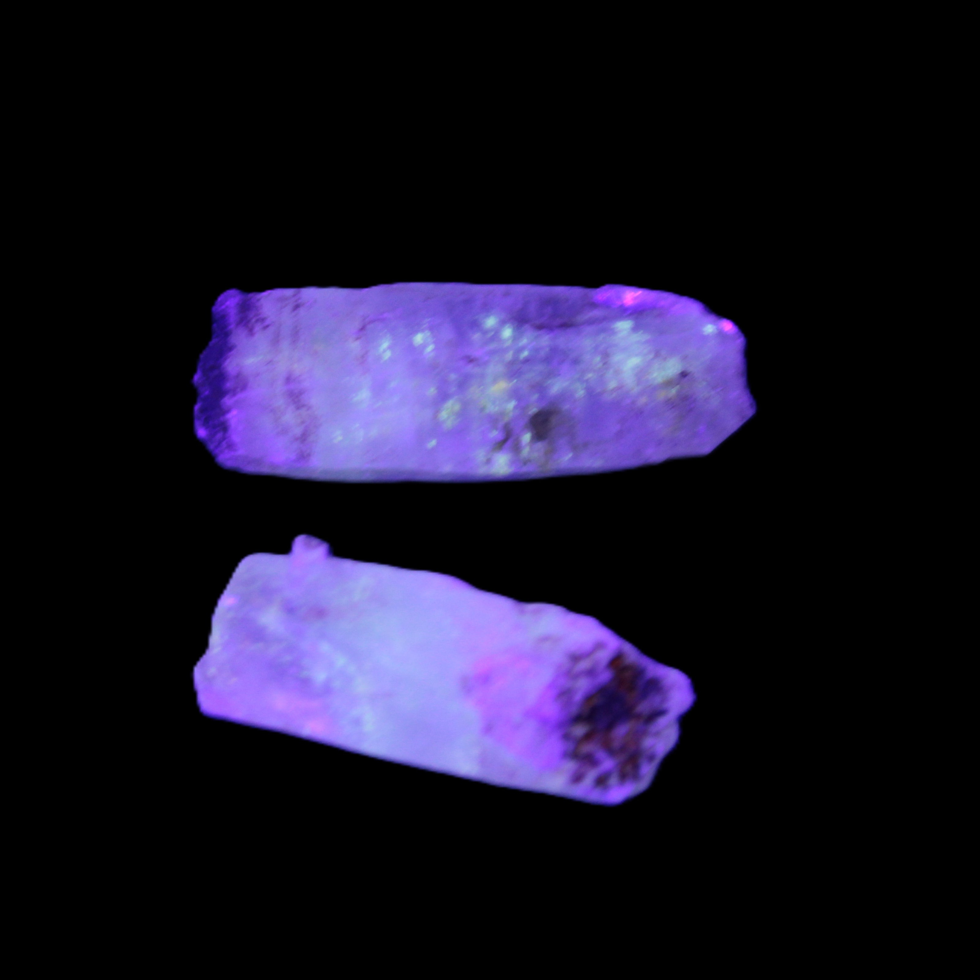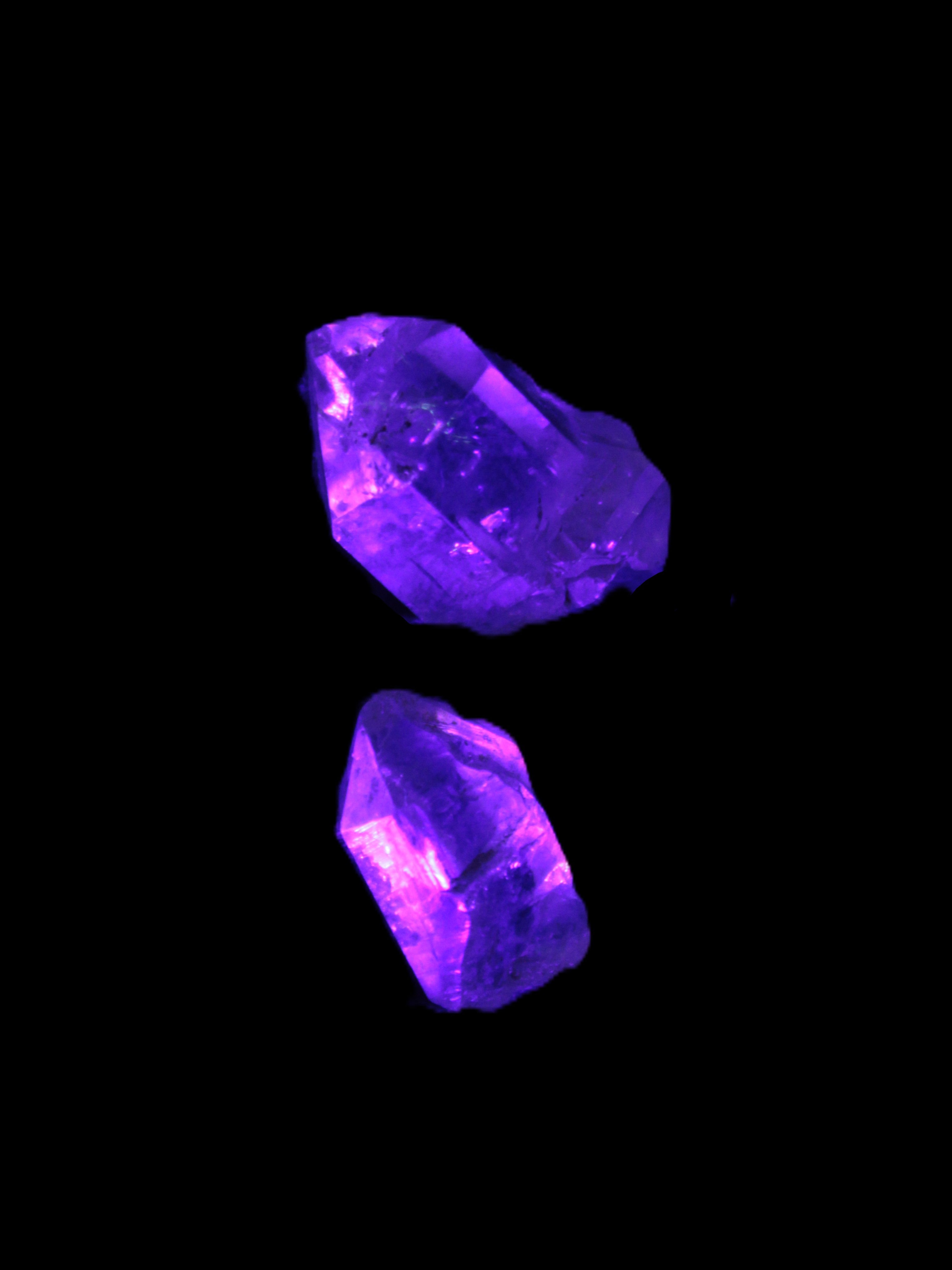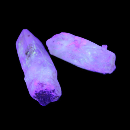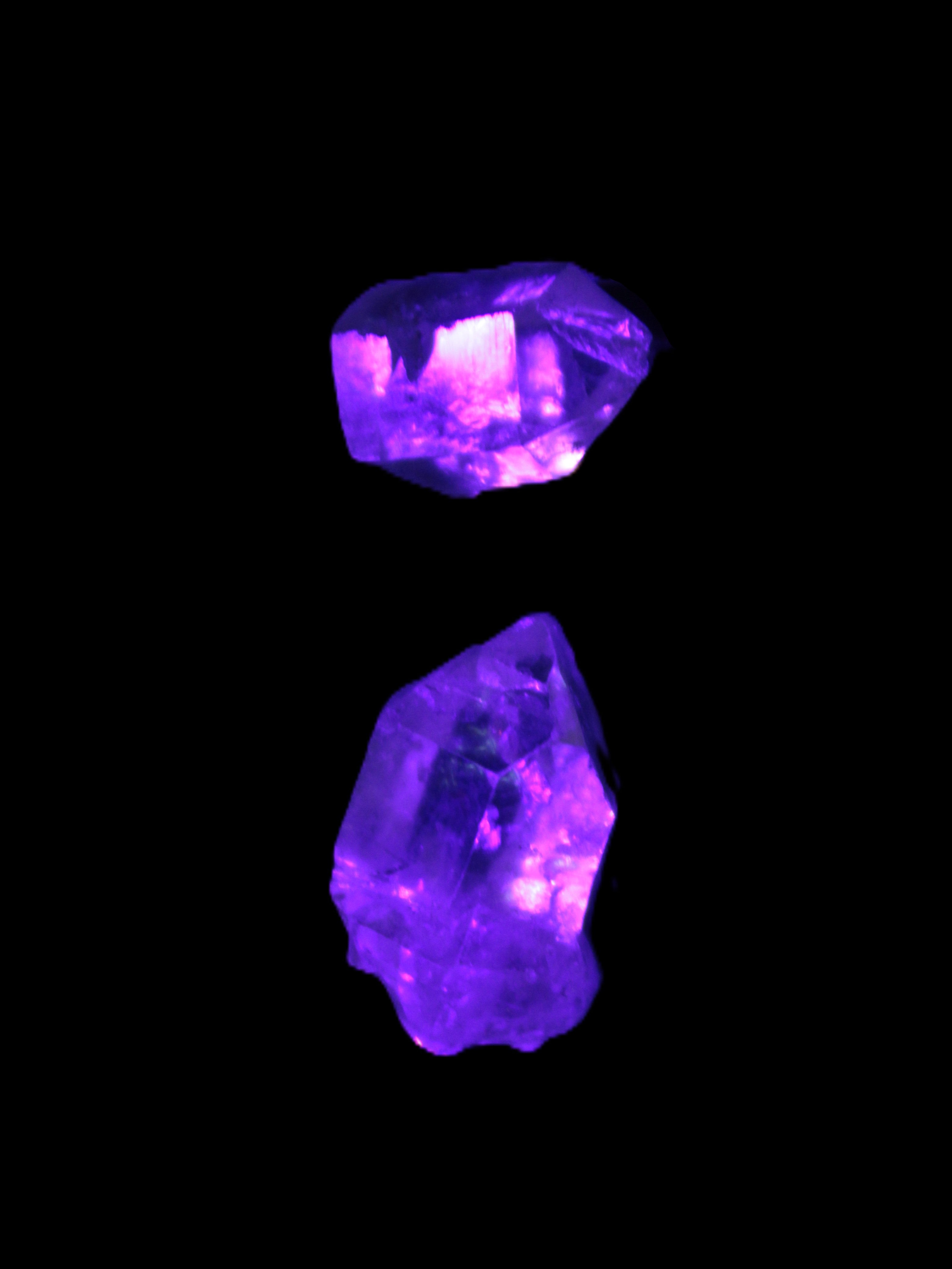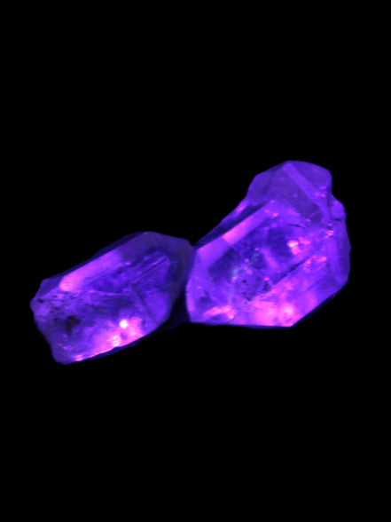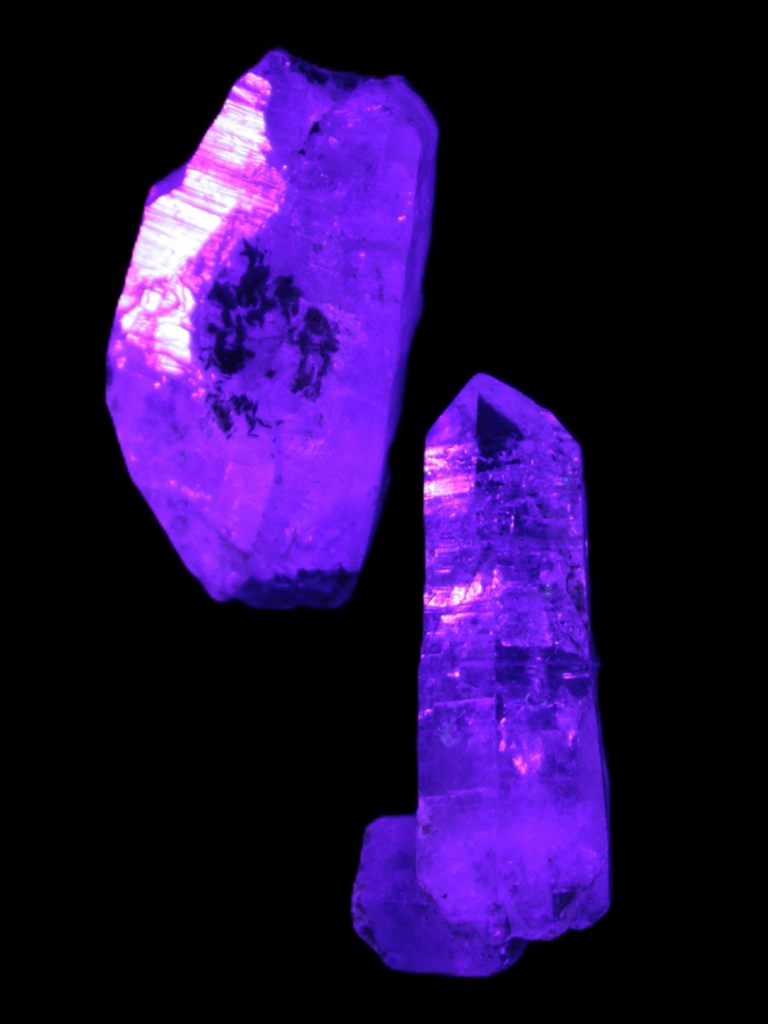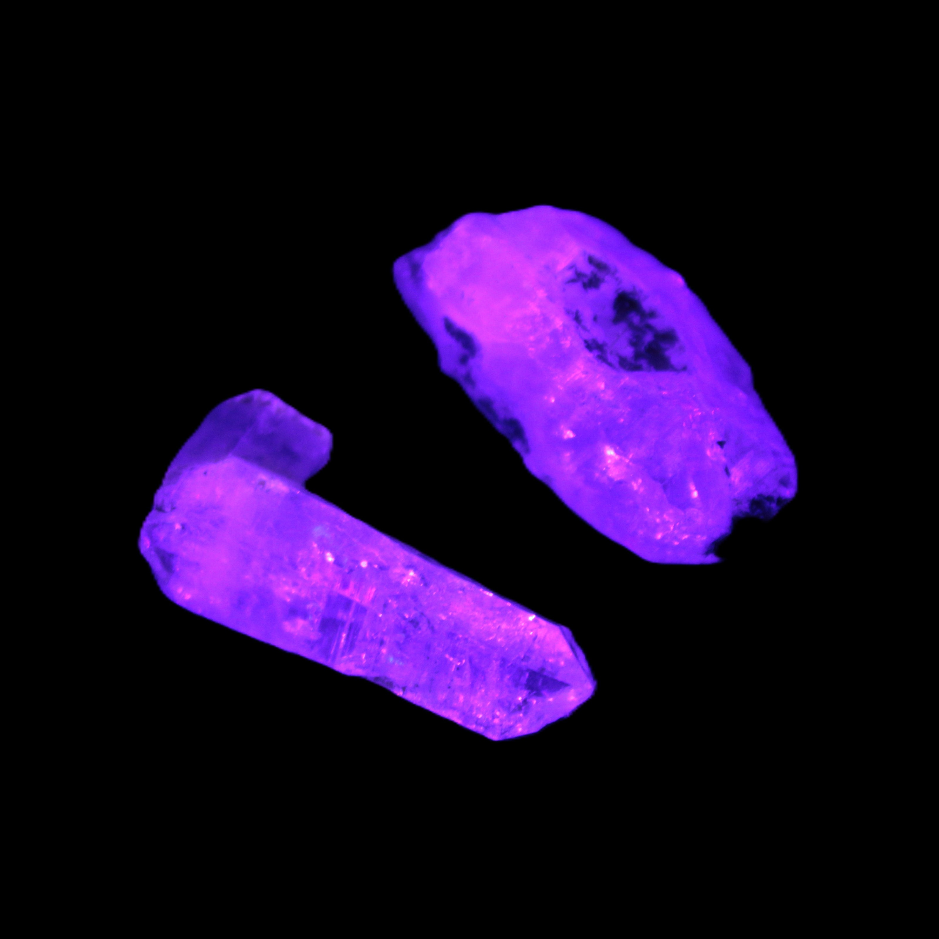 These Two Fenster skeletal Enhydro crystals with hydrocarbons selections weigh 3.6-14.9g. The selections have a range of awesome feature. These include bridges, double-terminations, enhydros, hydrocarbons and strong fluorescence under ultra-violet light.