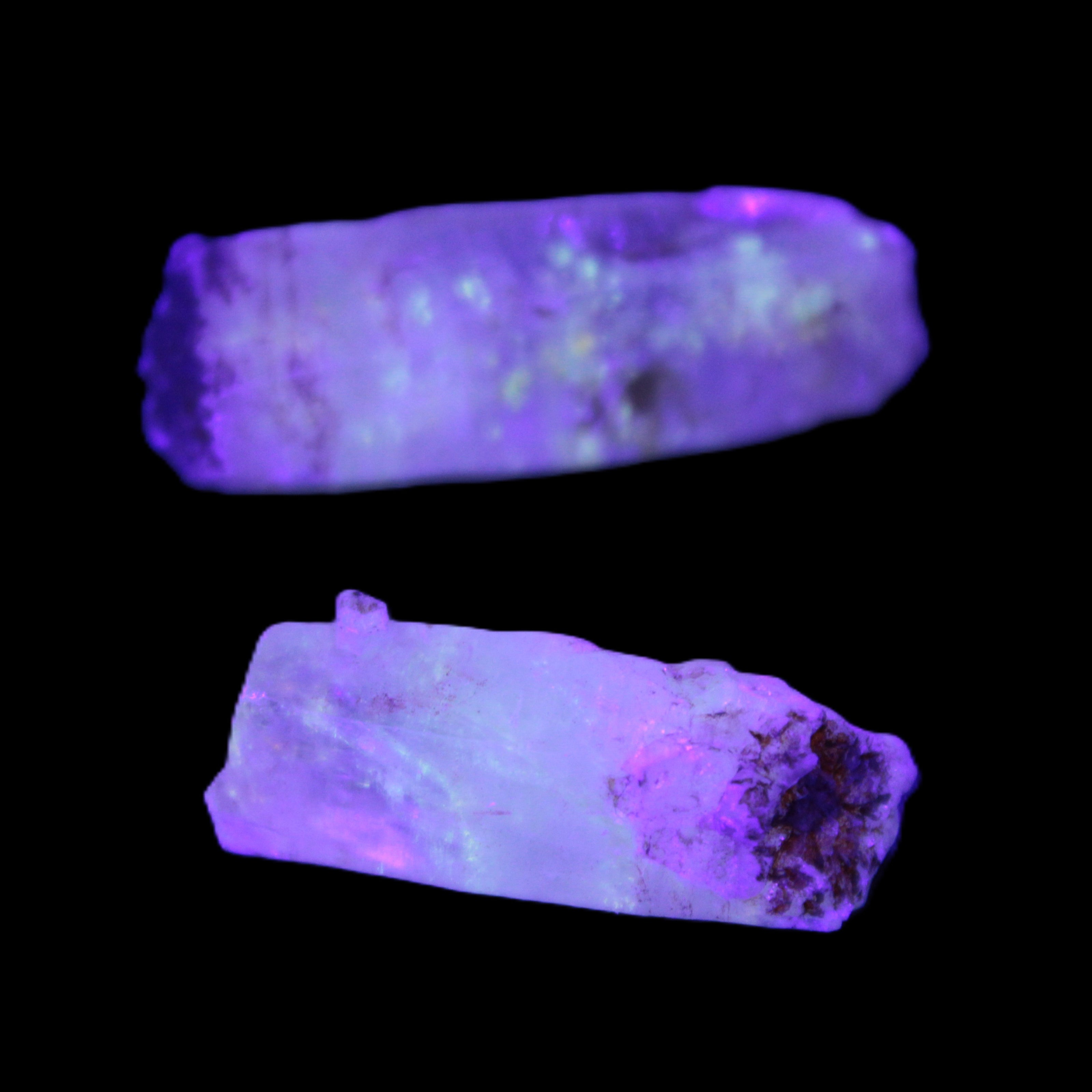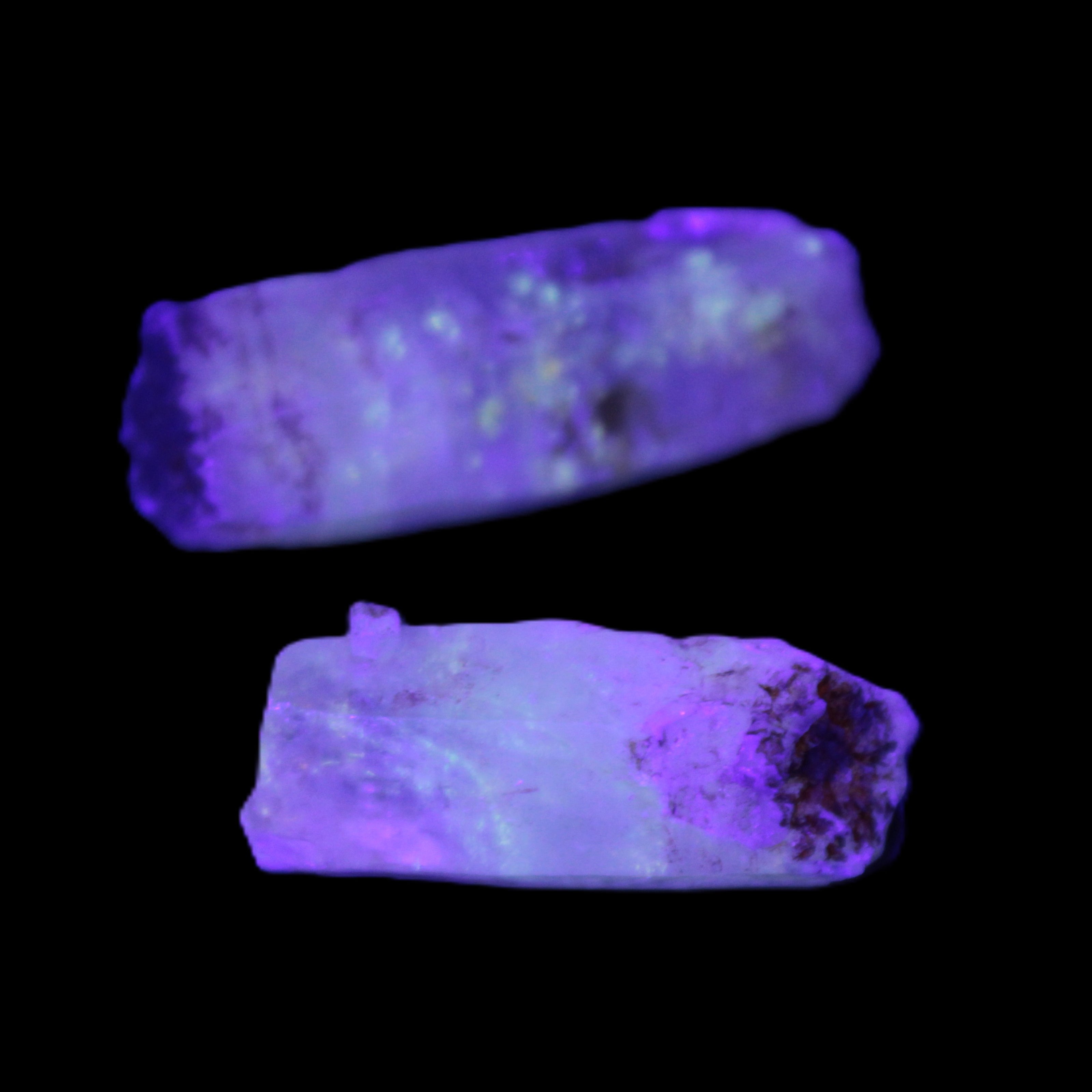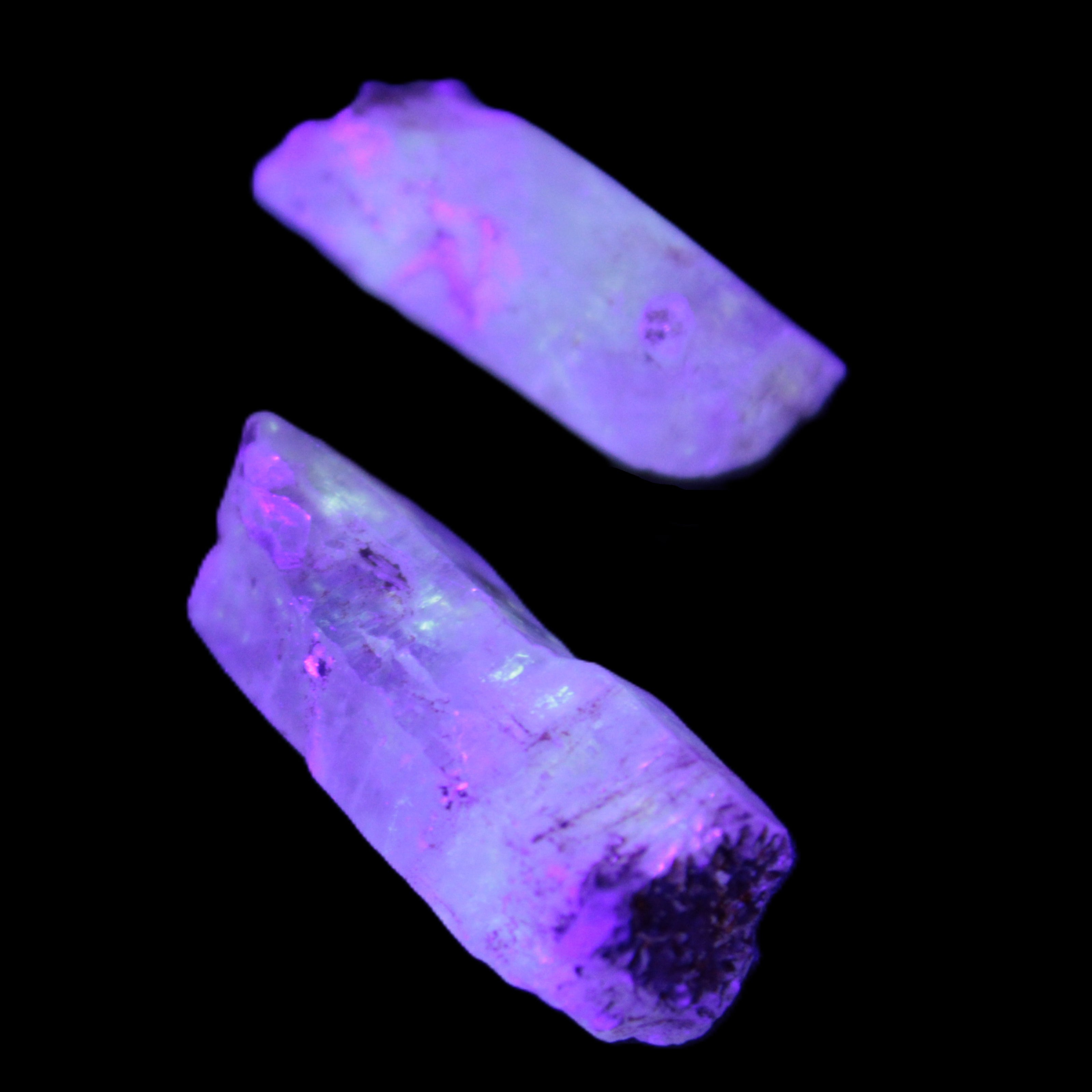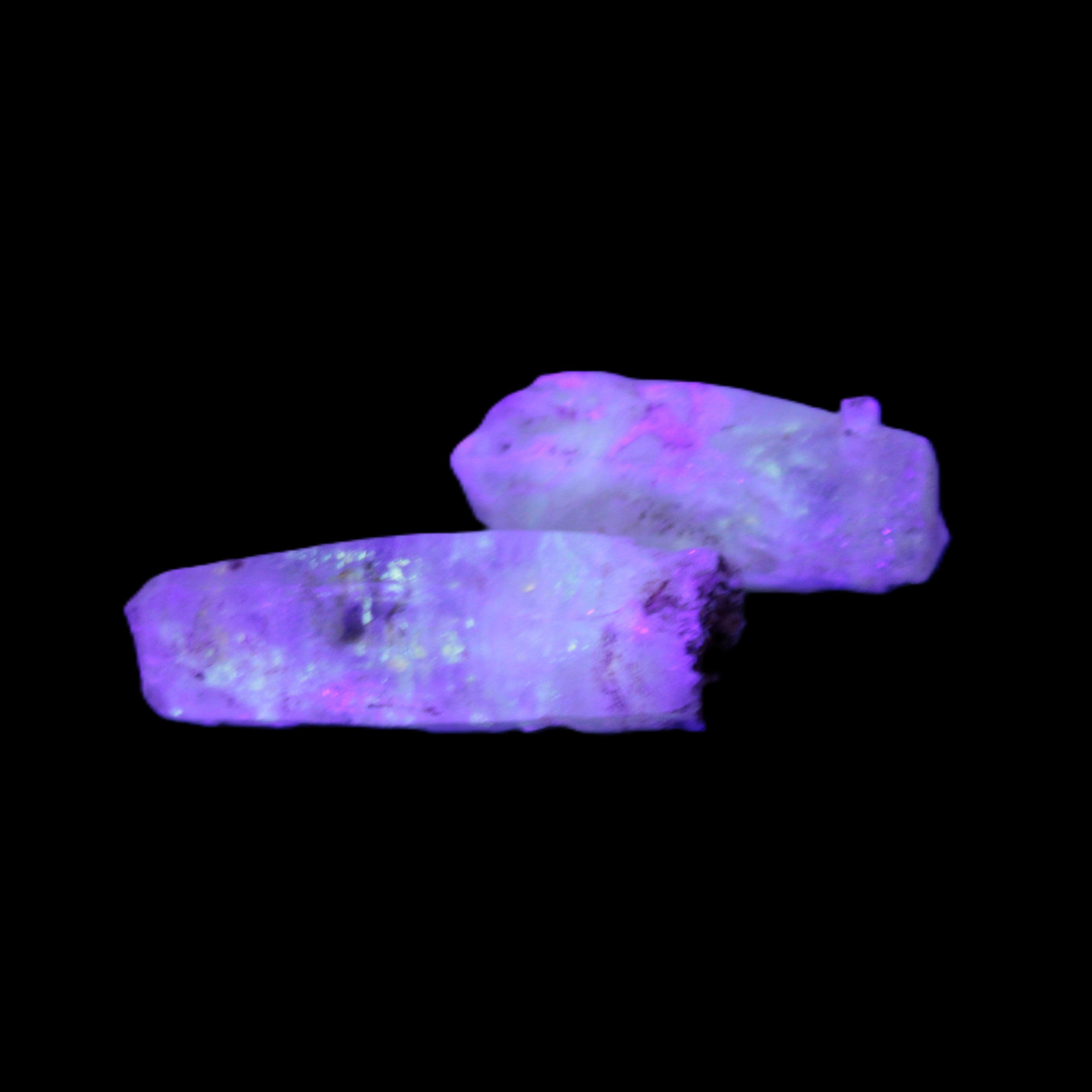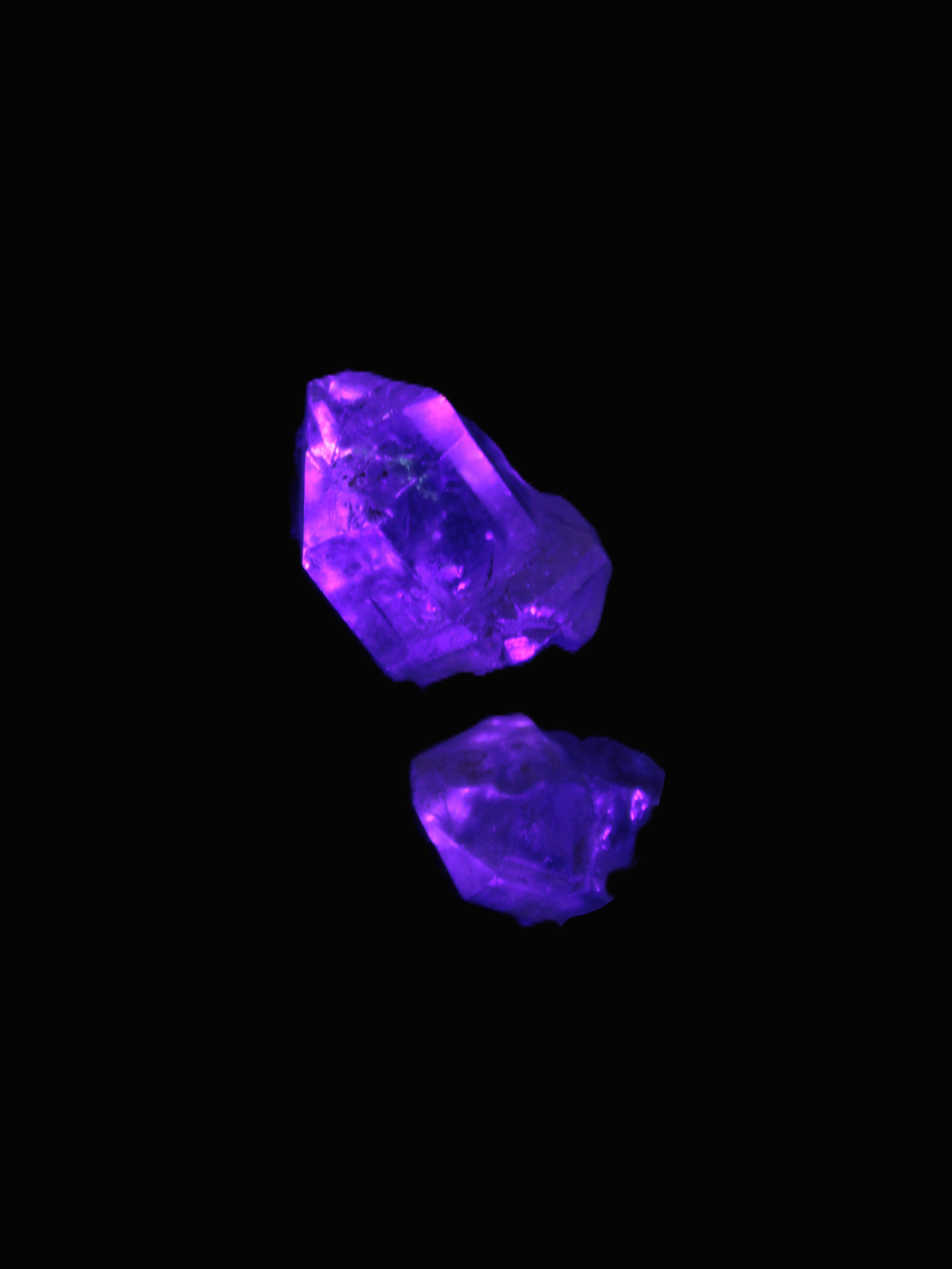 These Two Fenster skeletal Enhydro crystals with hydrocarbons selections weigh 3.6-14.9g. The selections have a range of awesome feature. These include bridges, double-terminations, enhydros, hydrocarbons and strong fluorescence under ultra-violet light.