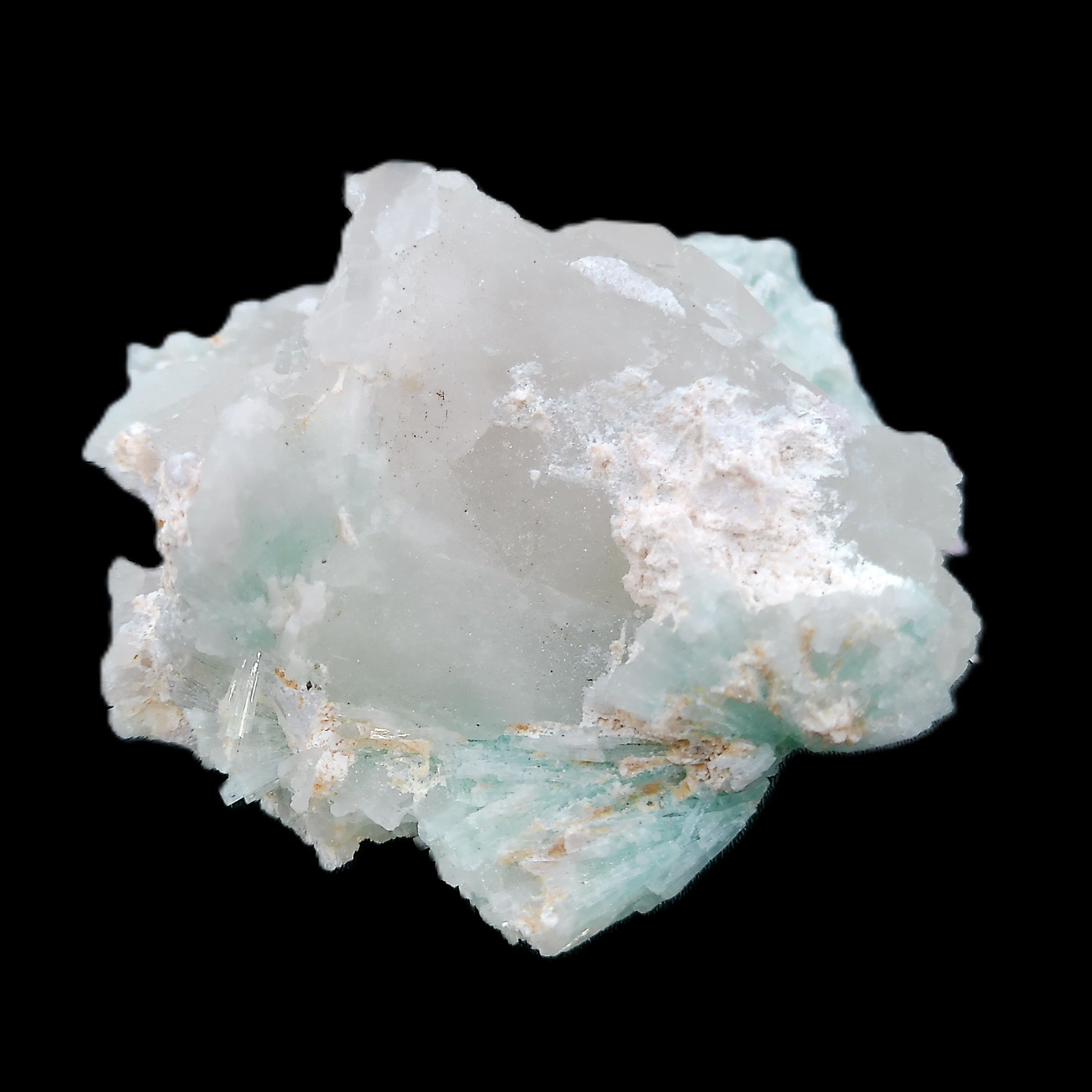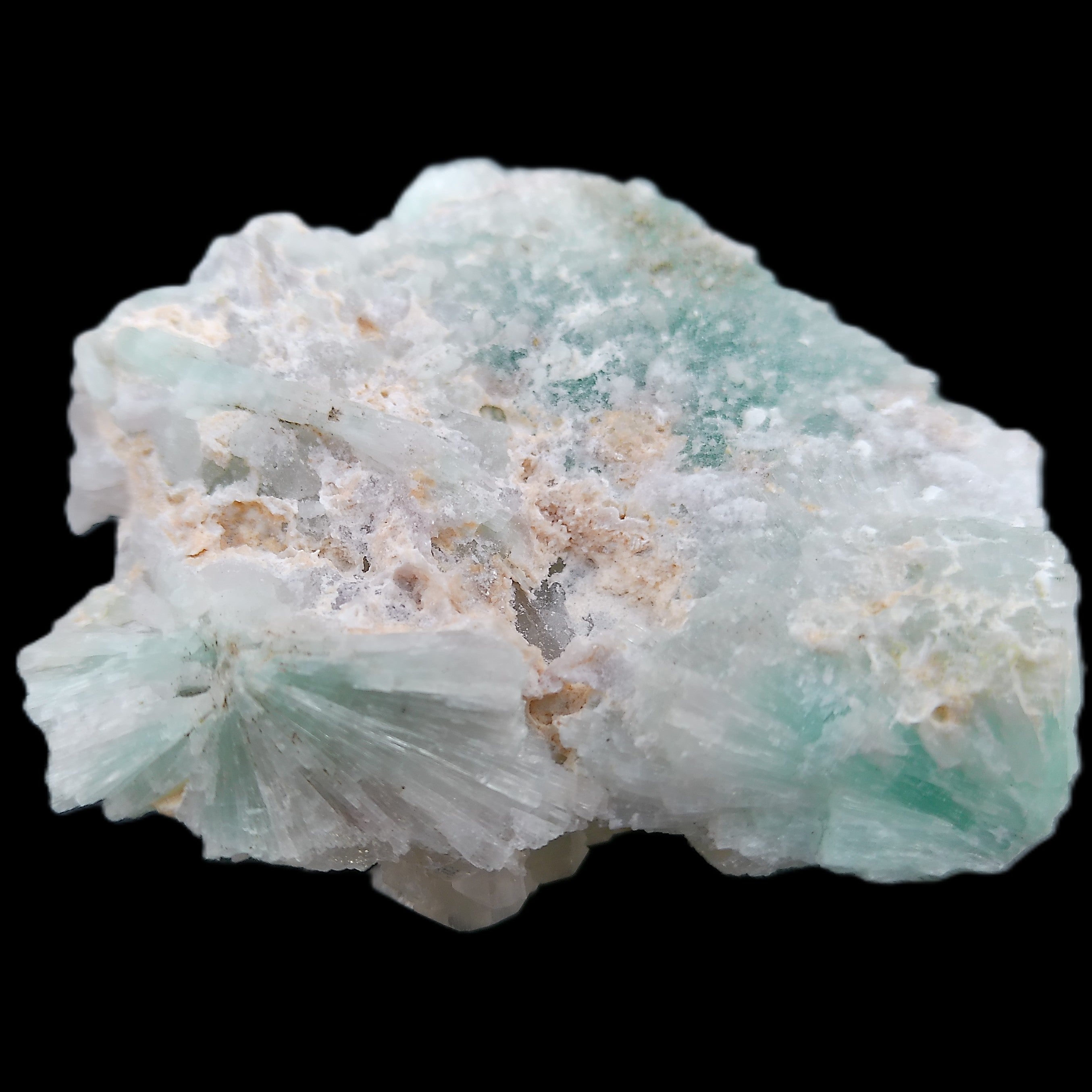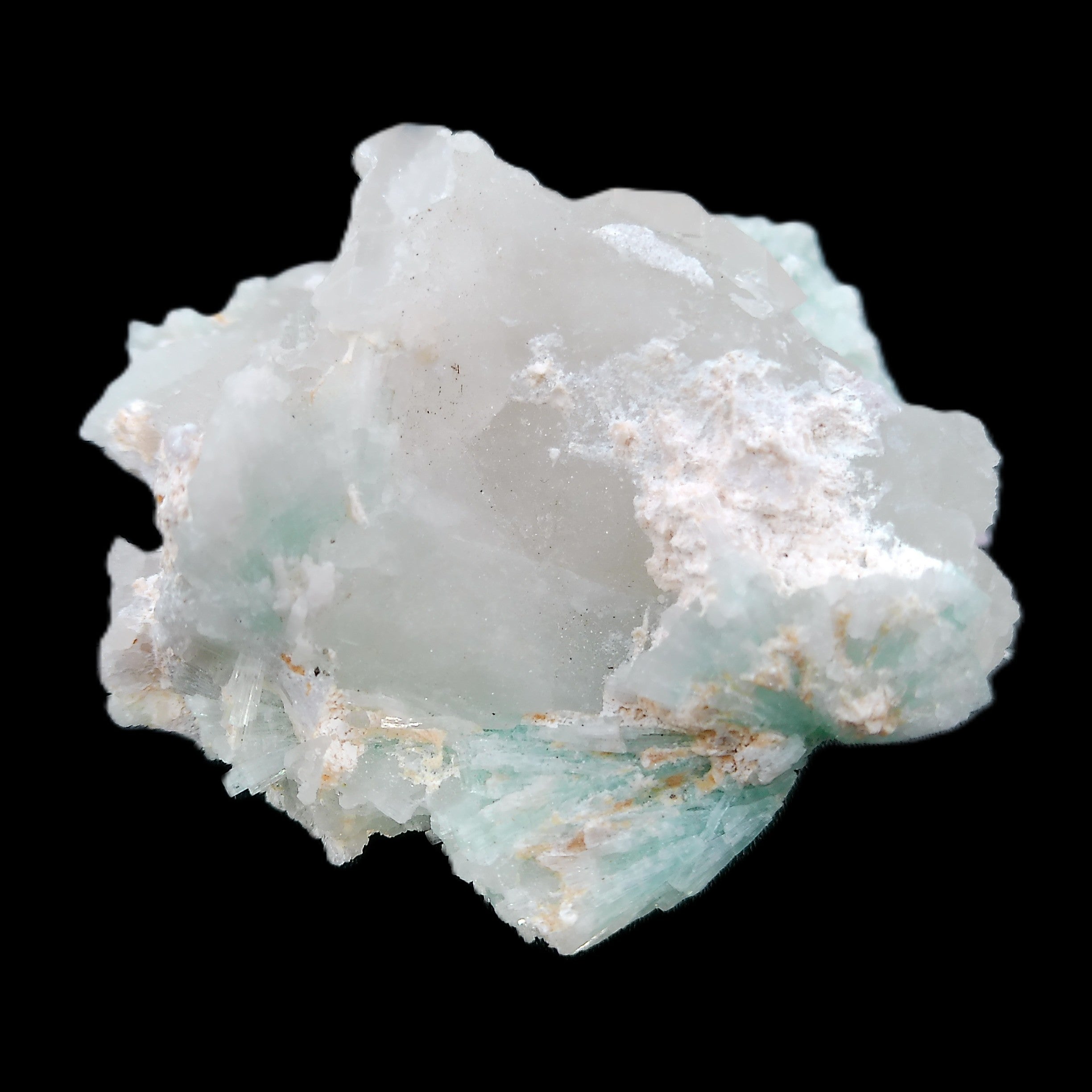 This Floral Green Tourmaline with Elestial Quartz 57*56*24mm weighs 75g. This specimen features floral Green Tourmaline crystal structures. This specimen was sourced in Afghanistan for us by our partner, Lawrence Handicrafts. Green Tourmaline is a beautiful complex lithium-rich borosilicate mineral. Elbaite usually forms as elongated rods or prismatic crystals that are heavily striated. Green (and blue) Elbaite crystals are often pleochroic, which means that the crystal appears darker in colour when viewed along its vertical axis, compared to viewing along its horizontal axis. Elbaite is an igneous mineral that almost always forms in granite pegmatites.