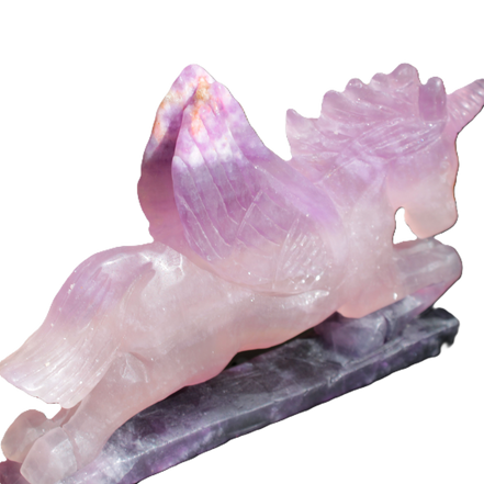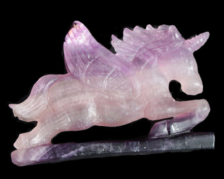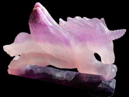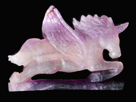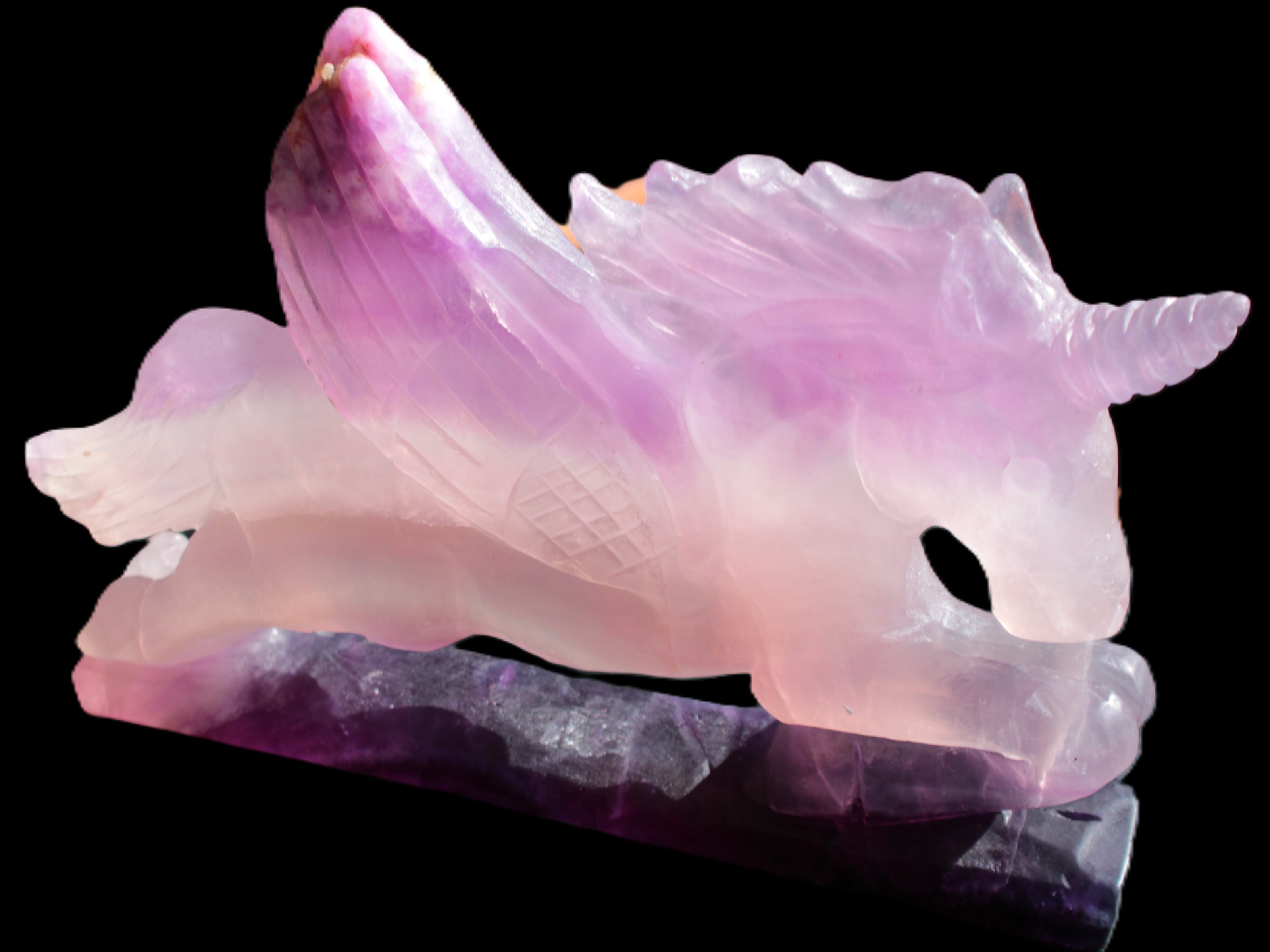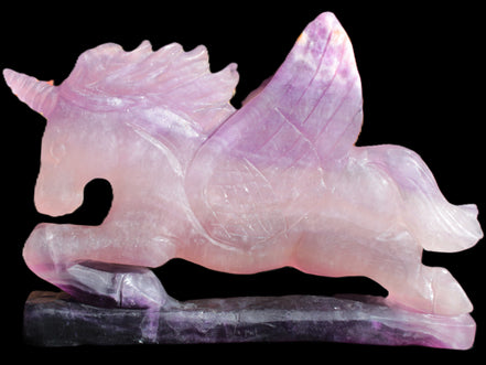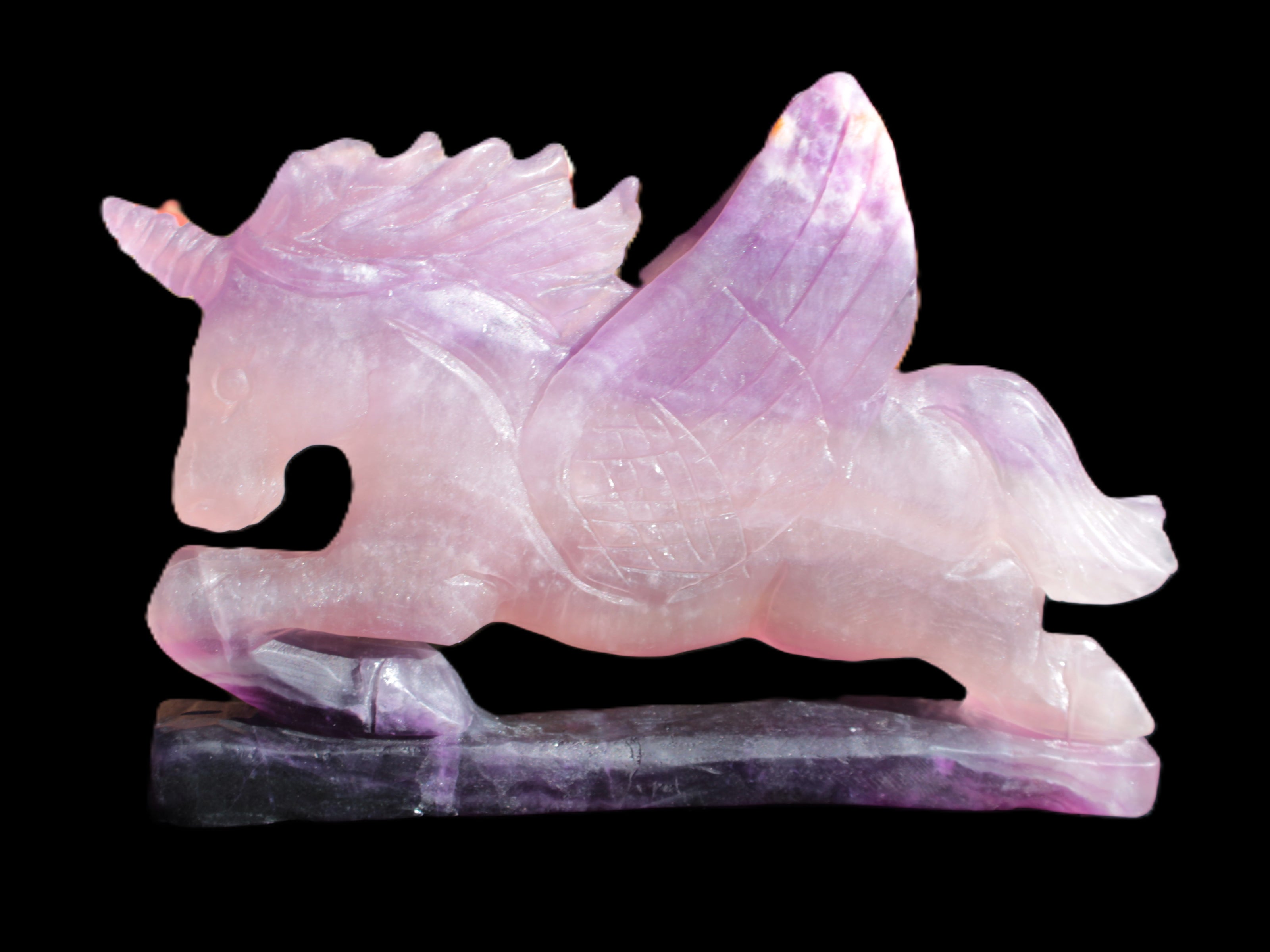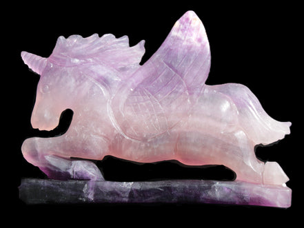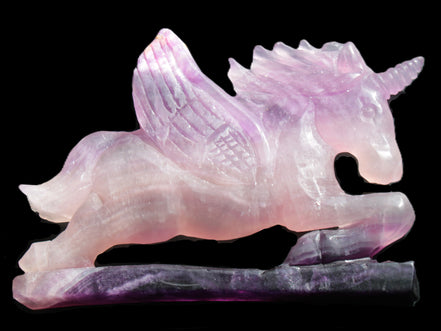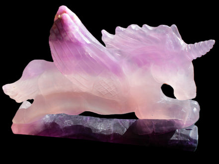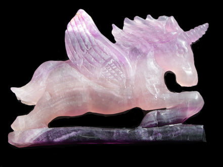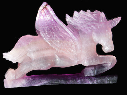 This Fluorite hand-carved Unicorn 215*152*29mm is large at 1500g. Its carving, mythology and size makes it a great statement piece. This Fluorite is UV reactive too, turning blue under ultra-violet light.