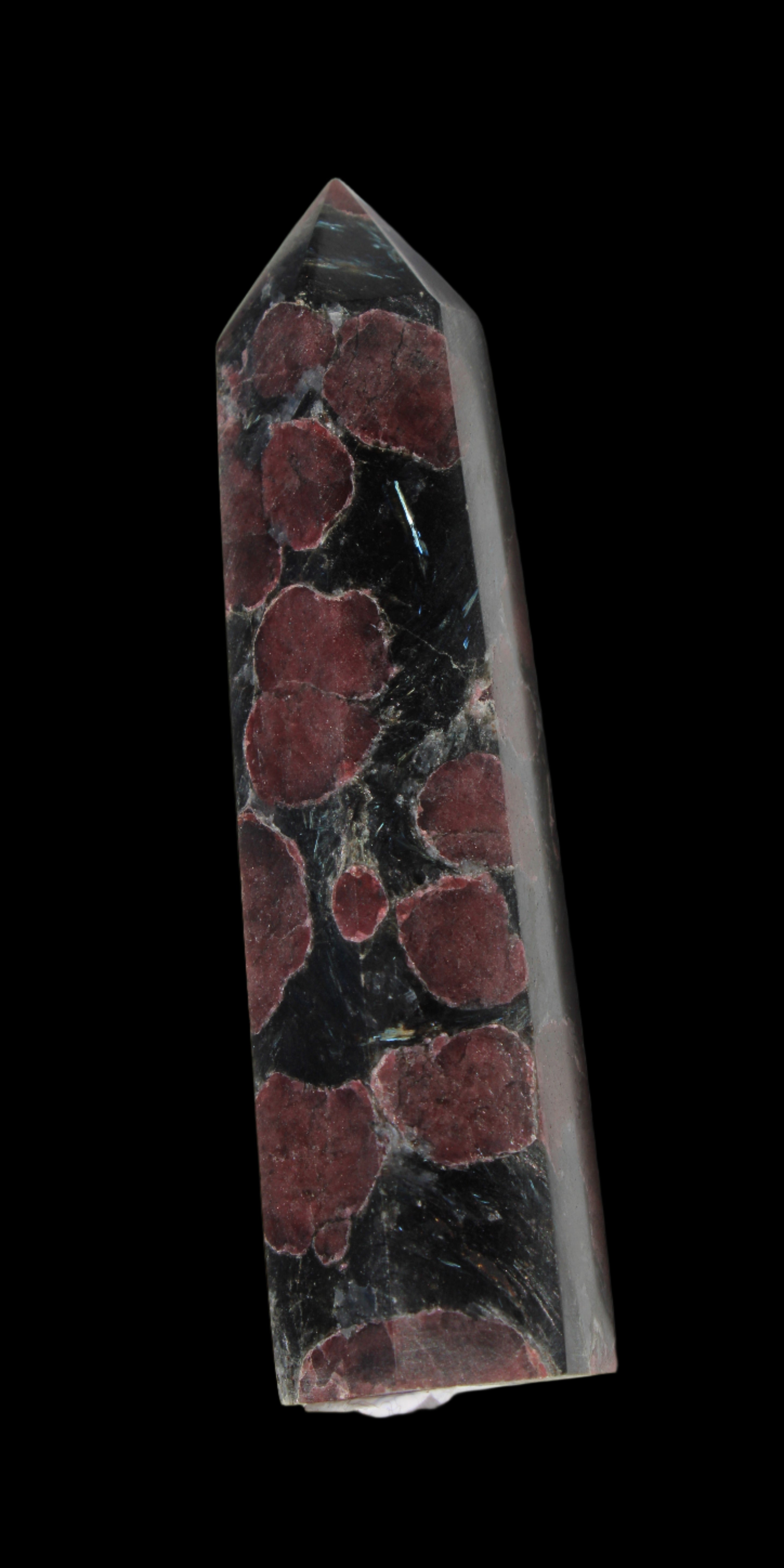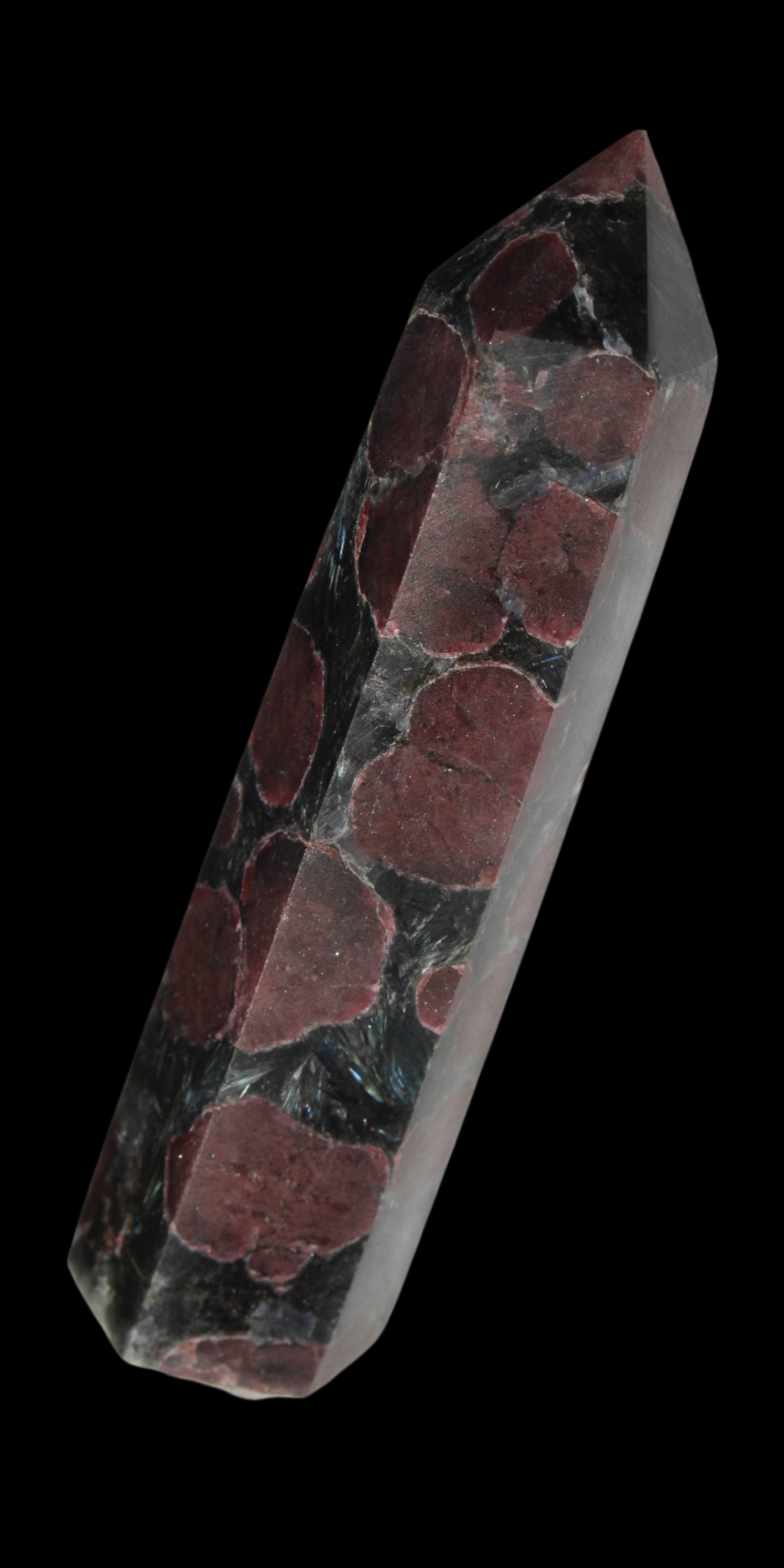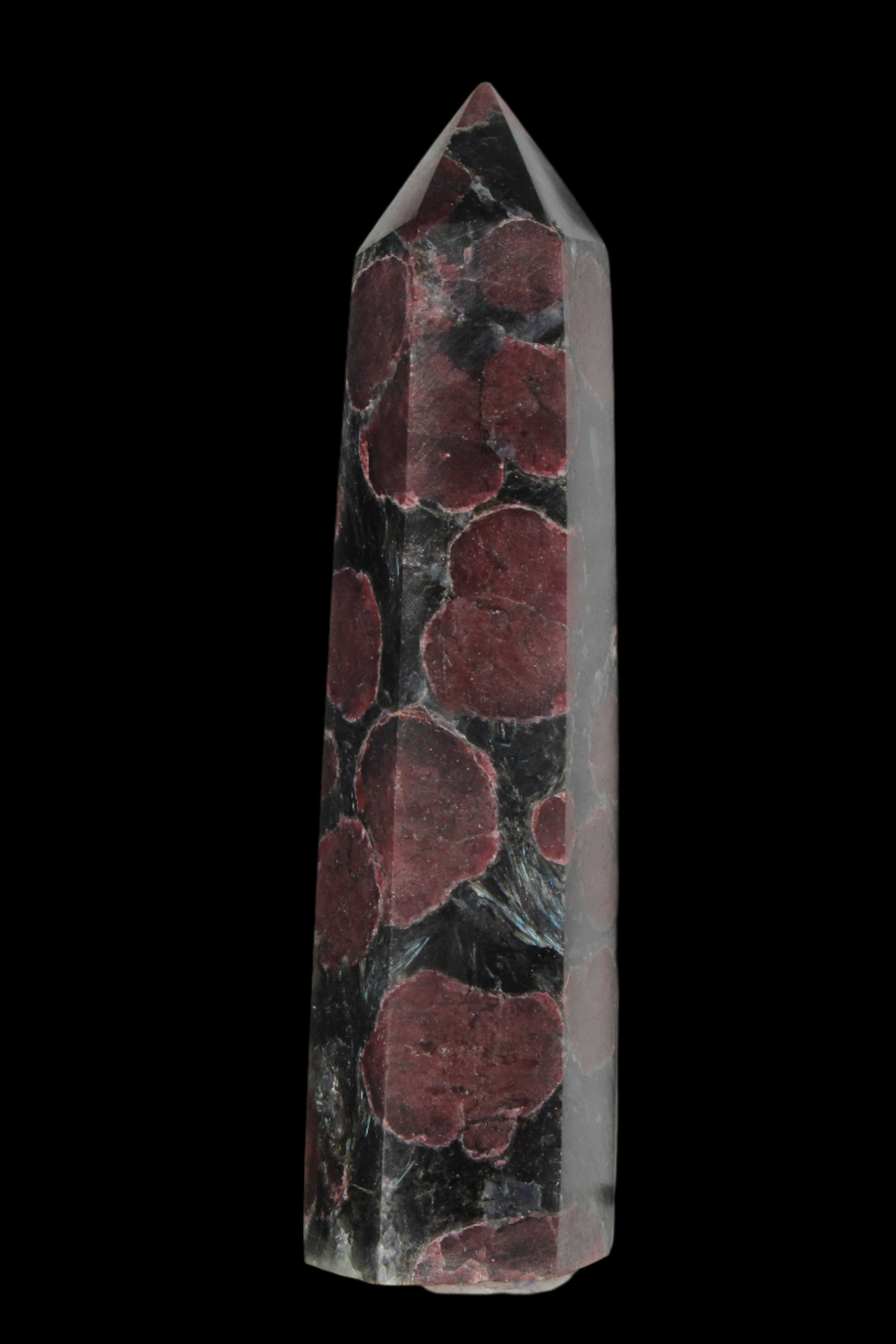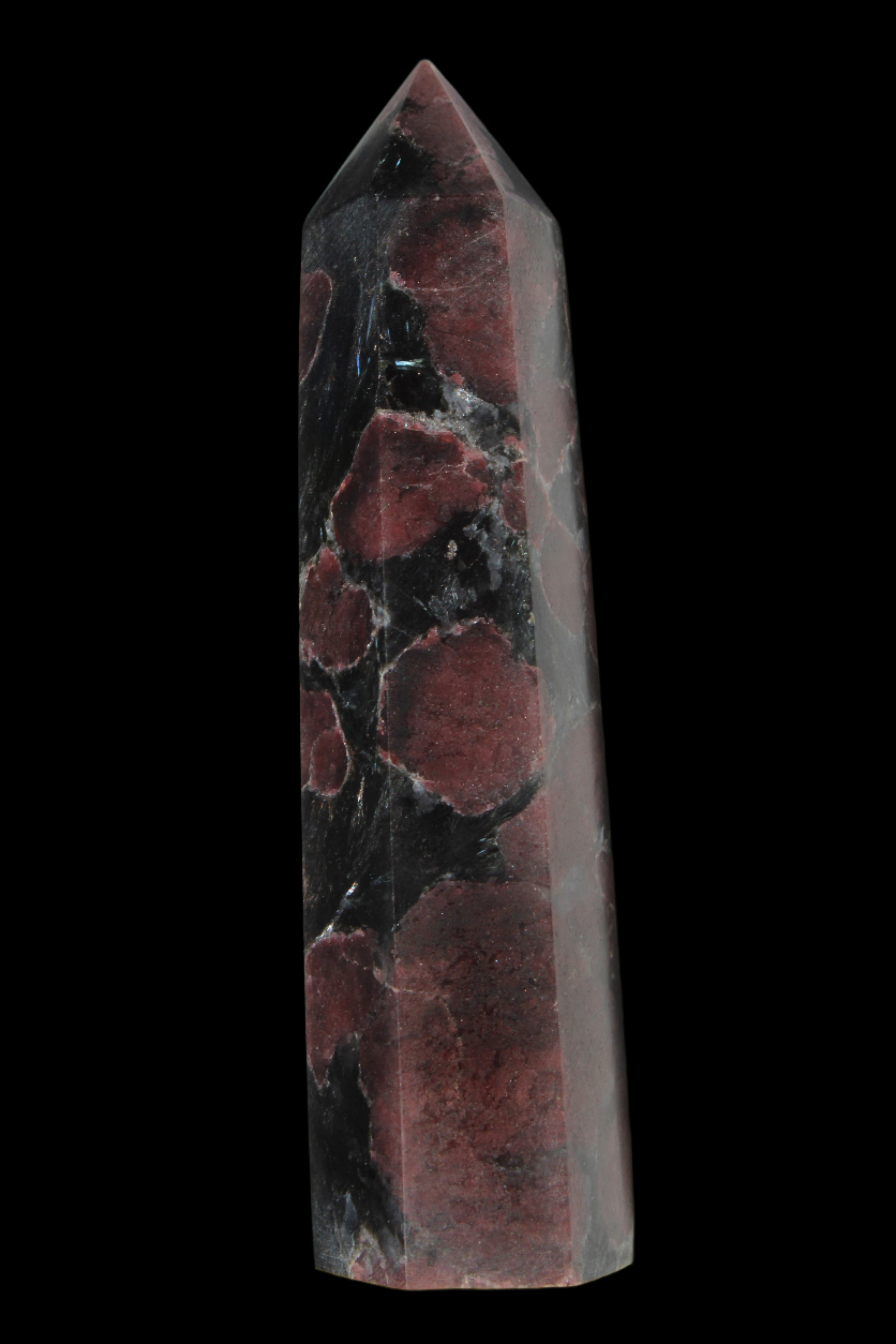 This Garnet with Astrophyllite wand weighs 119g. Garnet is a highly grounding stone with immense manifestation abilities. The flash and fire of Garnet inspires a sense of lightness and brightness. This lessens anger, especially toward oneself. Garnet is a good stone for depression as it can bring joy and hope. It can illuminate dark places and dark souls. Garnet’s fire stimulates the survival instinct, bringing willpower and courage to a situation. Garnet brings internalised feelings and ideas to the surface, for you to act upon.