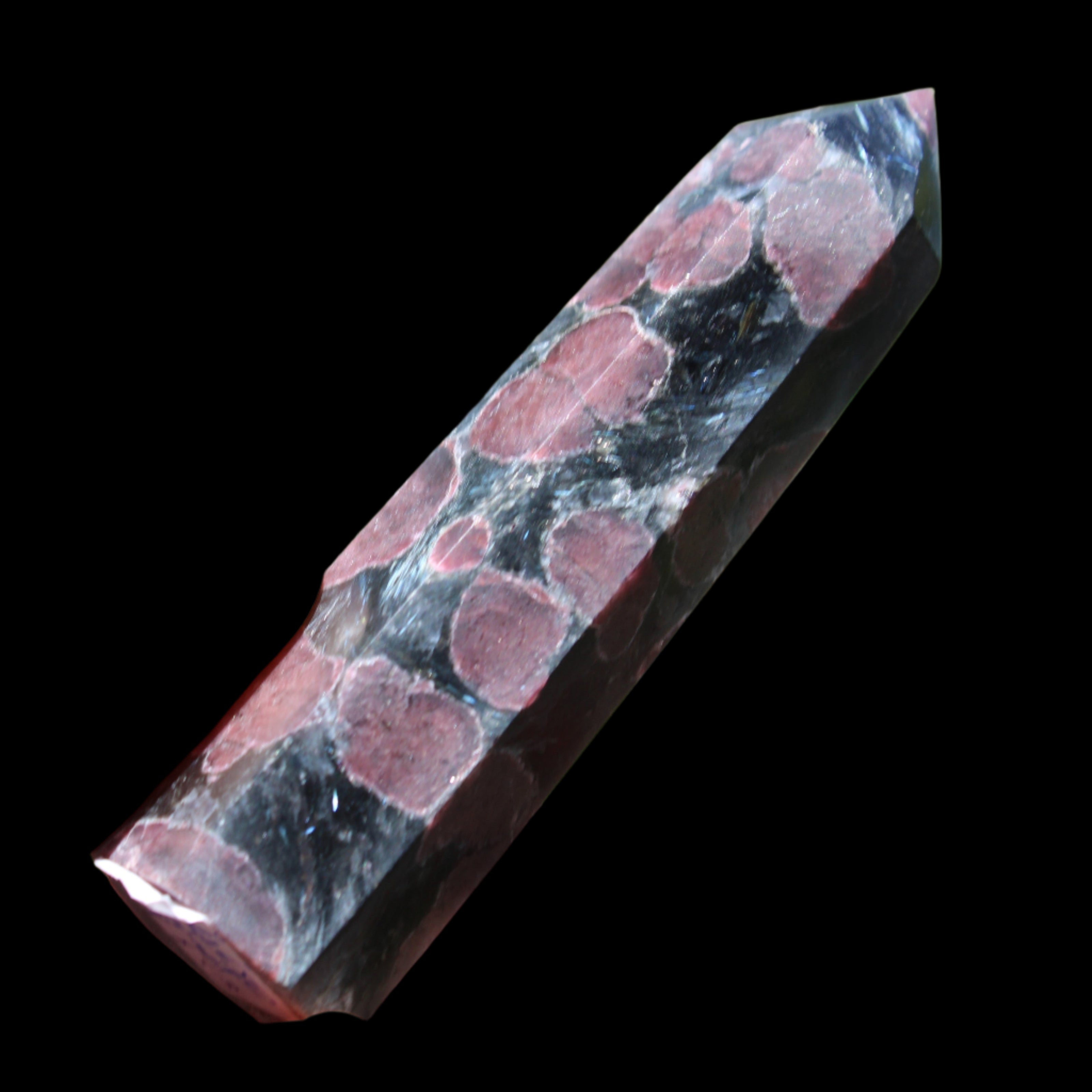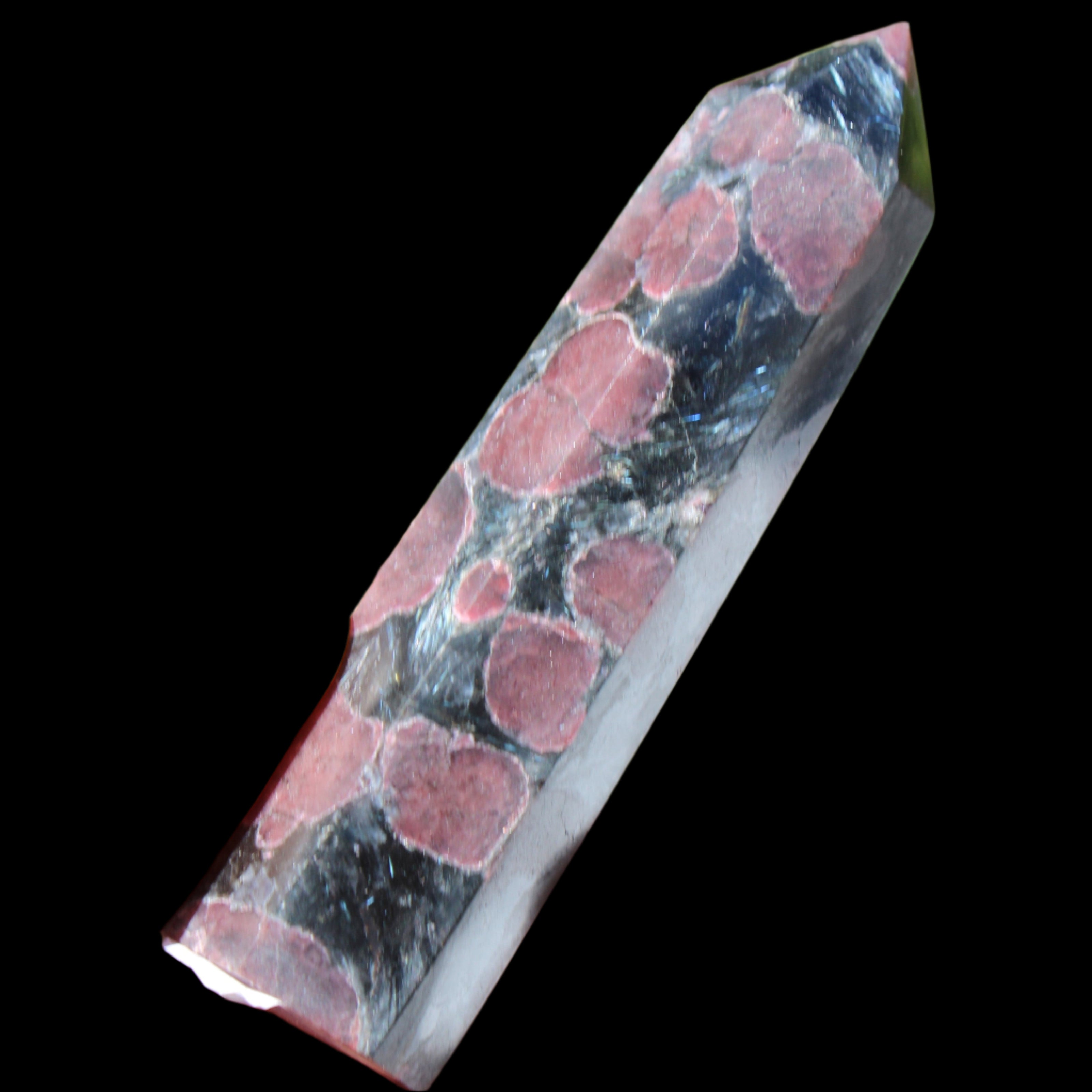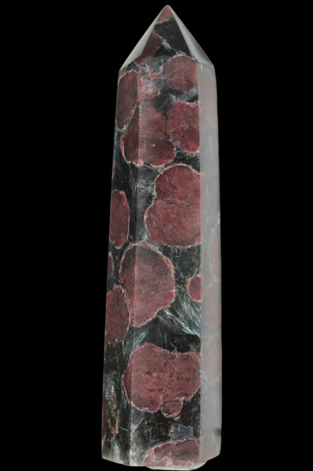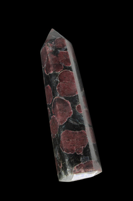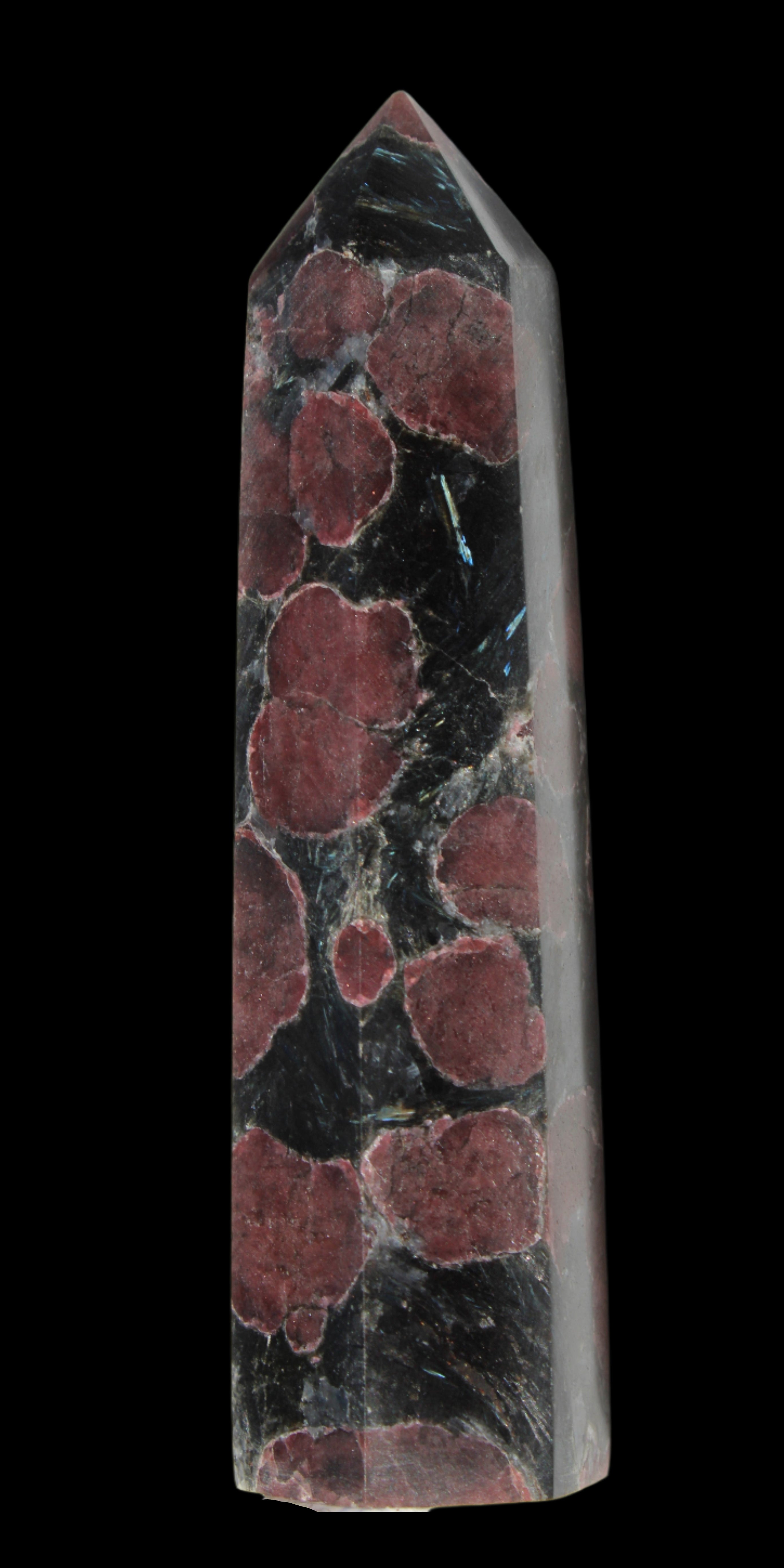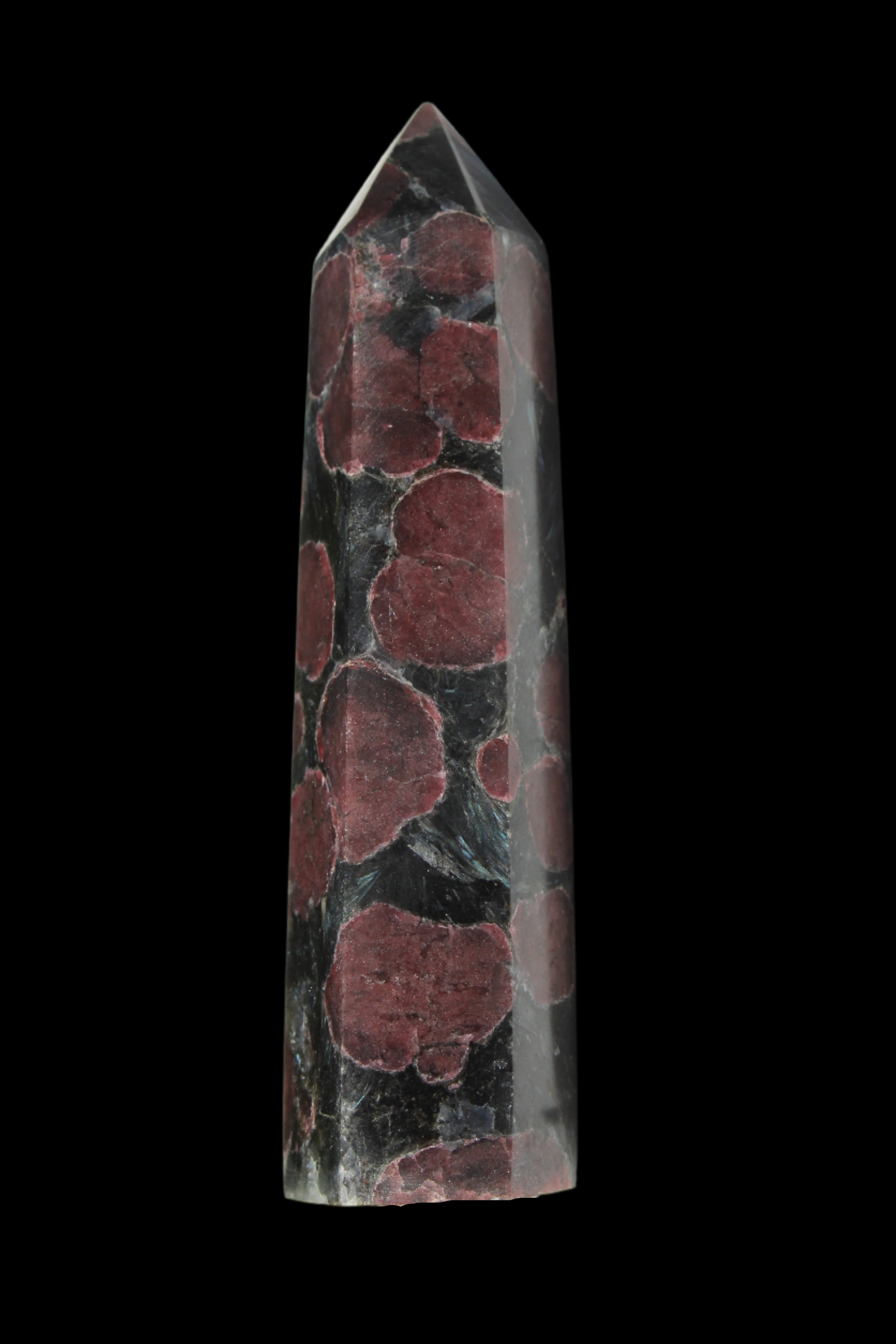 This Garnet with Astrophyllite wand weighs 119g. Garnet is a highly grounding stone with immense manifestation abilities. The flash and fire of Garnet inspires a sense of lightness and brightness. This lessens anger, especially toward oneself. Garnet is a good stone for depression as it can bring joy and hope. It can illuminate dark places and dark souls. Garnet’s fire stimulates the survival instinct, bringing willpower and courage to a situation. Garnet brings internalised feelings and ideas to the surface, for you to act upon.