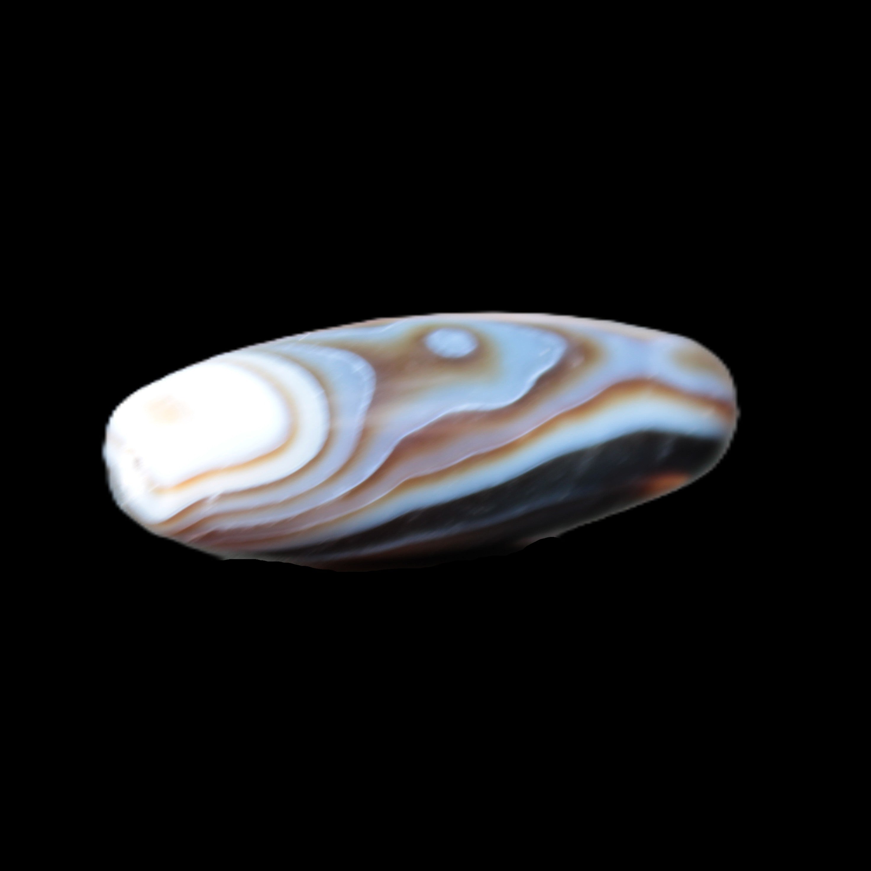 This Gobi Eye Agate from Mongolia drilled bead 46.5*15mm weighs 17g. As it is drilled, it can be used in jewelry making. These agates ground excess spiritual energy, returning it to Mother Earth. The stone resonates with a heart-based vibration, supporting balanced enduring energy.
