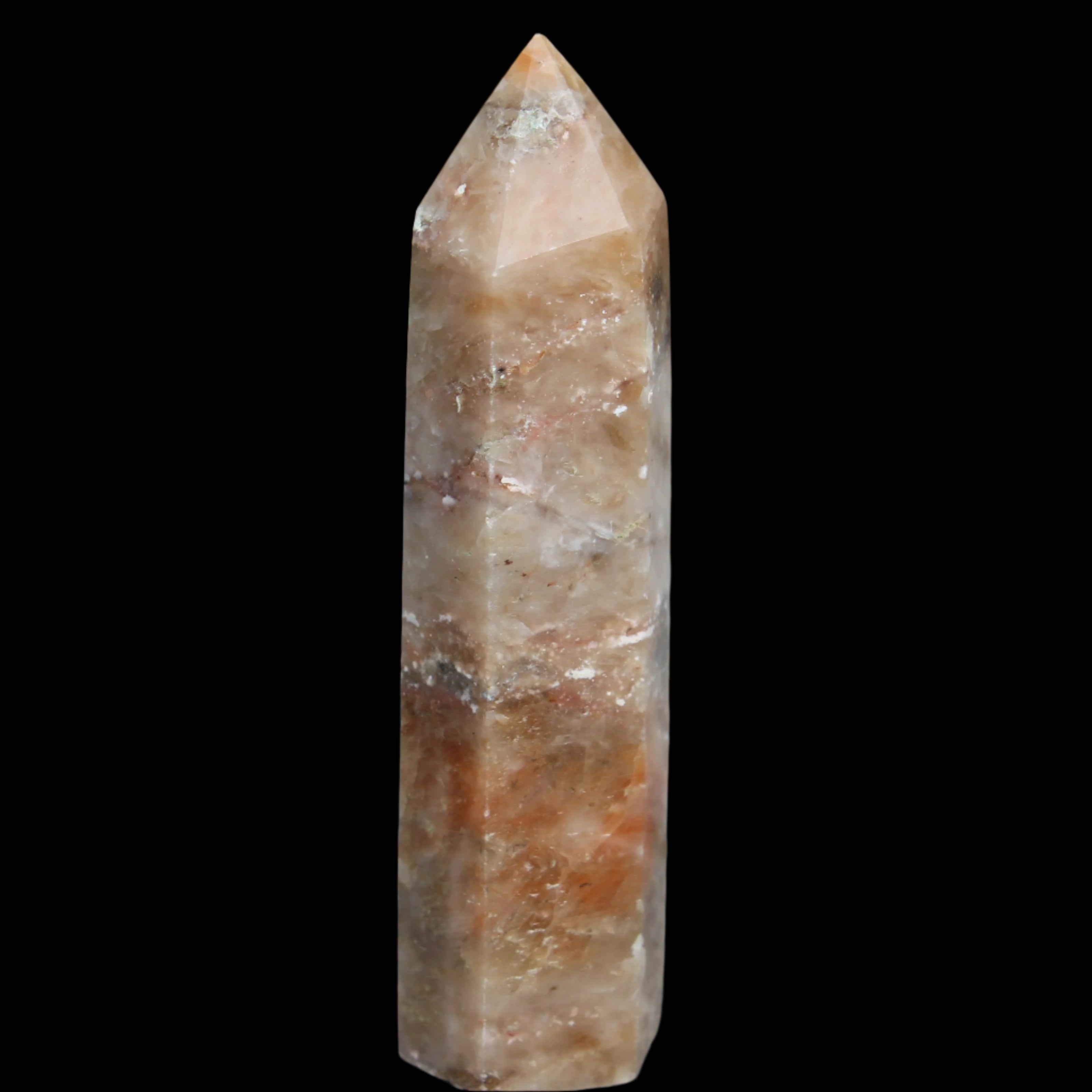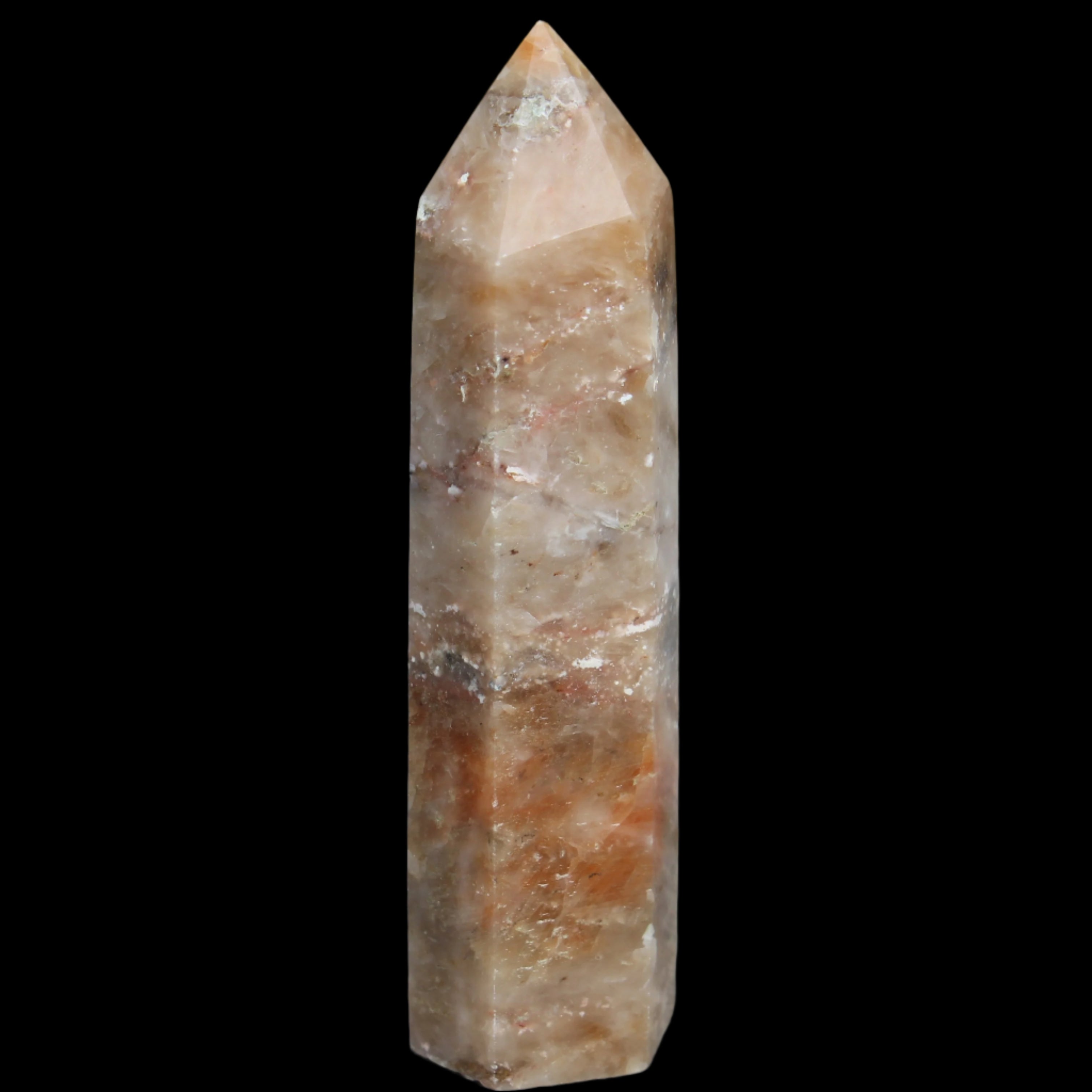 This Golden Arusha Quartz wand weighs 127g. Arusha Golden Quartz is a distinctive sparkling Quartz crystal from mines in the Arusha region of Tanzania. The sparkling Golden or Strawberry colour comes from iron oxide locked in the Quartz. It is sometimes called Golden Sunstone, which is a misnomer.