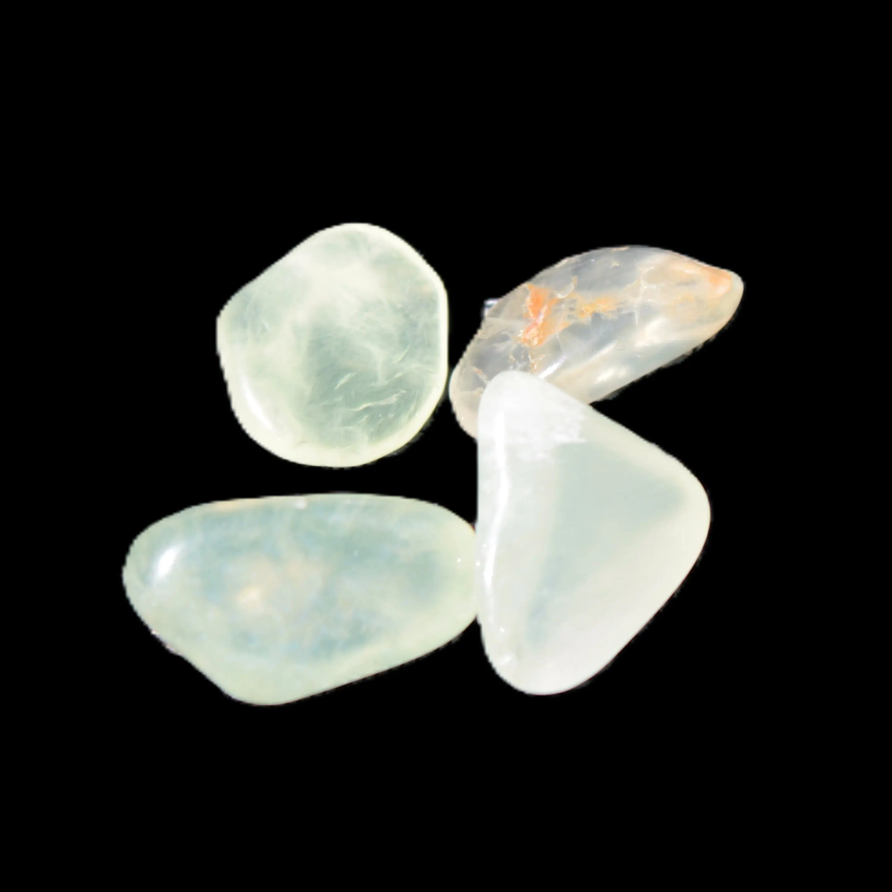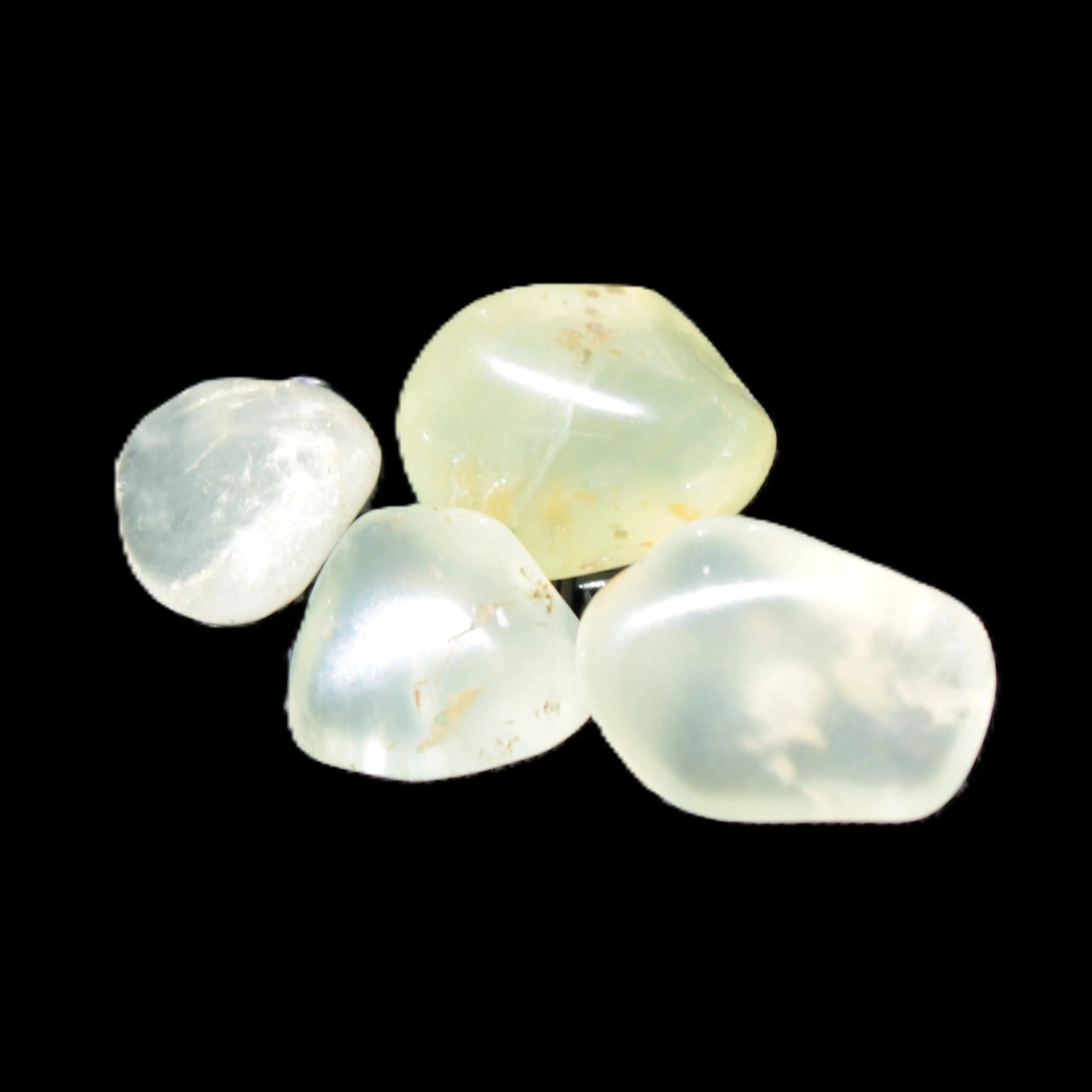 This Golden Prehnite 3/4 crystals selection weighs 5-6g. Prehnite is a calcium aluminium silicate hydroxide. It usually forms in massive, botryoidal, granular or stalactite habits. It also rarely forms as prismatic, pyramidal or tabular crystals. Prehnite commonly occurs with intergrowths of Epidote. Prehnite it translucent to transparent with a vitreous, waxy or pearly lustre. Its usual colour is green or yellow. Prehnite is a crystal of unconditional love, with a link also to our personal will through the Solar Plexus Chakra.