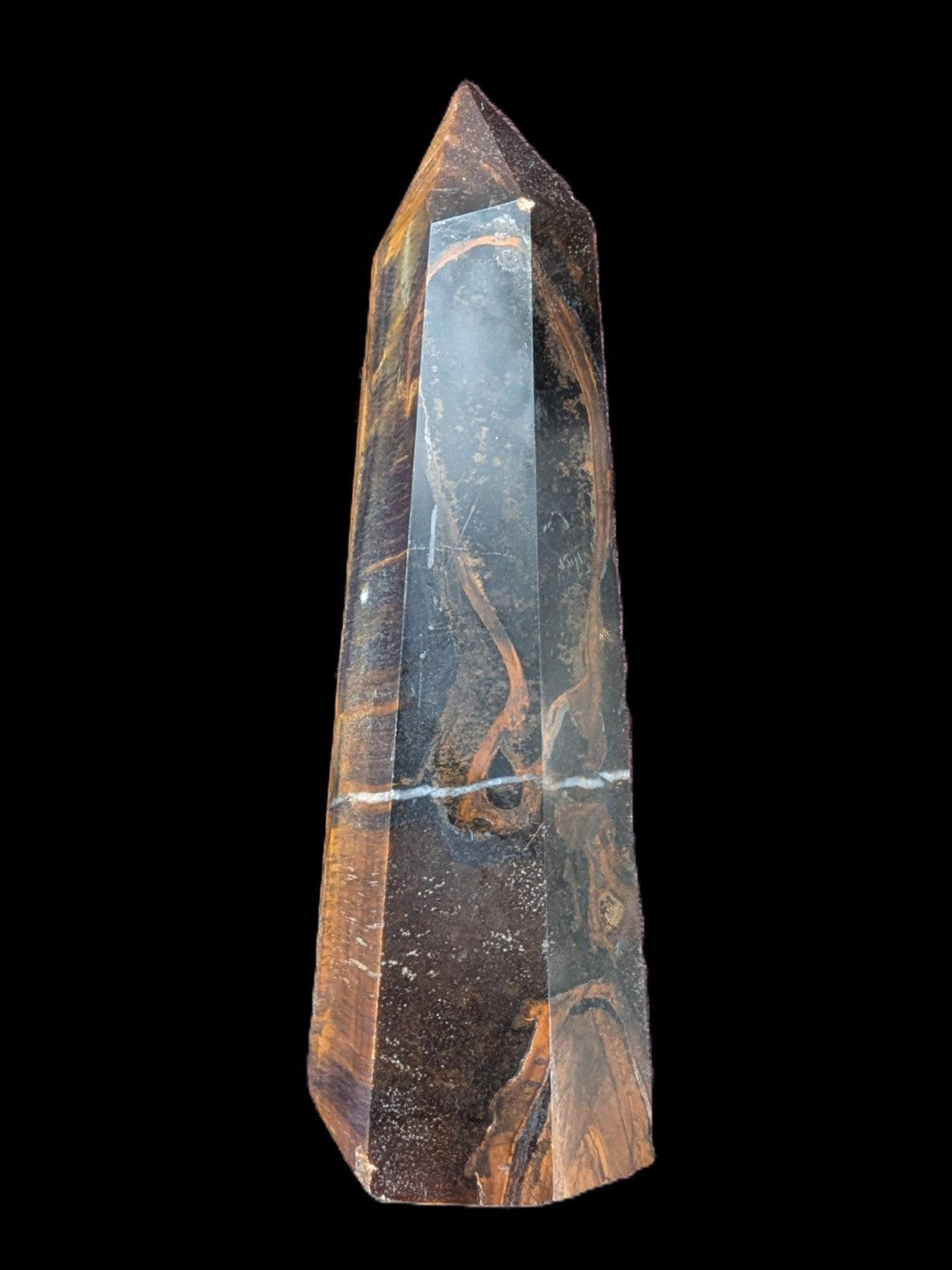 This Golden with Blue Tigers Eye obelisk weighs 290g. Blue Tigers Eye is a soothing stone that helps to reduce stress and ease anxiety through its calming energies. Blue Tigers Eye’s silky shimmering is useful for illuminating aspects of your situation that might otherwise have been difficult to see.