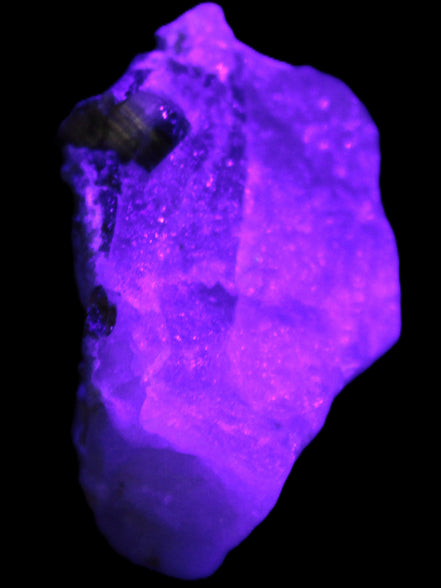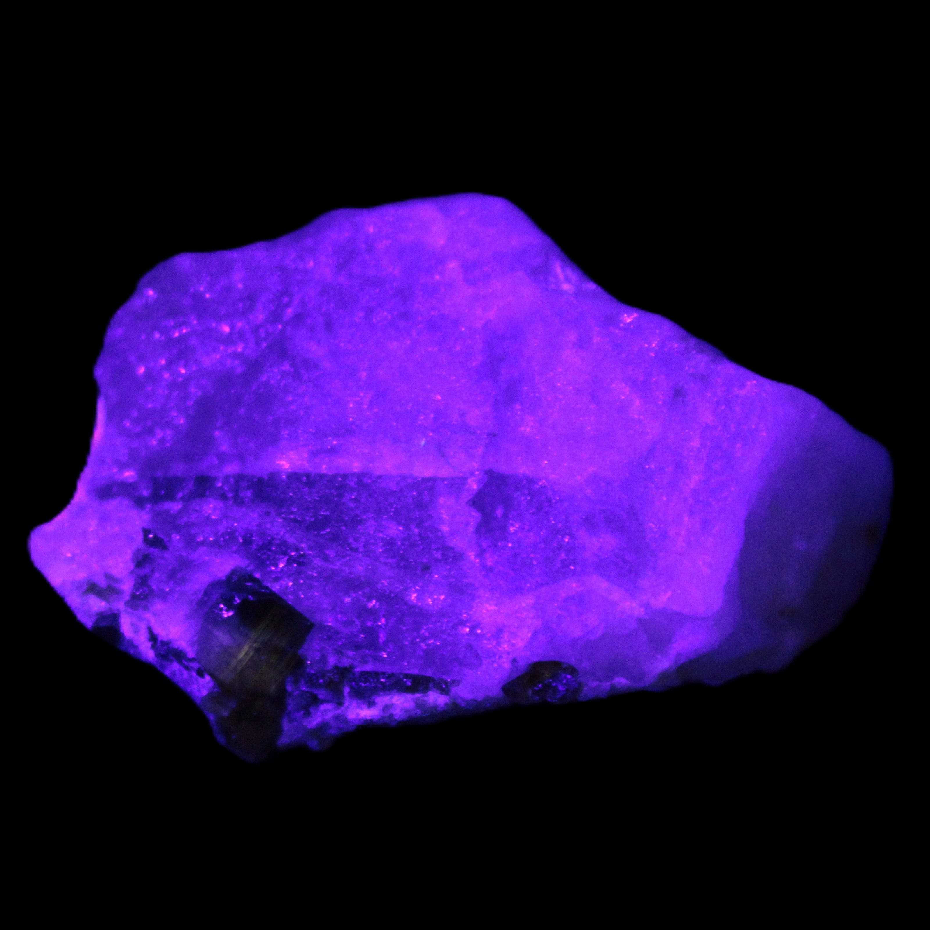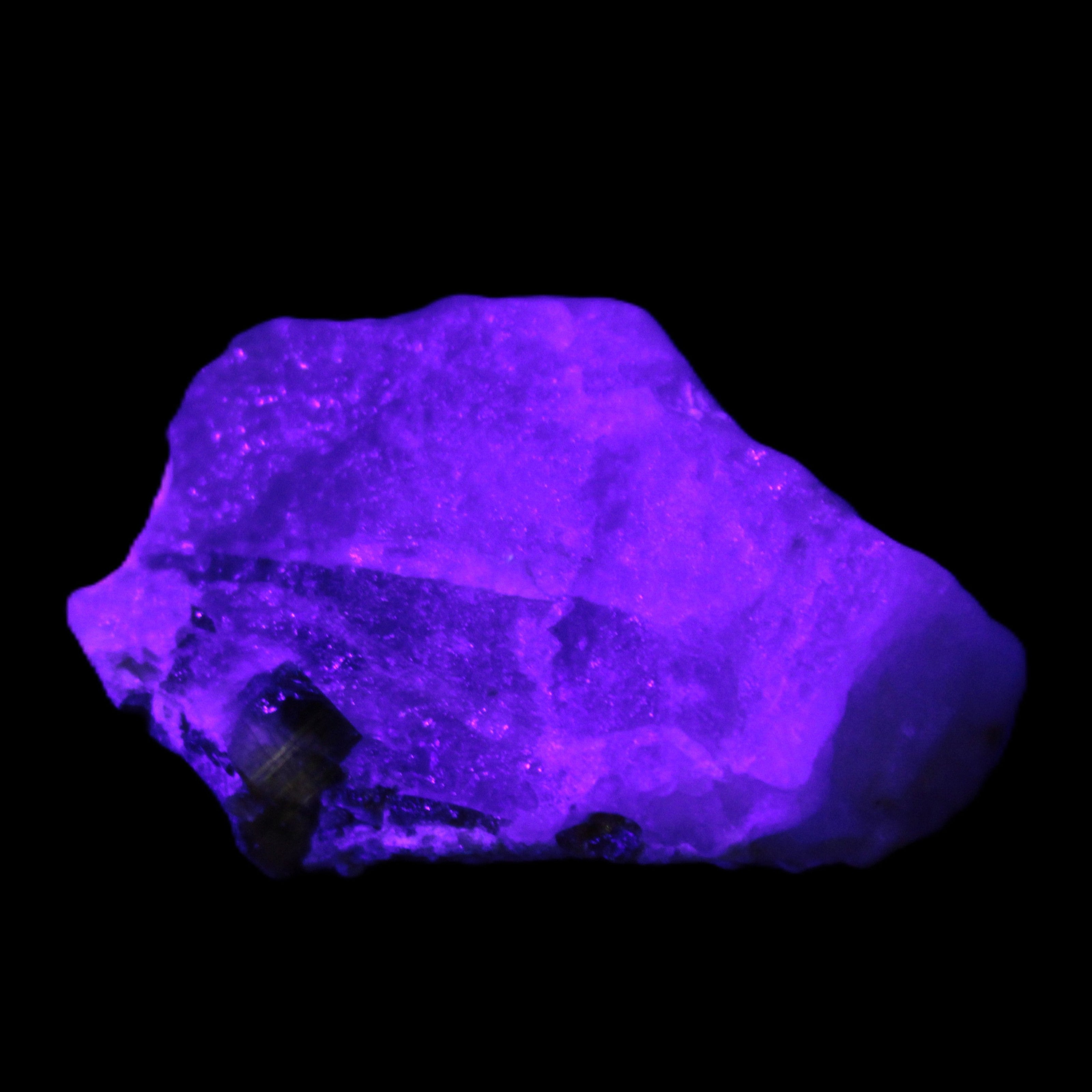 Blue, Green and Pink Tourmalines are striking members of the Elbaite mineral family. Elbaite is an igneous mineral that almost always forms in granite pegmatites. It is a complex lithium-rich borosilicate mineral. Elbaite can be any colour of the rainbow, and crystals can be multi-coloured. Black is rare. Elbaite usually forms as heavily-striated elongated rods or prismatic crystals. Blue and Green Elbaite crystals are often pleochroic, which means that the crystal appears darker in colour when viewed along its vertical axis, compared to viewing along its horizontal axis. Elbaite is UV reactive.