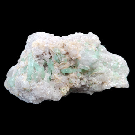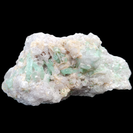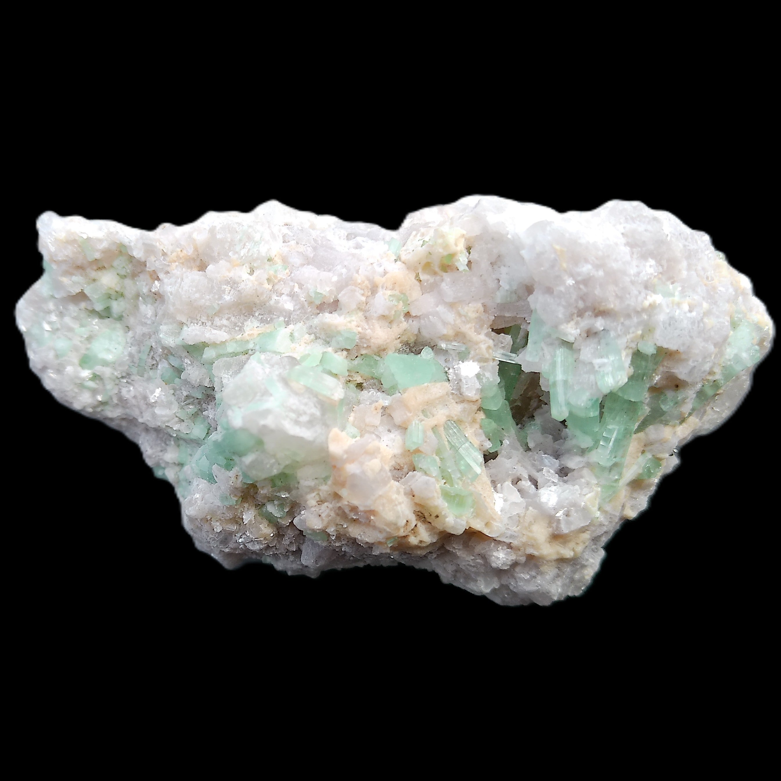 Green Tourmaline is a beautiful complex lithium-rich borosilicate mineral. Elbaite usually forms as elongated rods or prismatic crystals that are heavily striated. Green (and blue) Elbaite crystals are often pleochroic, which means that the crystal appears darker in colour when viewed along its vertical axis, compared to viewing along its horizontal axis. Elbaite is an igneous mineral that almost always forms in granite pegmatites.