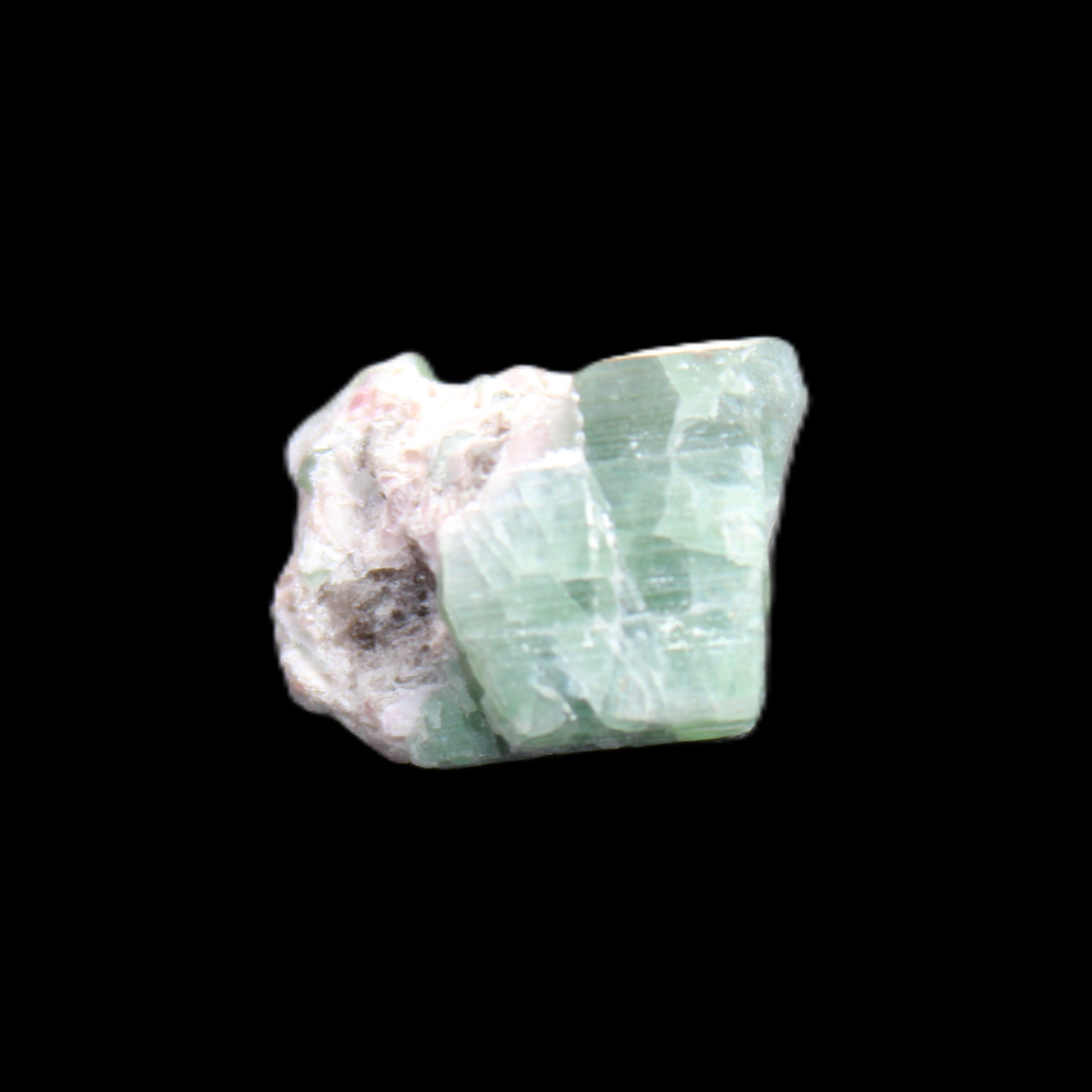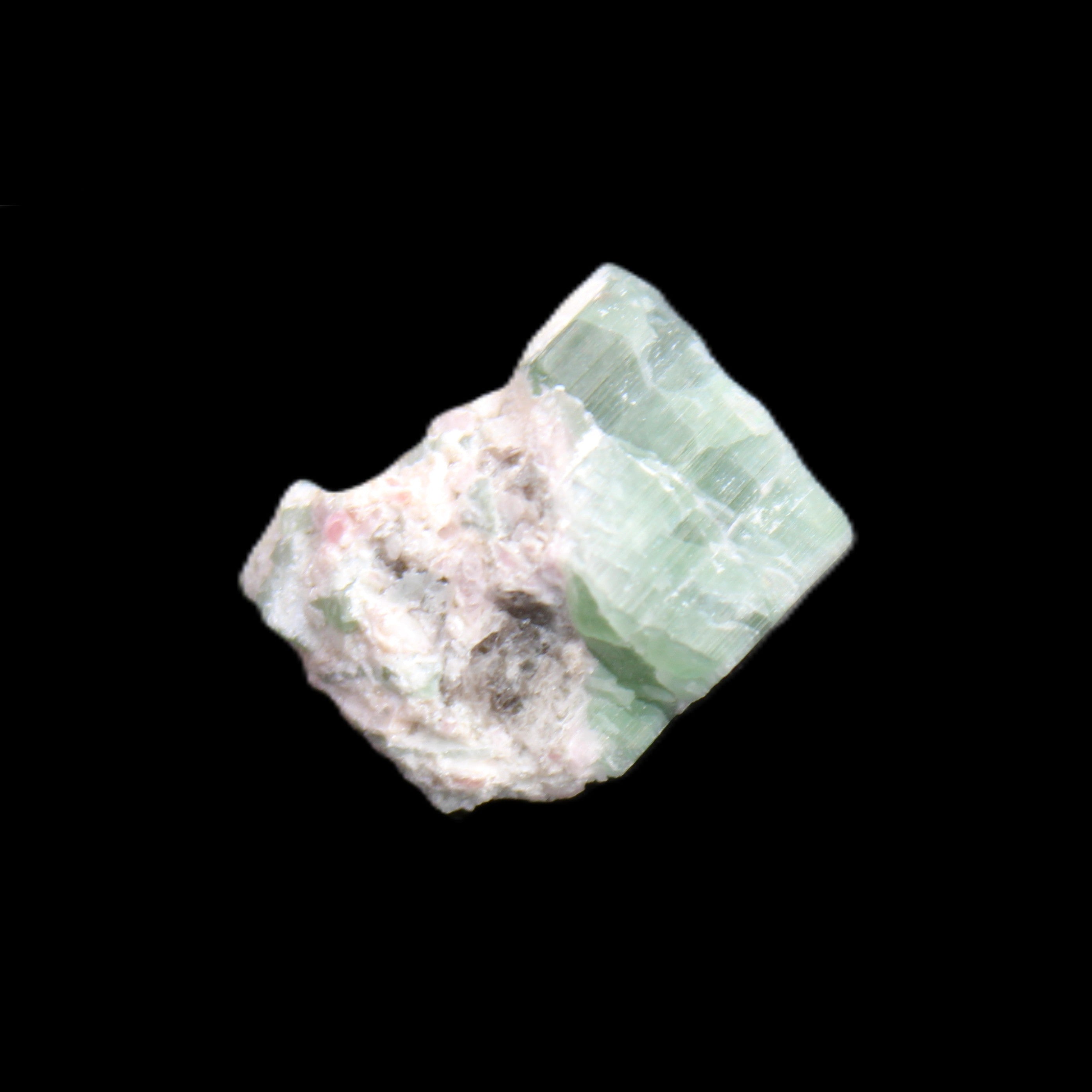 Blue, Green and Pink Tourmalines are striking members of the Elbaite mineral family. Elbaite is an igneous mineral that almost always forms in granite pegmatites. It is a complex lithium-rich borosilicate mineral. Elbaite can be any colour of the rainbow, and crystals can be multi-coloured. Black is rare. Elbaite usually forms as heavily-striated elongated rods or prismatic crystals. Blue and Green Elbaite crystals are often pleochroic, which means that the crystal appears darker in colour when viewed along its vertical axis, compared to viewing along its horizontal axis. Elbaite is UV reactive.