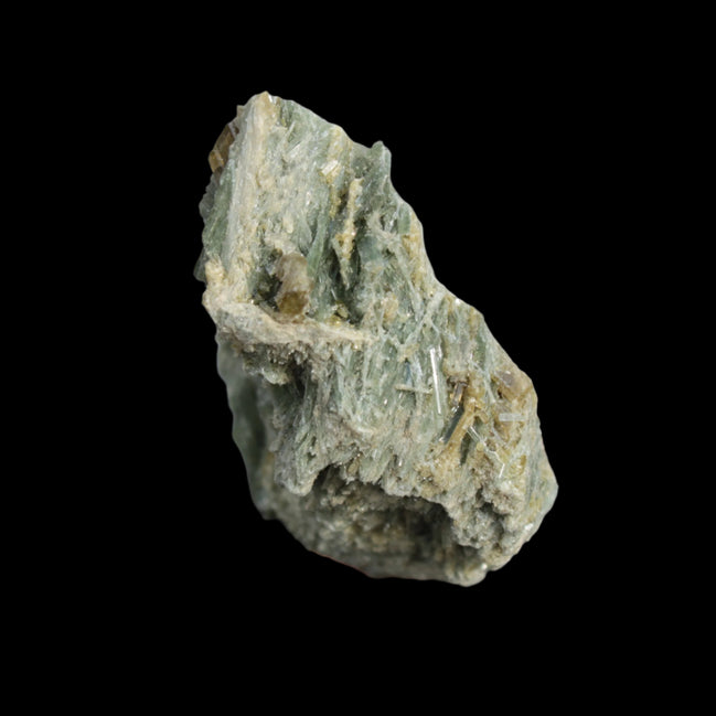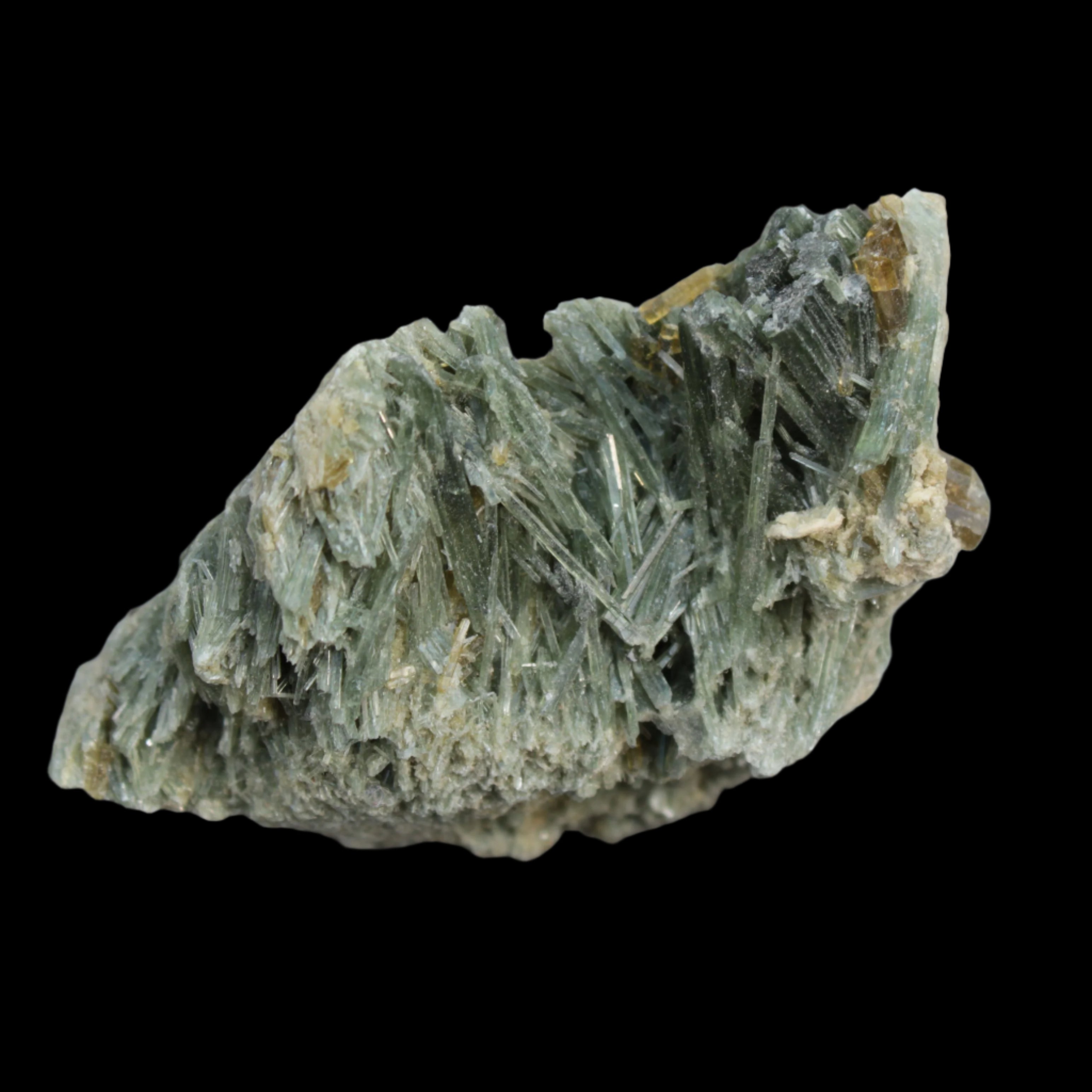 This Green and Yellow Needle Tourmaline from Skardu, Pakistan weighs 150.3ct or 30.0g. Green Tourmaline is a complex lithium rich borosilicate mineral and member of the Tourmaline family. It crystallizes in the form of elongated rods or triangular and pyramidal crystals. It is usually associated with Quartz. Green Tourmaline is a powerful heart-activation stone. It brings invigorating energy of growth and expansion to the emotional body. The resonance of Green Tourmaline aligns with the heart chakra, helping to calm the nervous system and emotions.