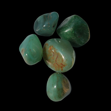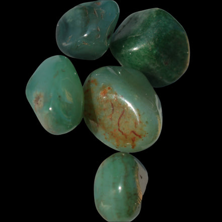 These Green Aventurine 5 tumble stones selections weigh 19g. Aventurine is a form of translucent quartz with platy mineral inclusions that give a shimmering effect. Chrome-bearing fuchsite (a muscovite mica) is the main inclusion, giving the stone its silvery-green or blue glistening.