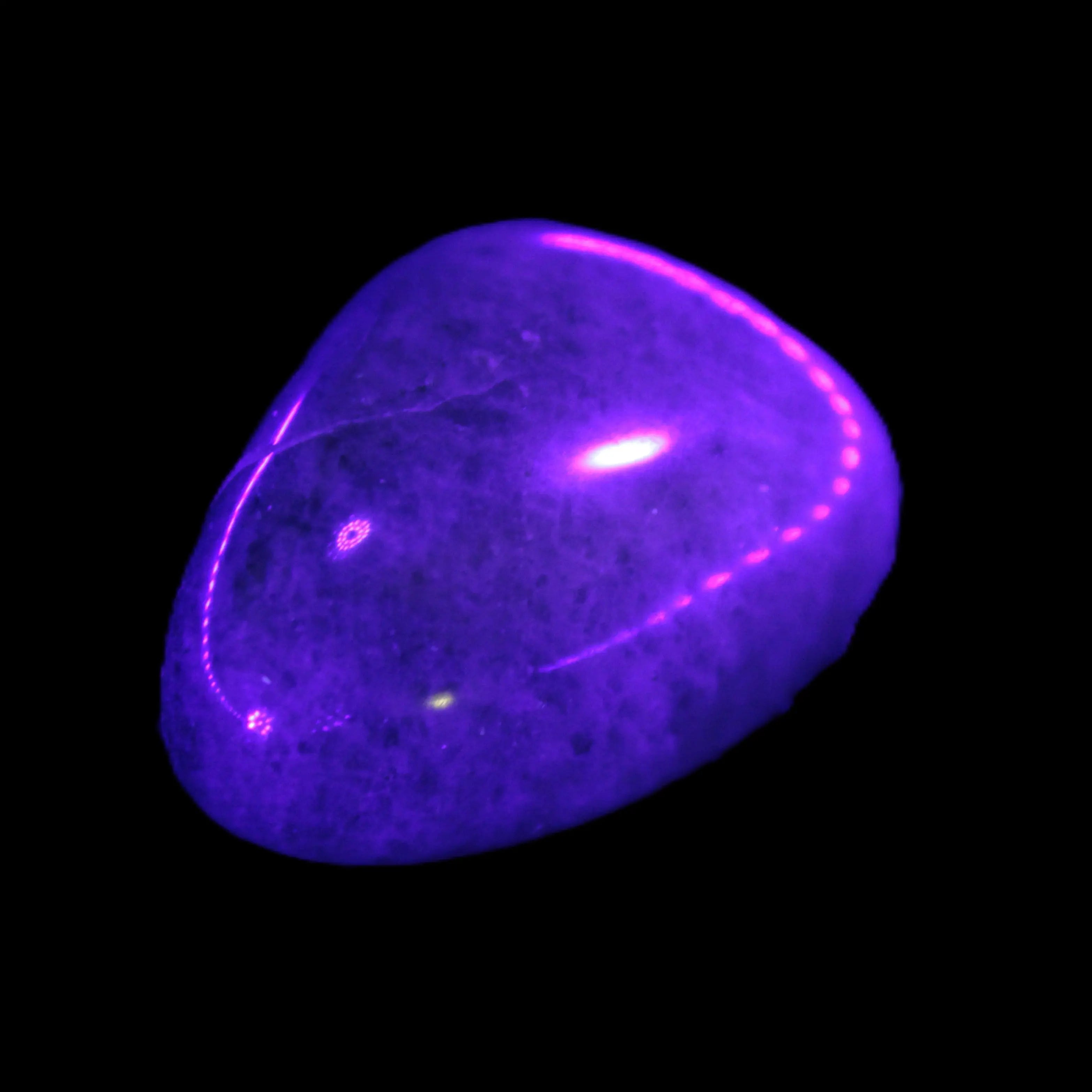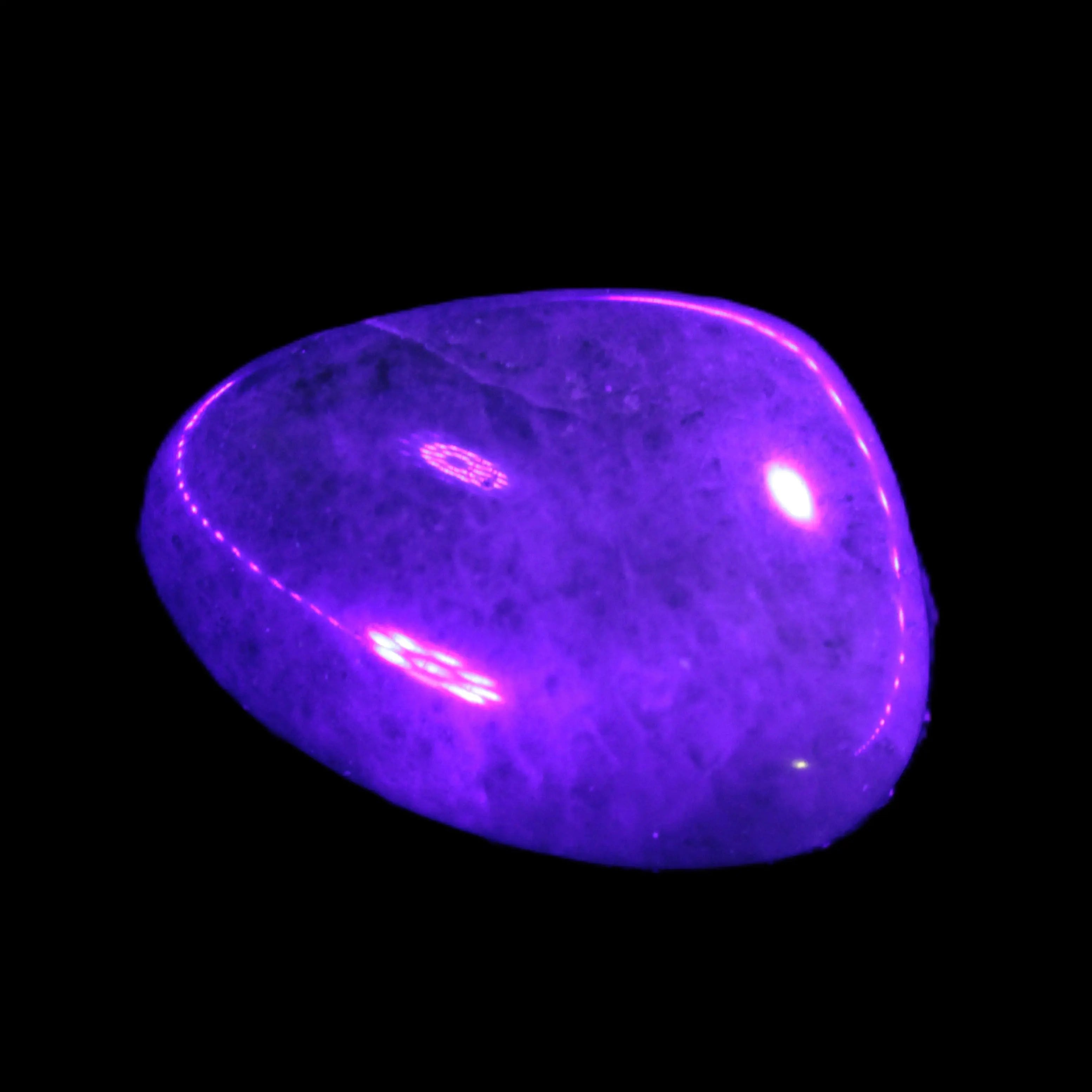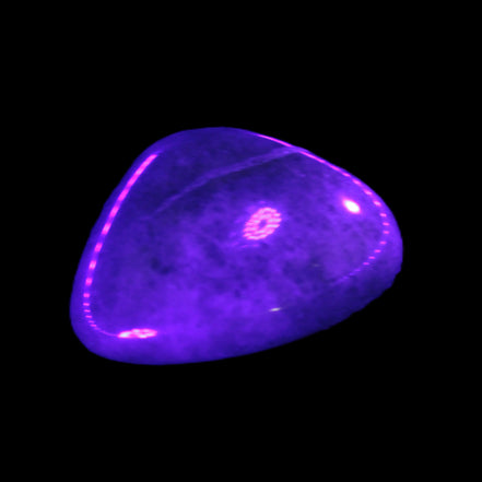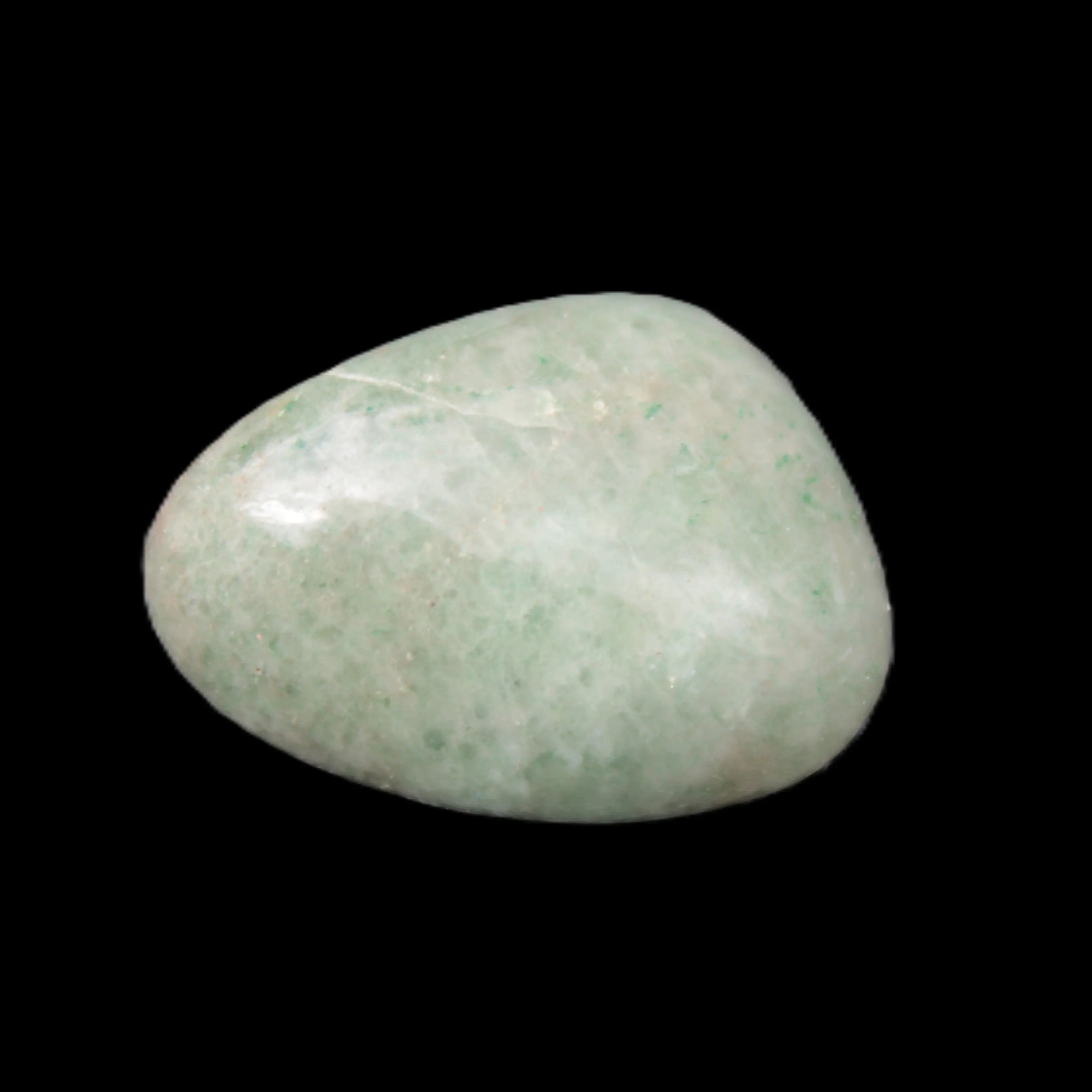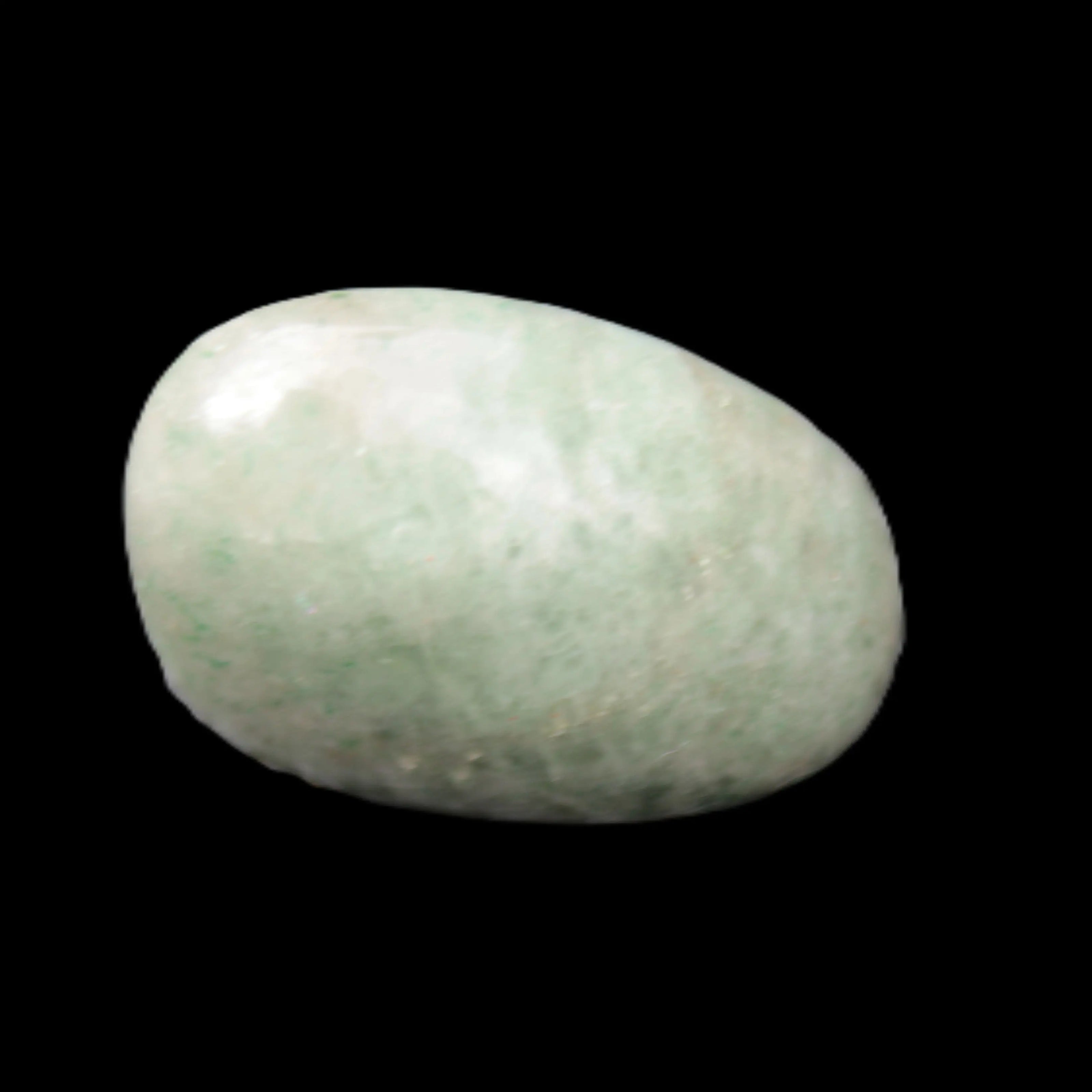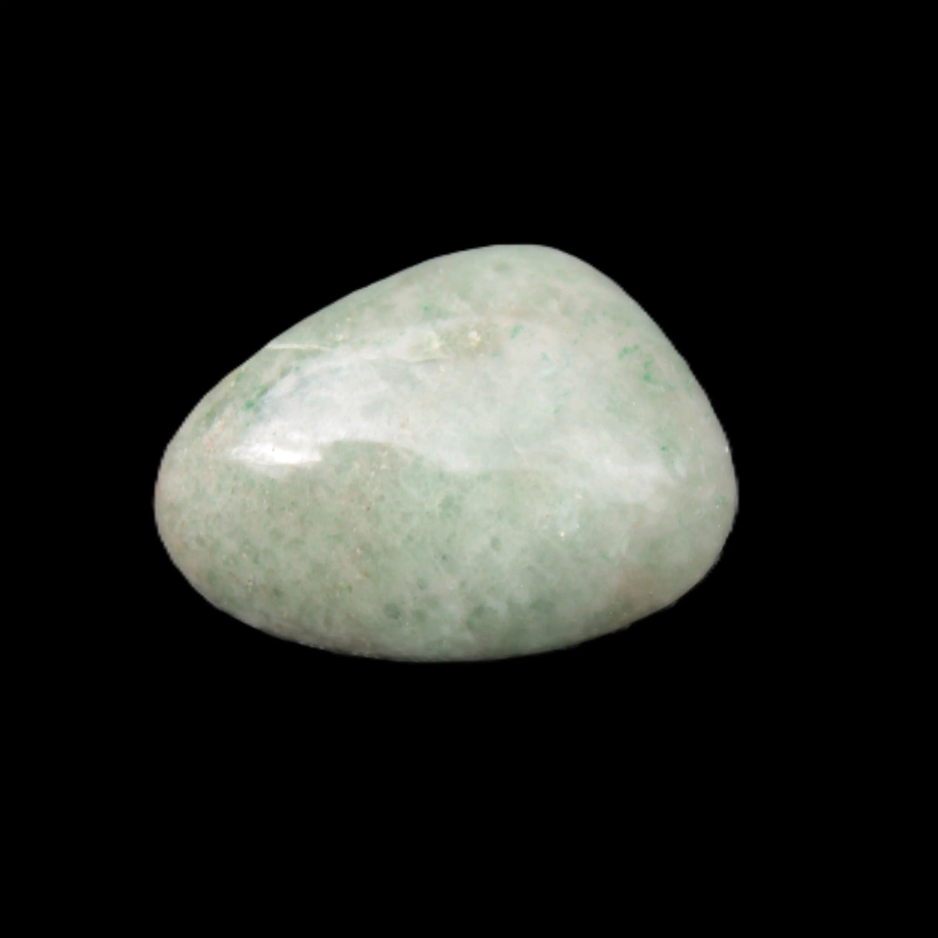 This Green Aventurine tumble stone weighs 11g.  It is a form of translucent quartz with platy mineral inclusions that give a shimmering effect. Chrome-bearing fuchsite (a muscovite mica) is the main inclusion, giving the stone its silvery-green or blue glistening. It is UV reactive
