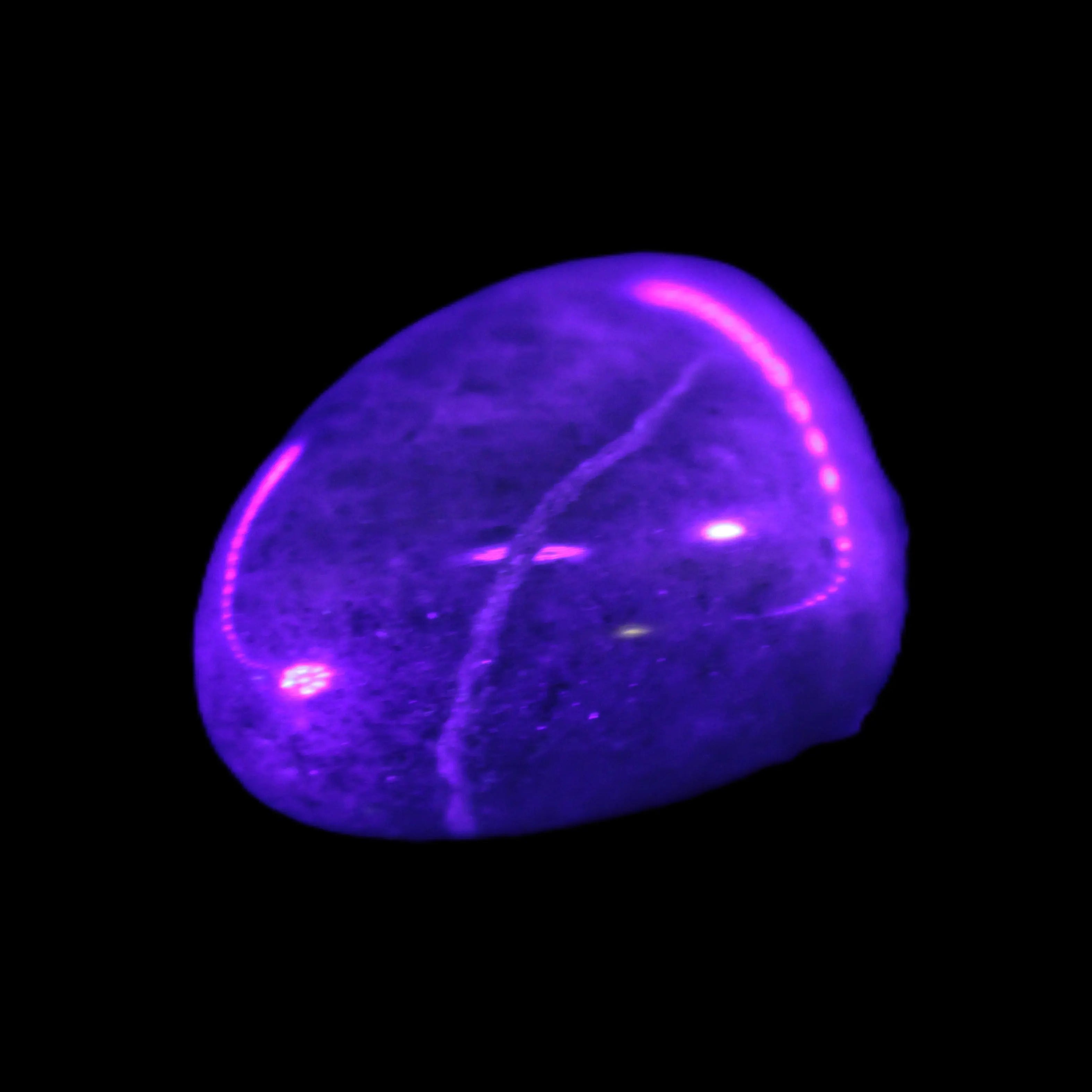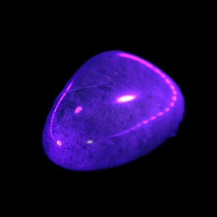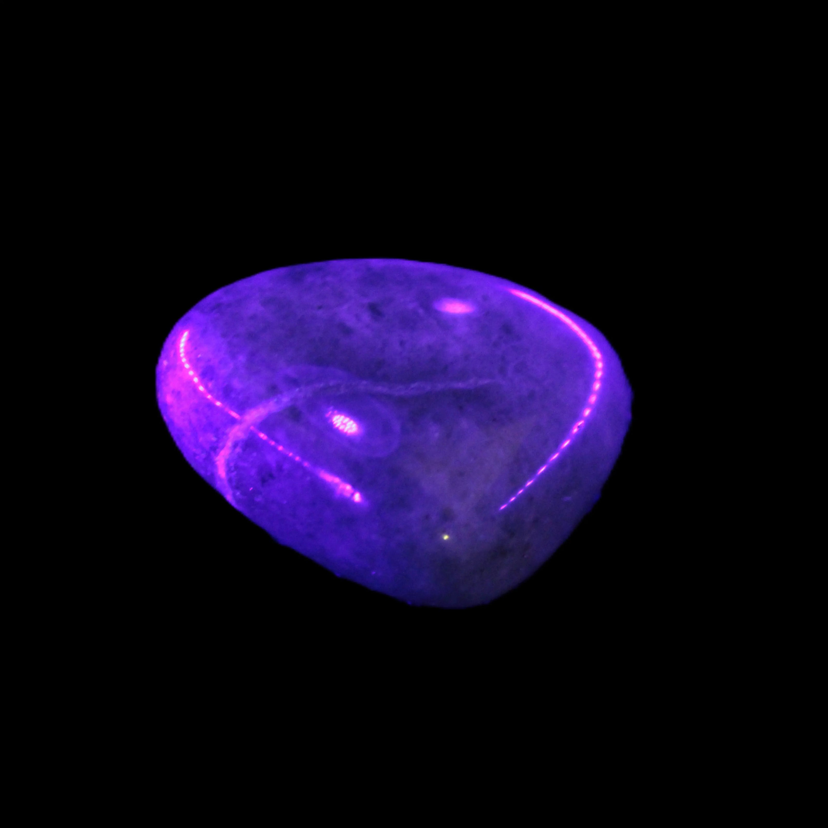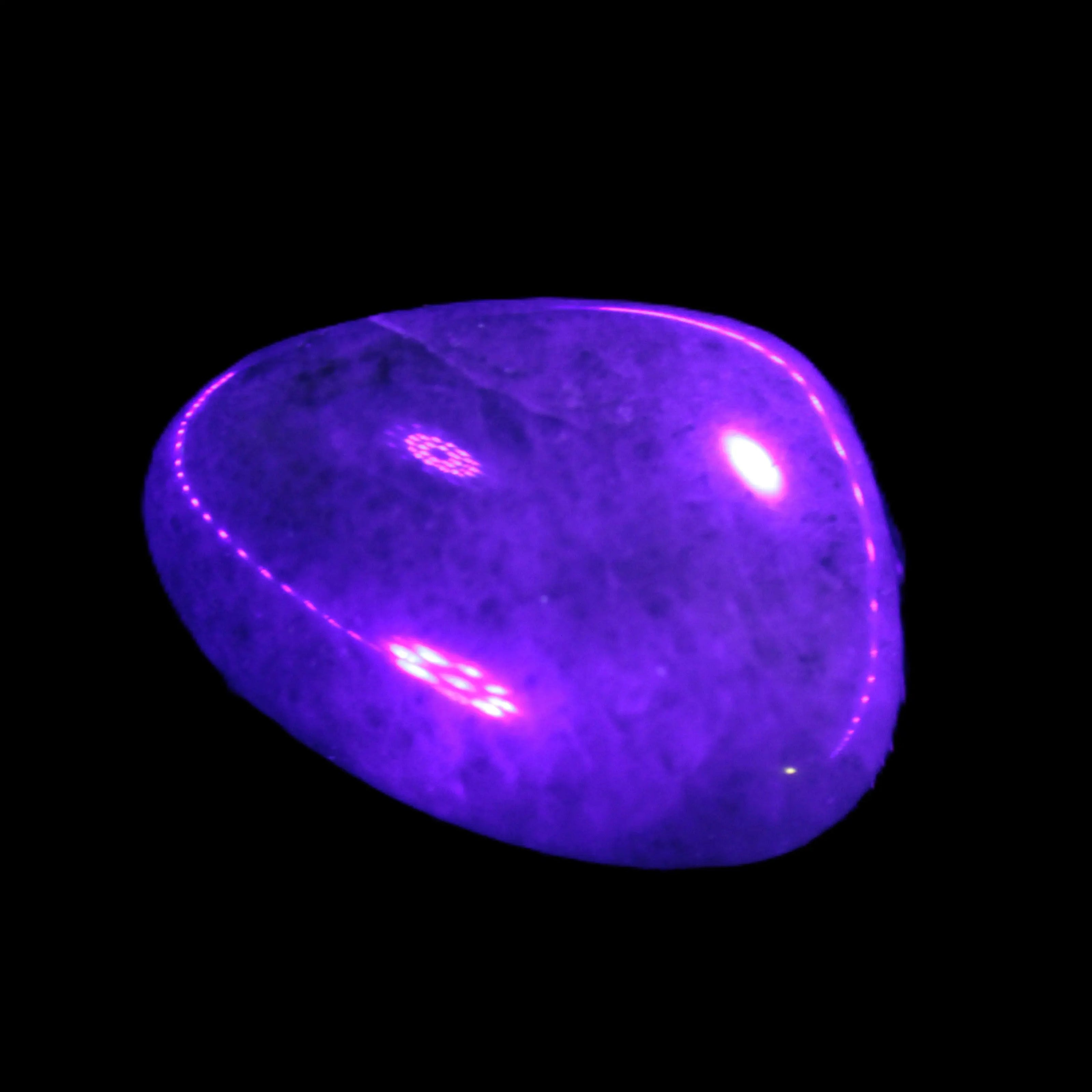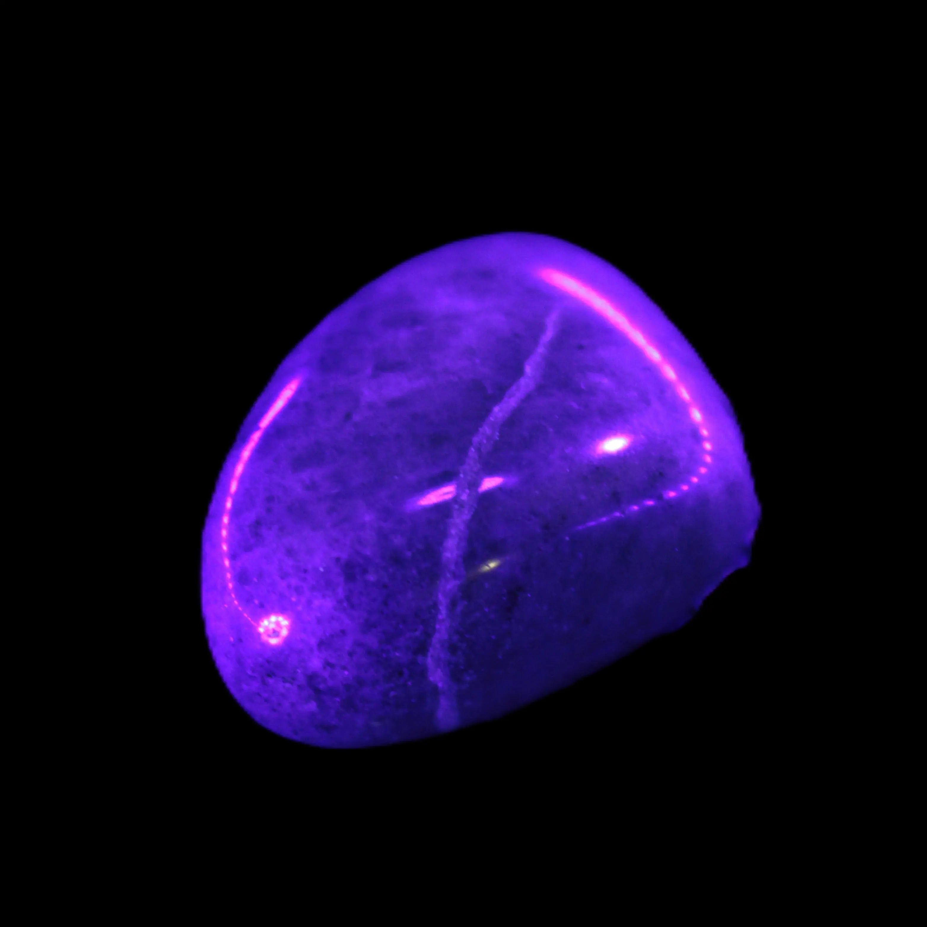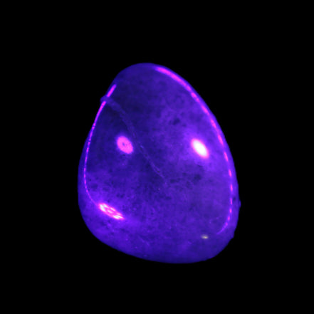 This Green Aventurine tumble stone weighs 11g.  It is a form of translucent quartz with platy mineral inclusions that give a shimmering effect. Chrome-bearing fuchsite (a muscovite mica) is the main inclusion, giving the stone its silvery-green or blue glistening. It is UV reactive