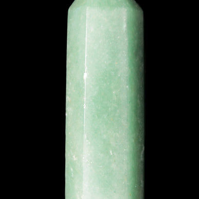 This Green Aventurine wand 85mm weighs 87g.  It is a form of translucent quartz with platy mineral inclusions that give a shimmering effect. Chrome-bearing fuchsite (a muscovite mica) is the main inclusion, giving the stone its silvery-green or blue glistening. It is UV reactive