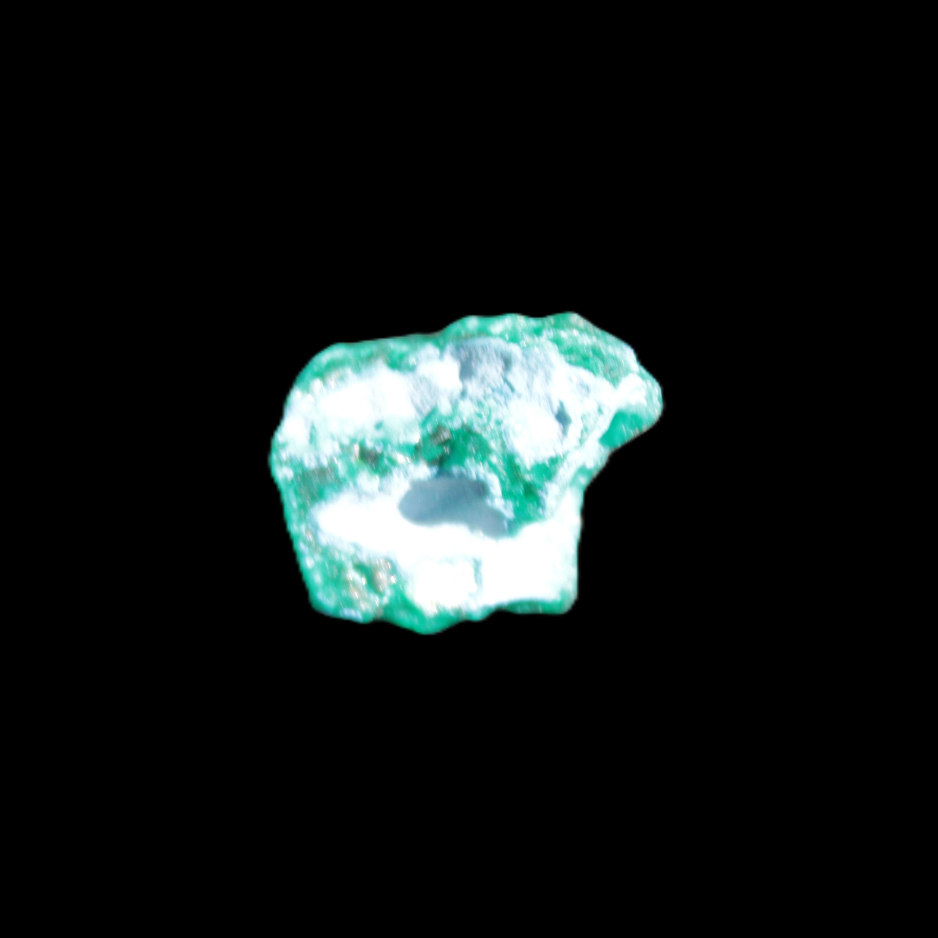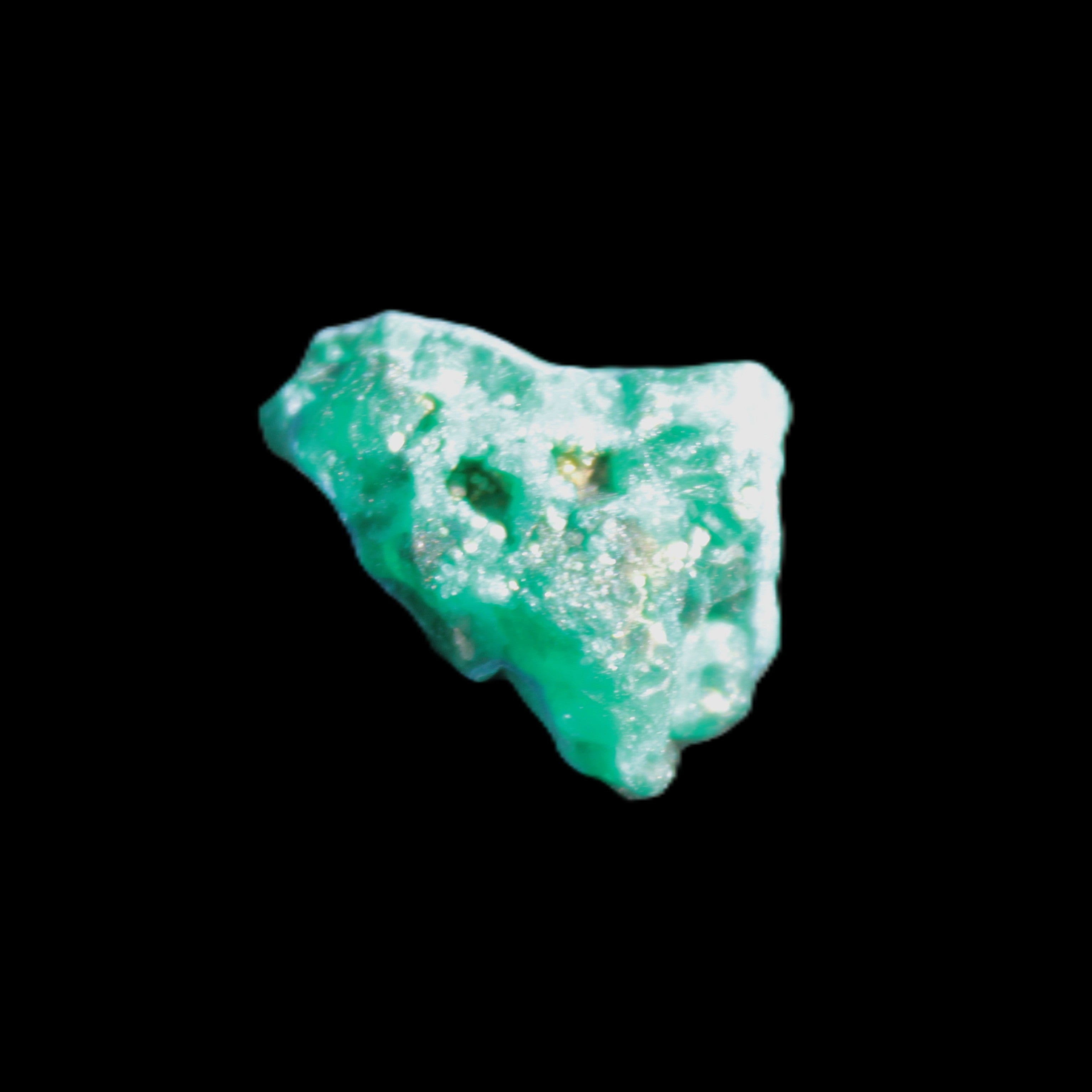 This Green Dioptase specimen from the Congo weighs 5.3g. Dioptase is an intense emerald-green to bluish-green mineral that is a rare cyclosilicate of copper. Dioptase is transparent to translucent. This specimen needs to be handled with care as Dioptase is very fragile.