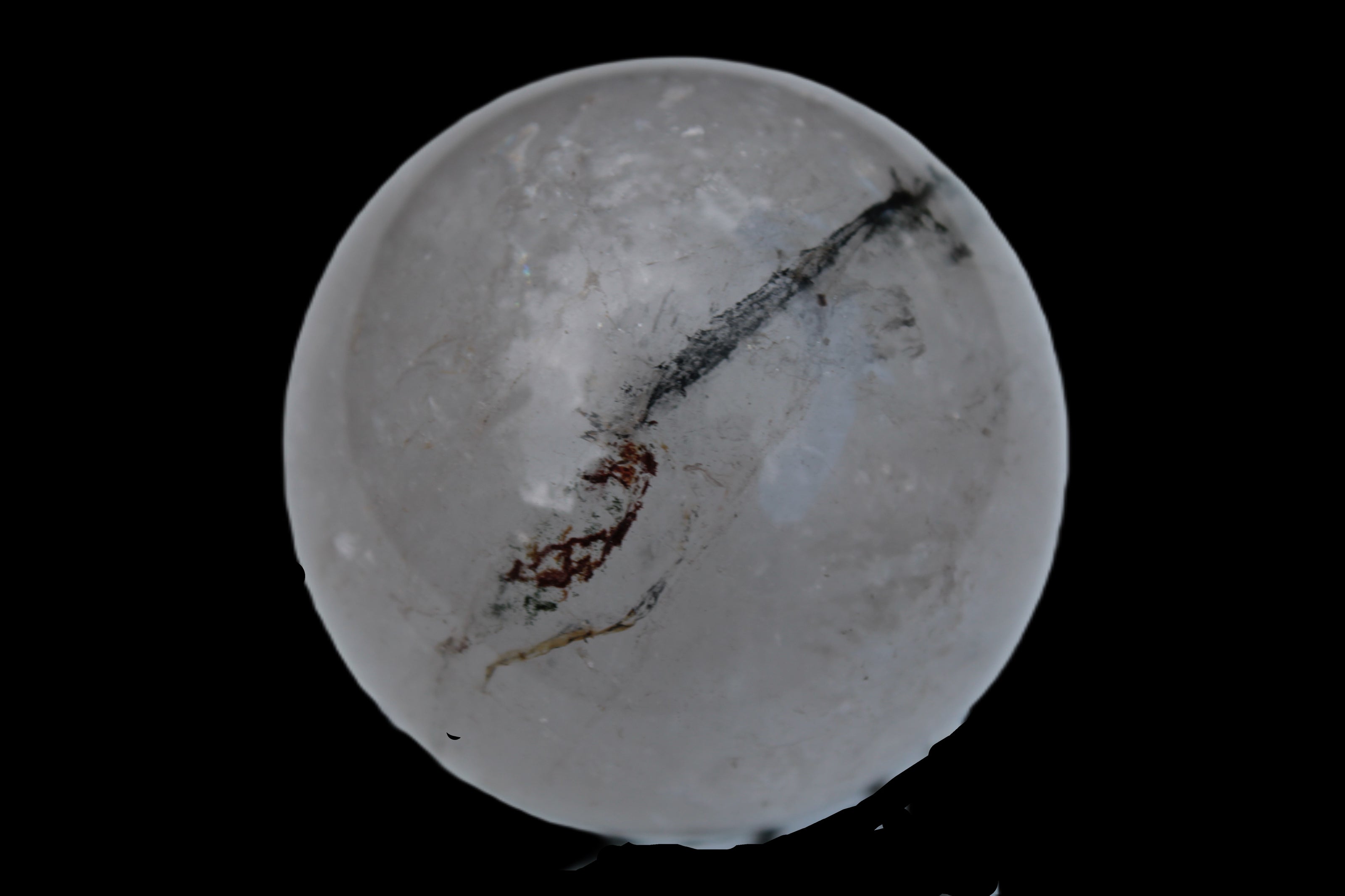 This item is a Green Ghost Garden Quartz sphere. It weighs 230g and is 55mm in diameter.