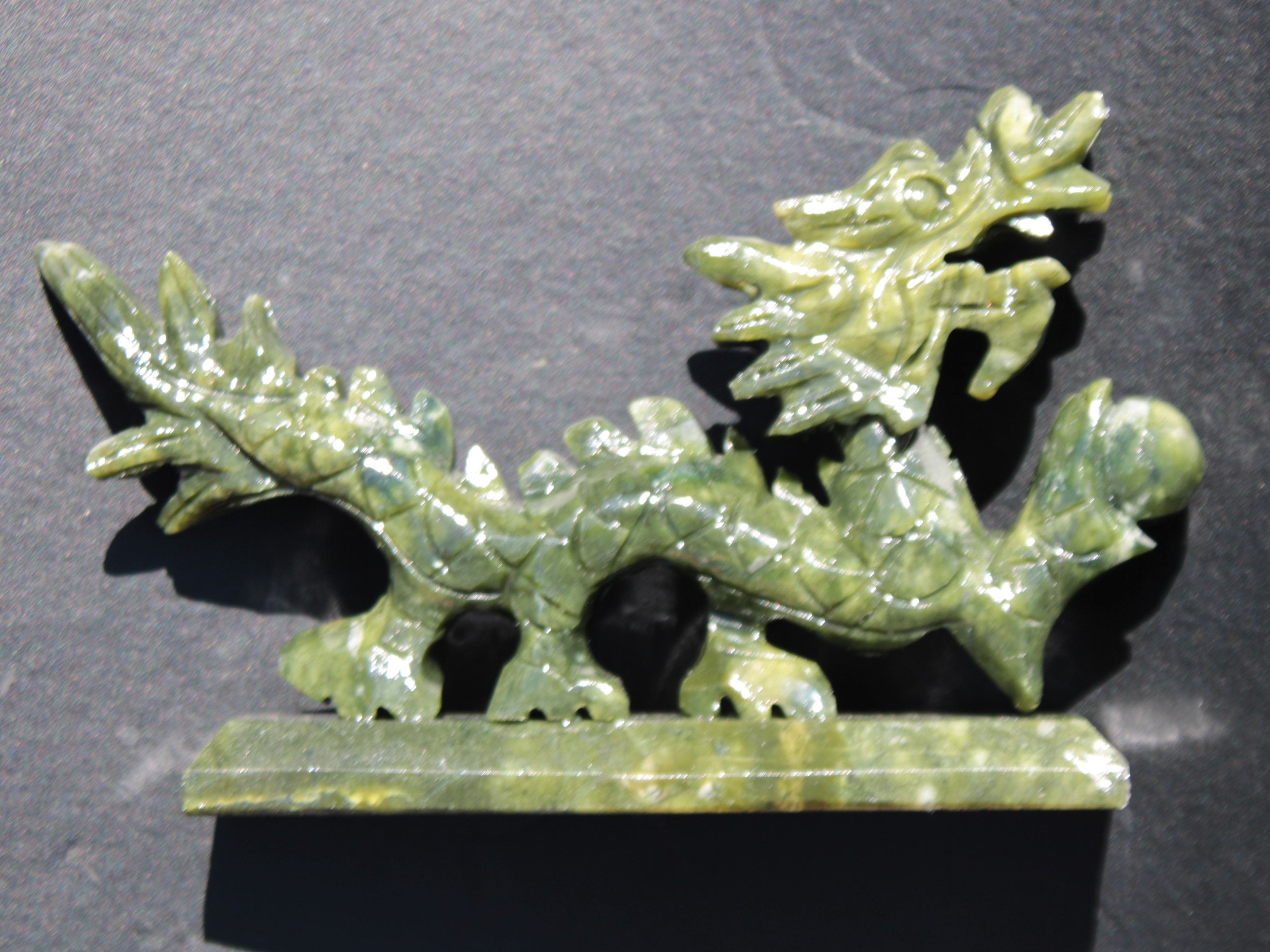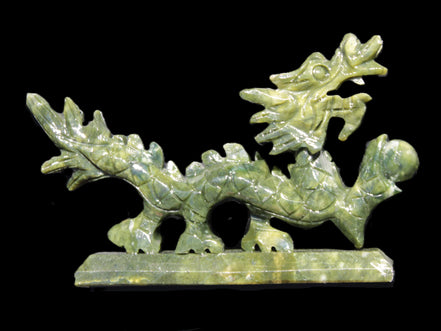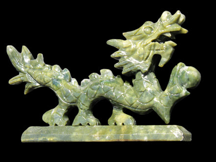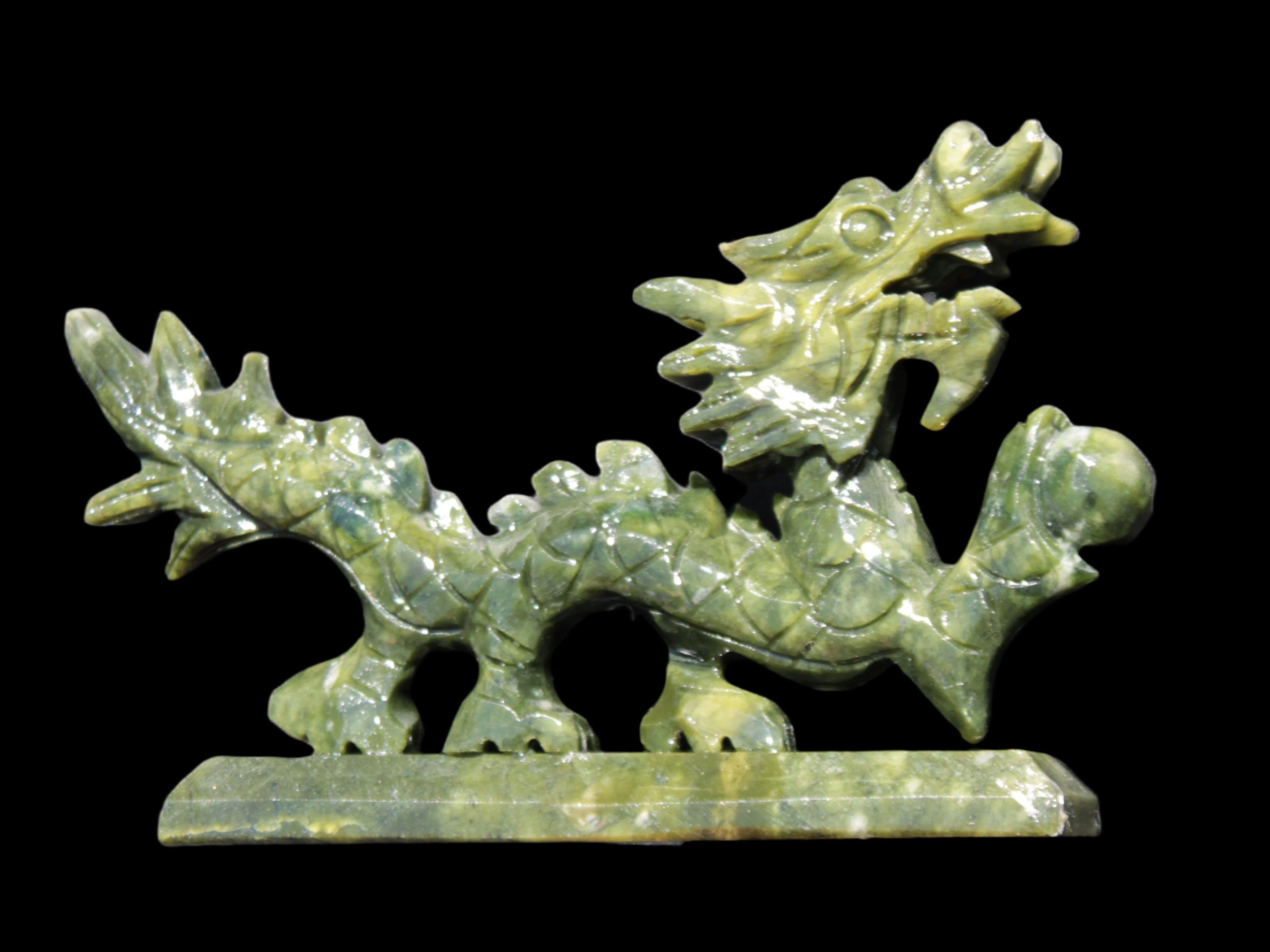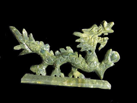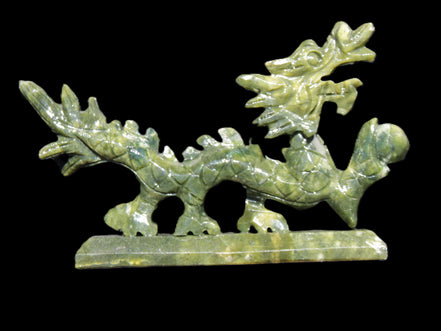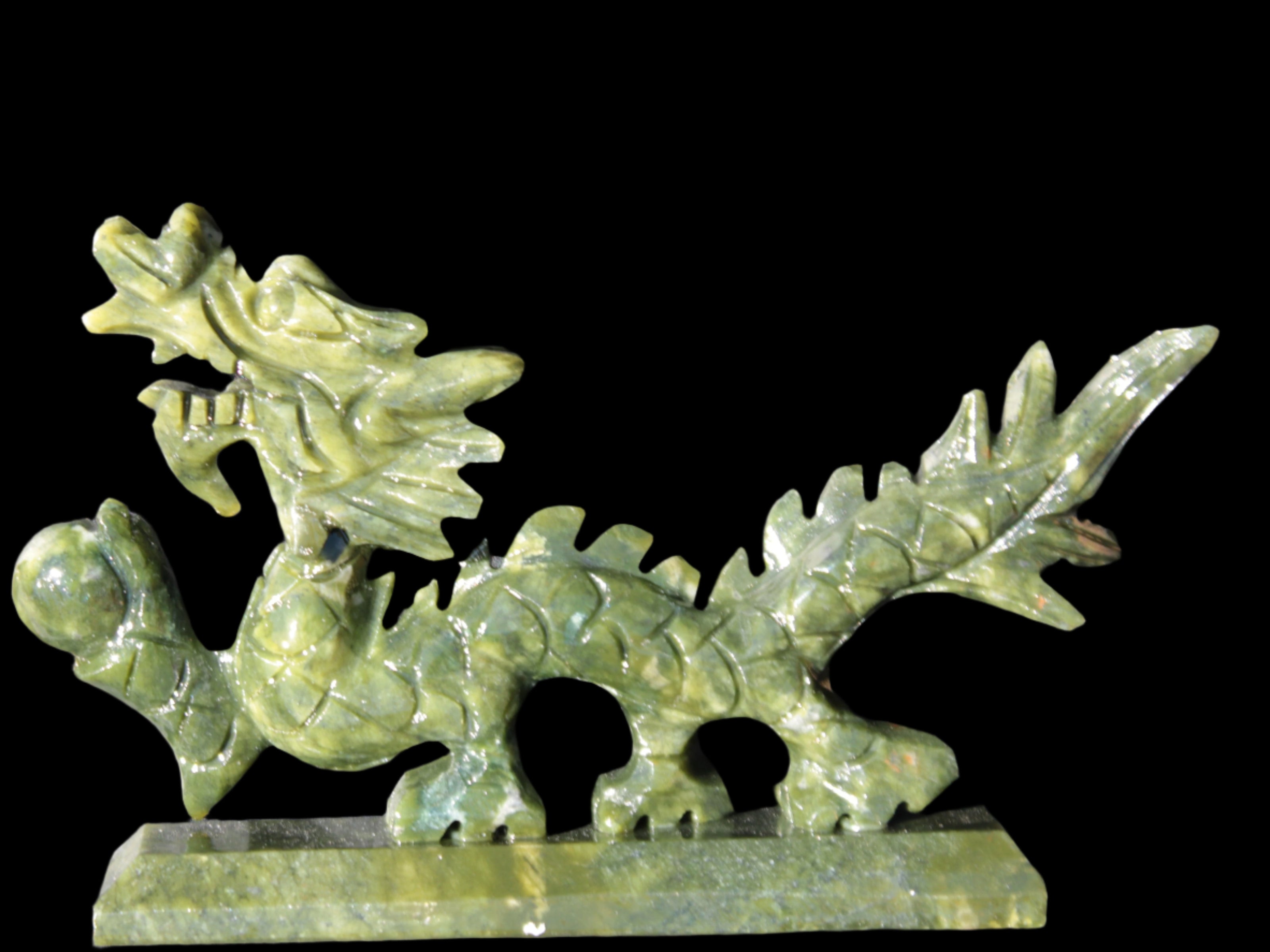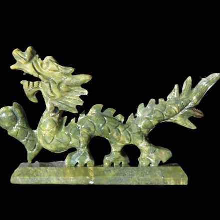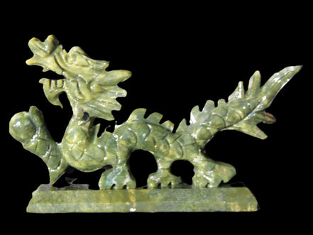 This large Green Jade dragon 200*28*118mm weighs 670g. Its base measures 37*15*136mm giving it good stability, so it won't fall over easily. The dragon is a symbol of power, change, and spirituality. The dragon also represents good luck, fortune, and prosperity. This complements the stone it is carved from. Jade is a traditional good luck stone, bringing wealth and abundance.
