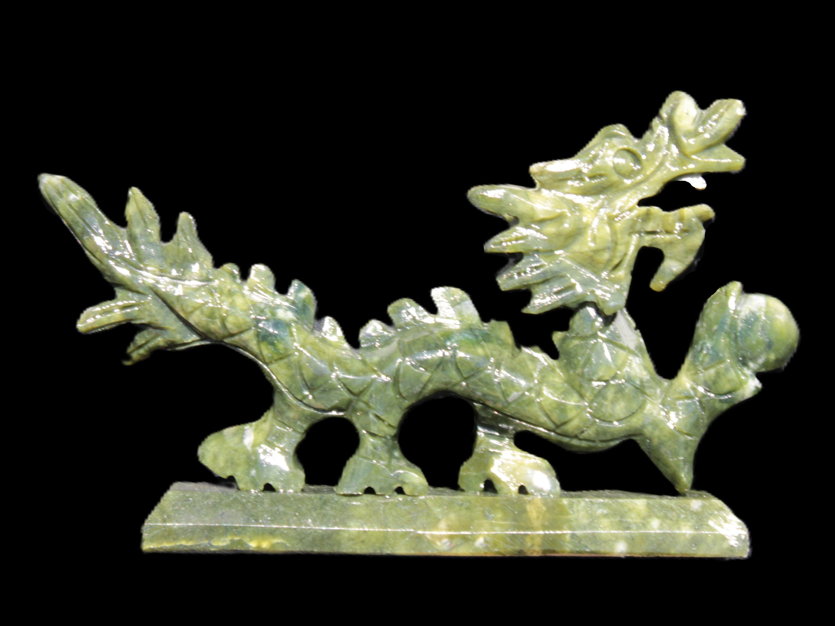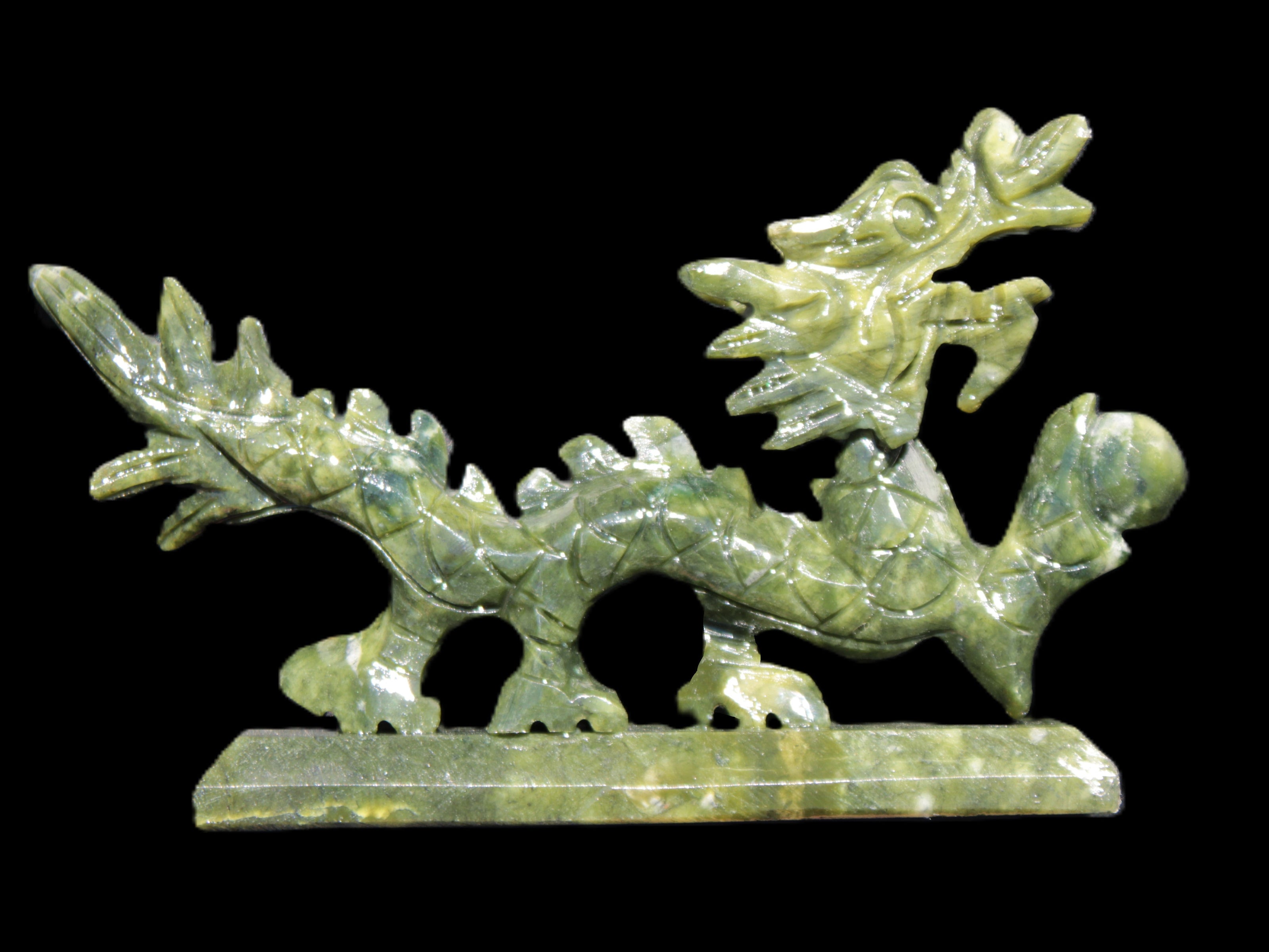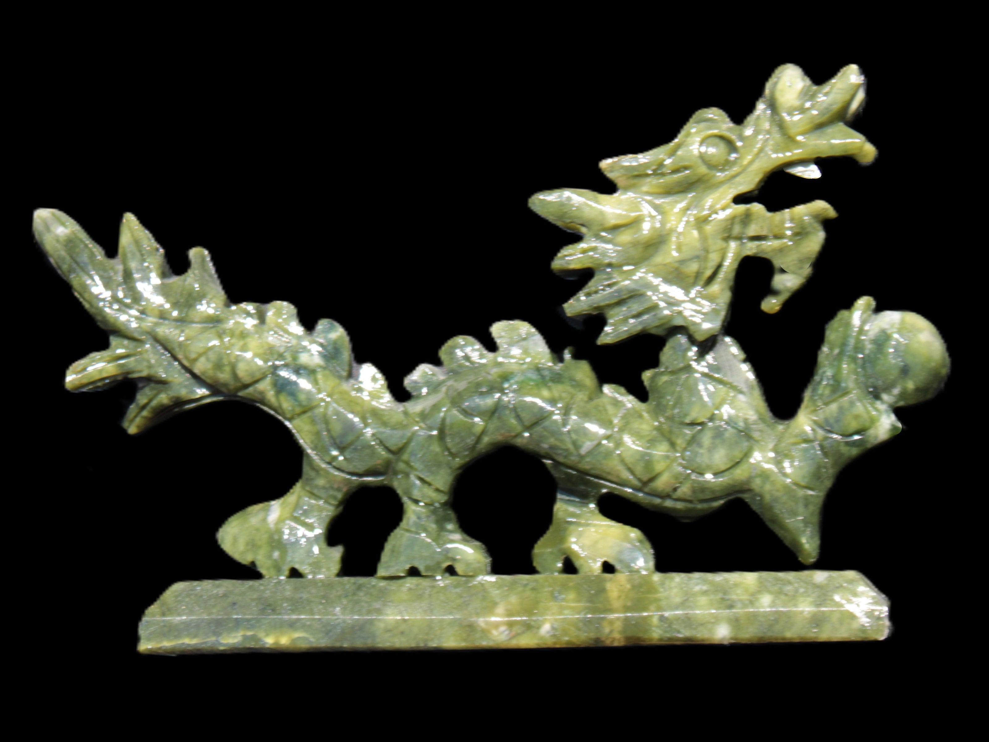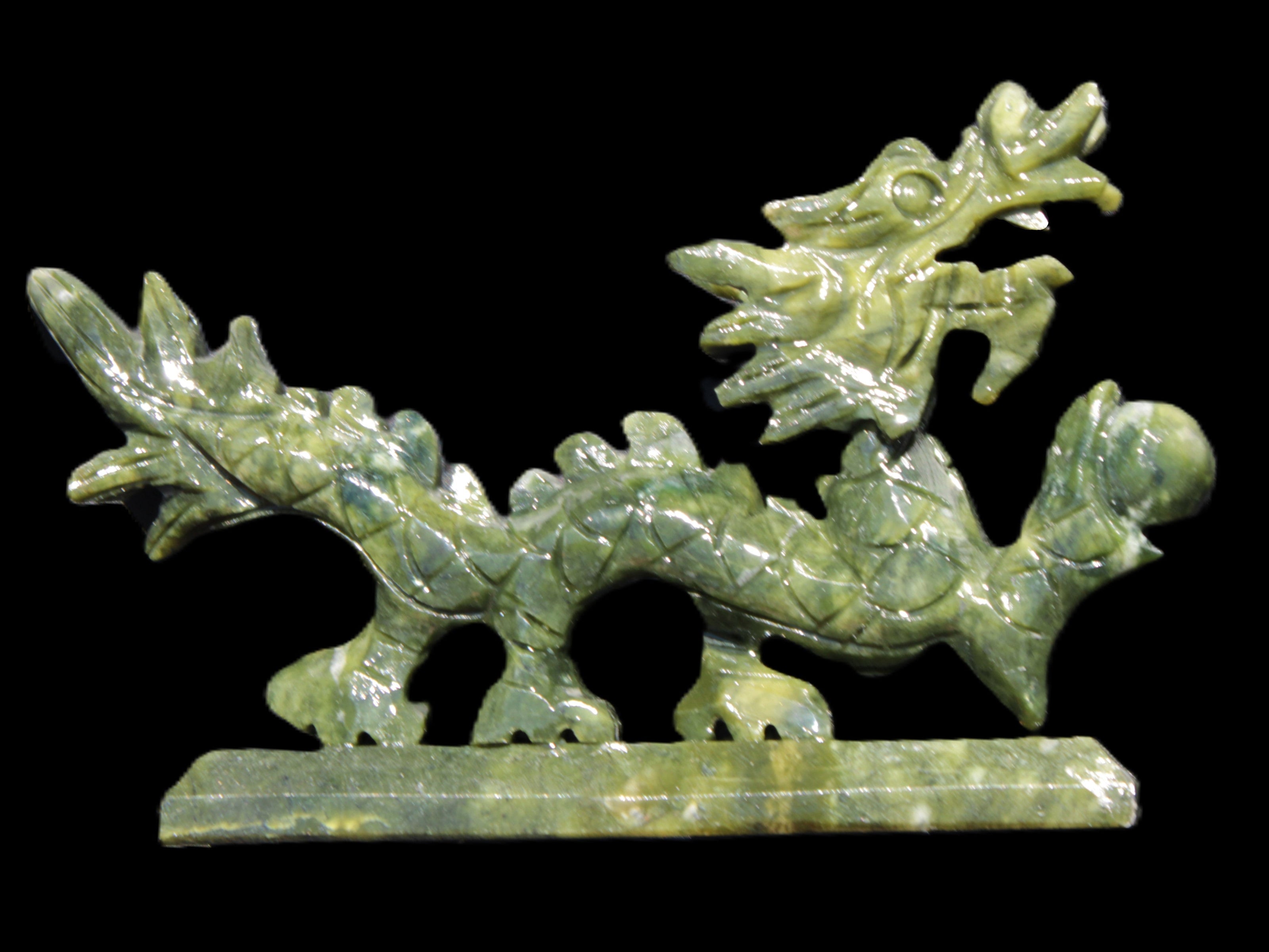 This large Green Jade dragon 200*28*118mm weighs 670g. Its base measures 37*15*136mm giving it good stability, so it won't fall over easily. The dragon is a symbol of power, change, and spirituality. The dragon also represents good luck, fortune, and prosperity. This complements the stone it is carved from. Jade is a traditional good luck stone, bringing wealth and abundance.