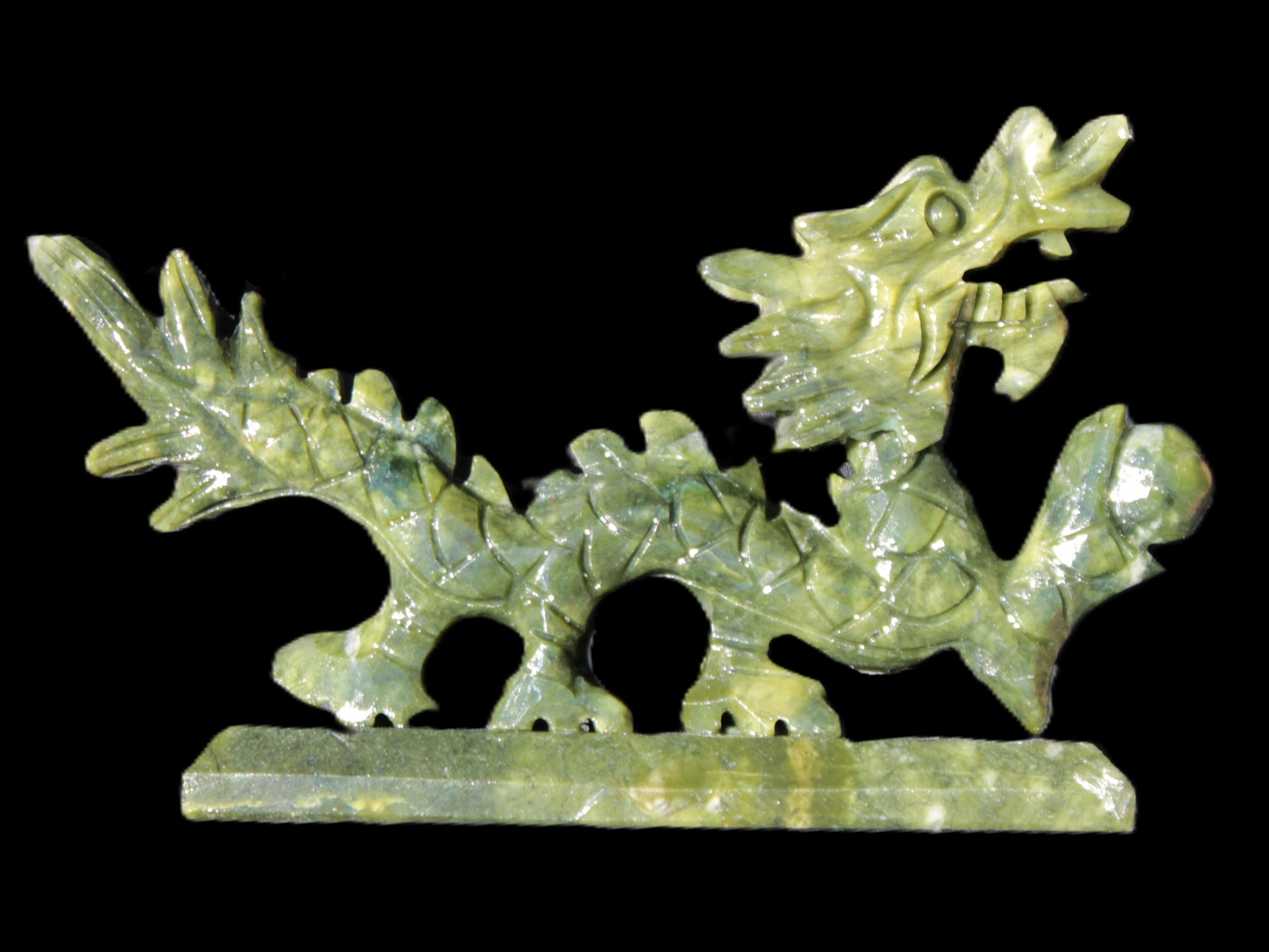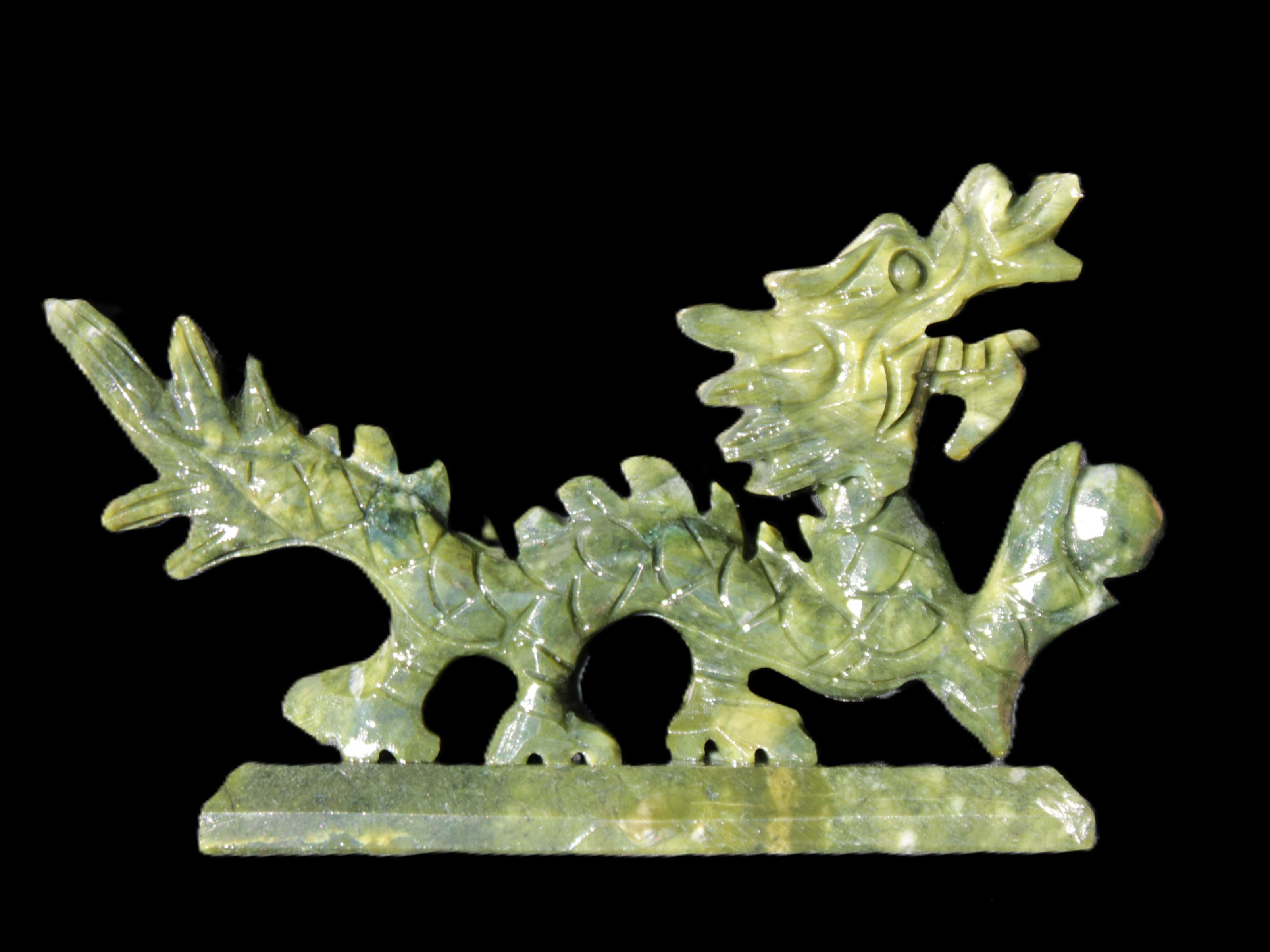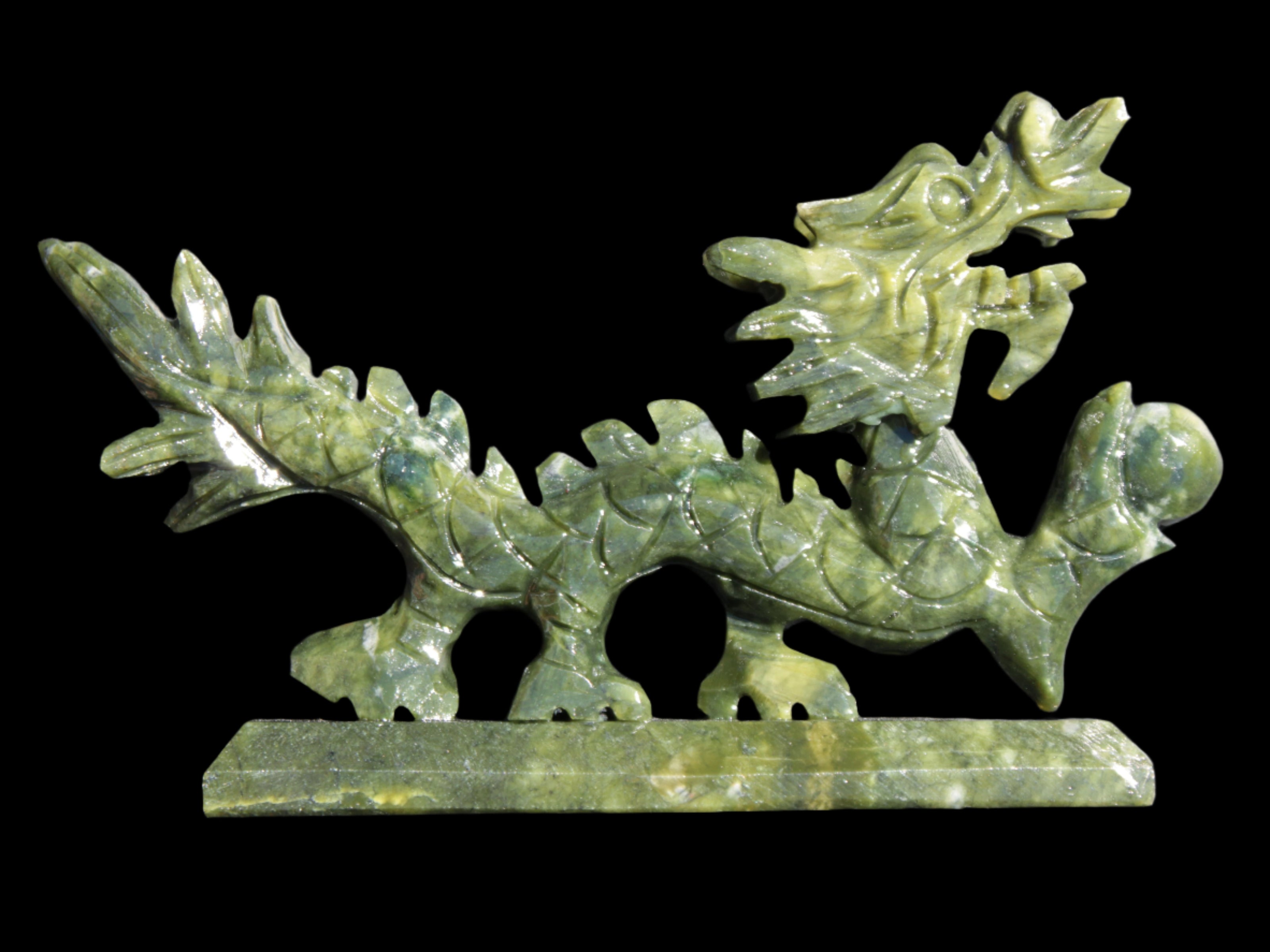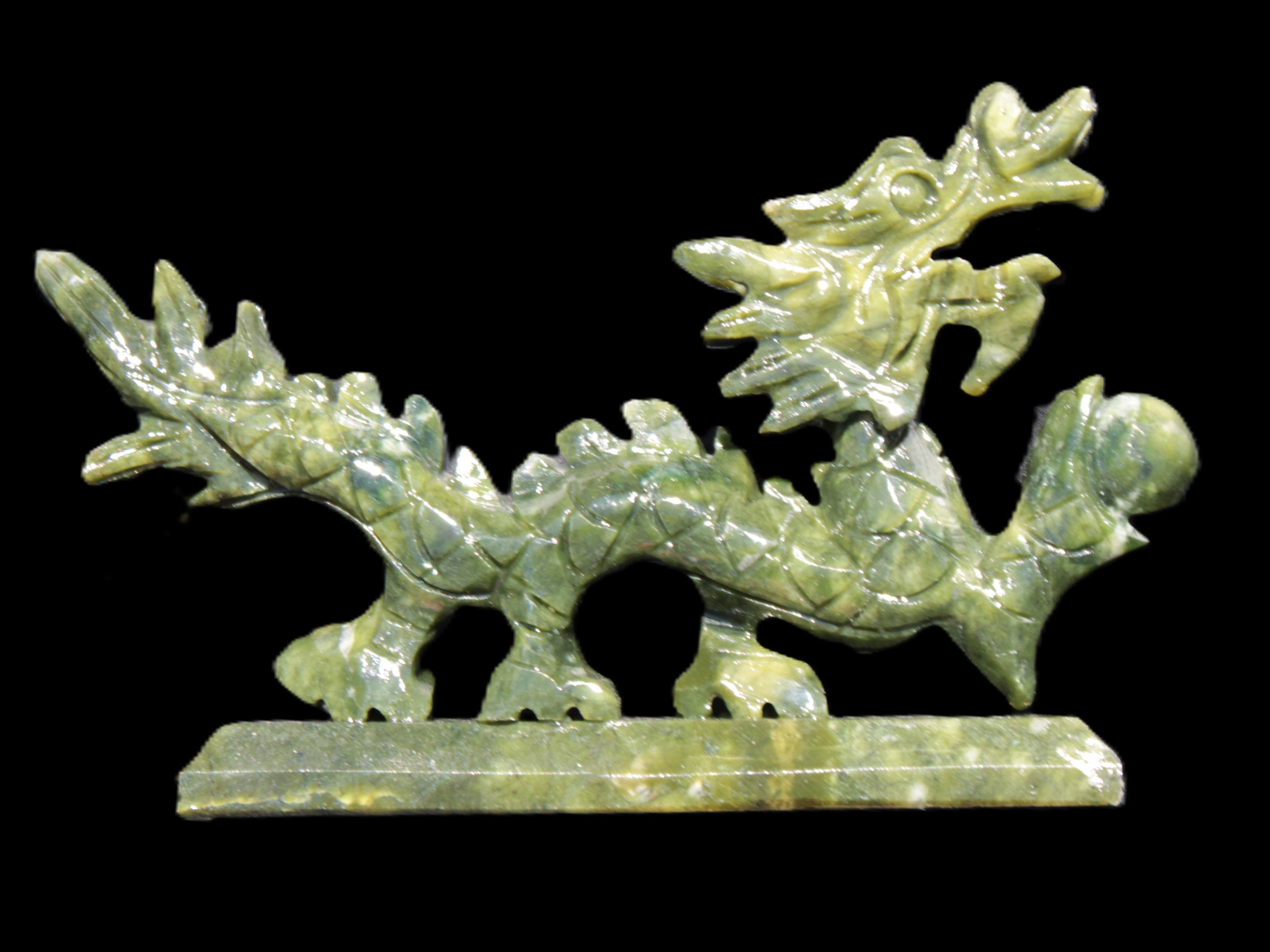 This large Green Jade dragon 200*28*118mm weighs 670g. Its base measures 37*15*136mm giving it good stability, so it won't fall over easily. The dragon is a symbol of power, change, and spirituality. The dragon also represents good luck, fortune, and prosperity. This complements the stone it is carved from. Jade is a traditional good luck stone, bringing wealth and abundance.