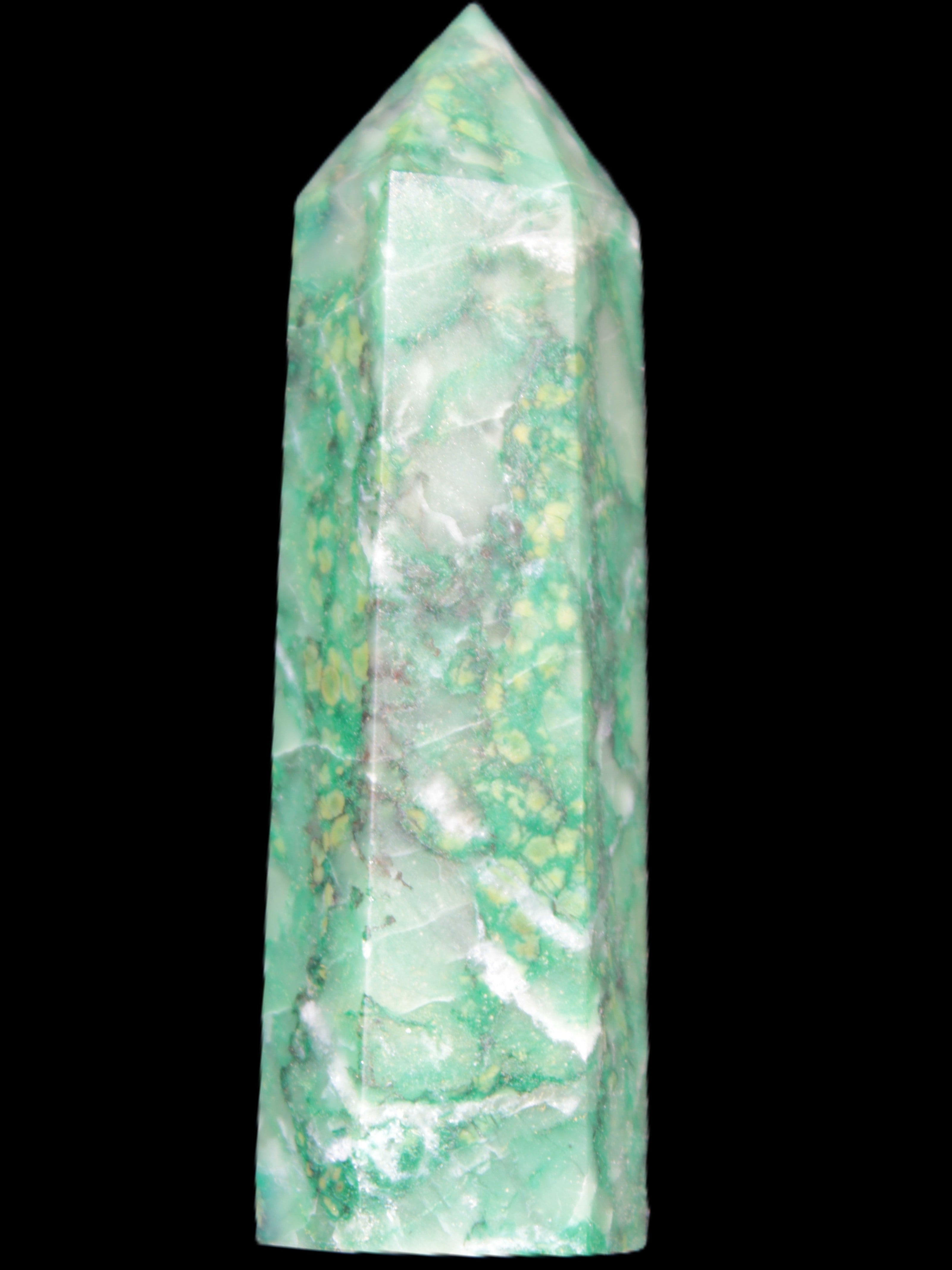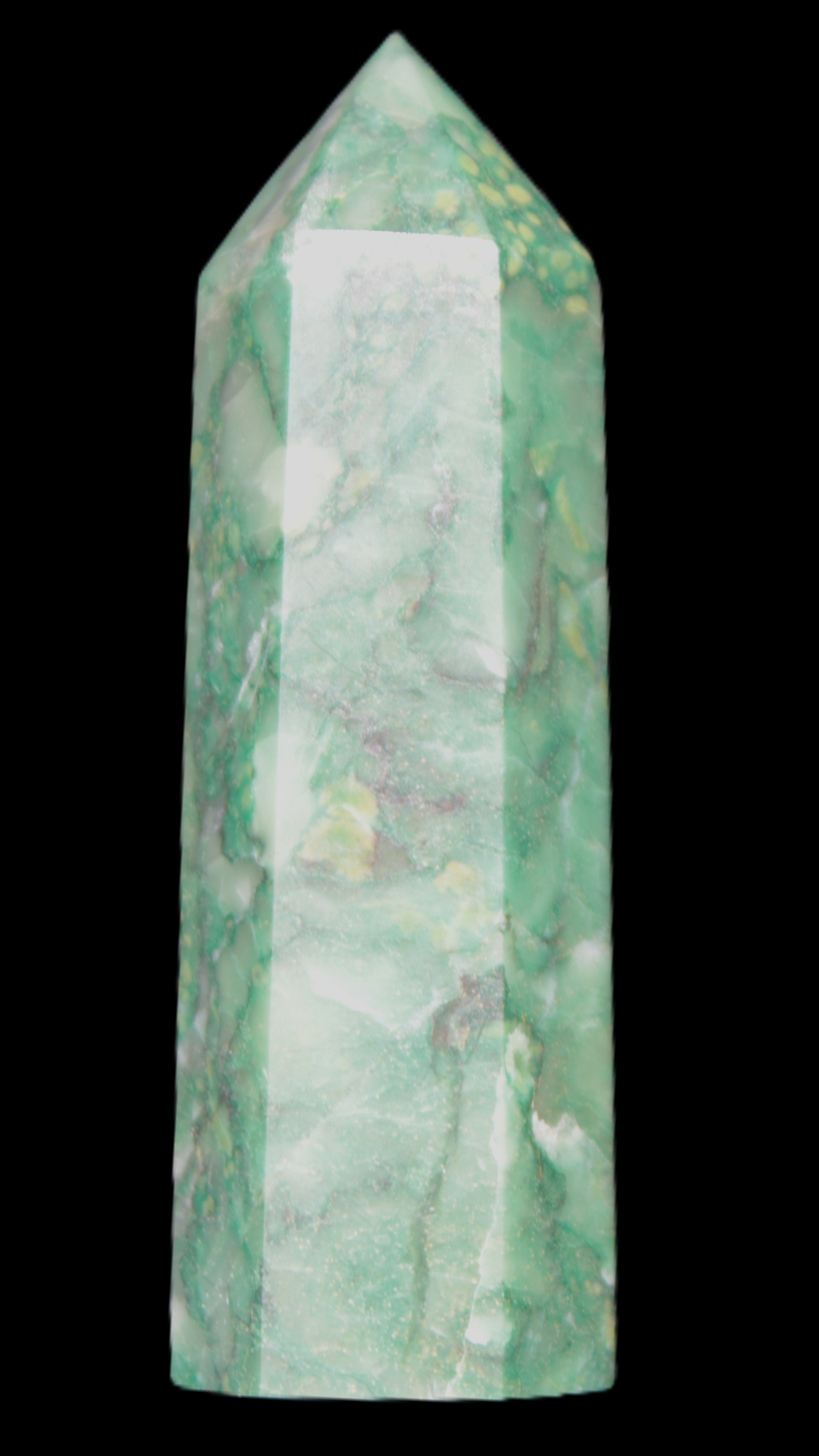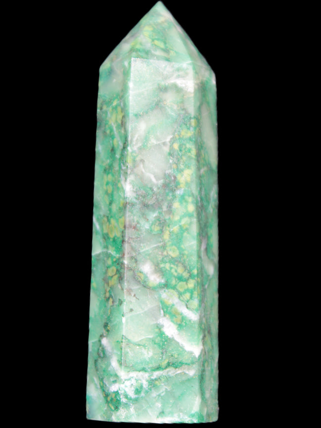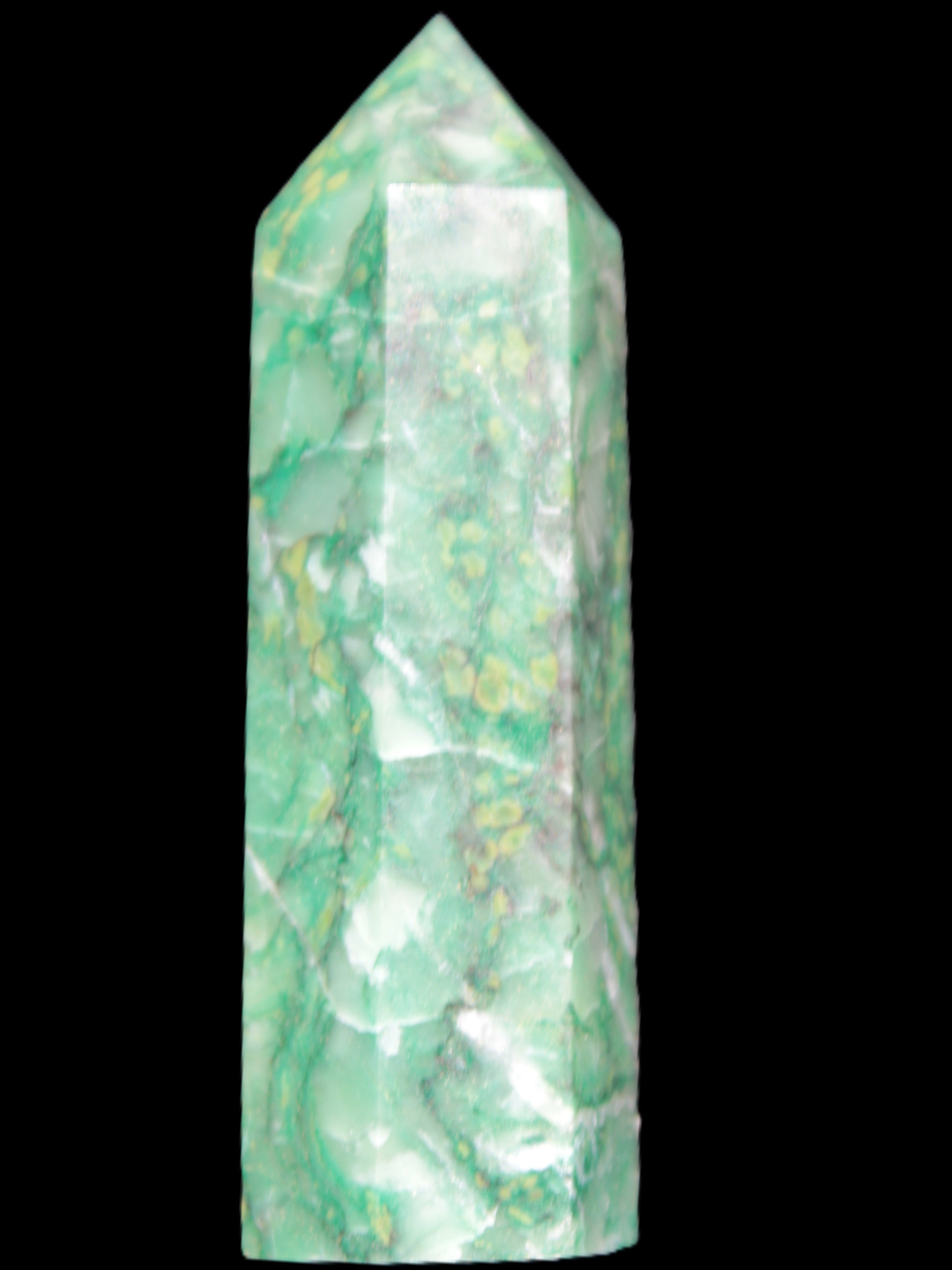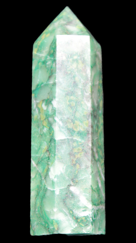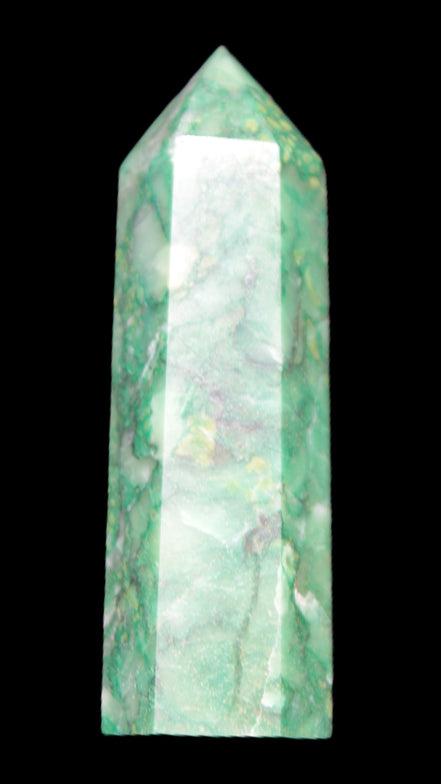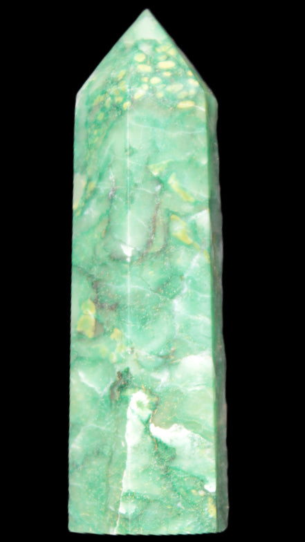 This unusual and beautiful Green Jasper wand 86*22mm weighs 92g. Jasper is a stone of gentleness, comfort and relaxation. It is a stone of protection, absorbing all types of negative energies. Jasper is the supreme nurturer. Its energies bring a soothing sense of joy. Jasper sustains and supports during times of stress. Jasper unifies all aspects of your life, bringing tranquillity and wholeness. Jasper stimulates creativity and imagination, transforming ideas into action. It can help with focus, organisation and the motivation to follow through.