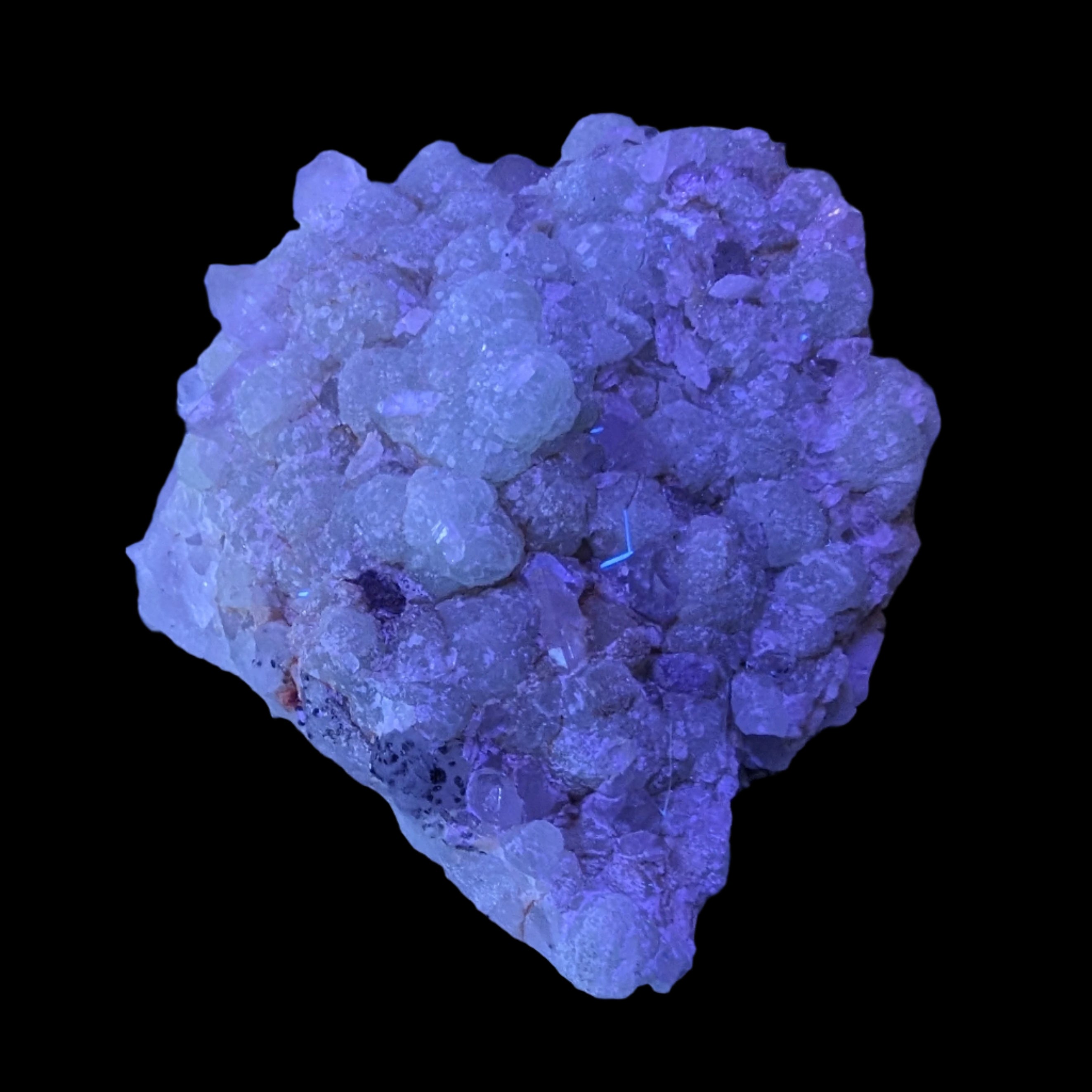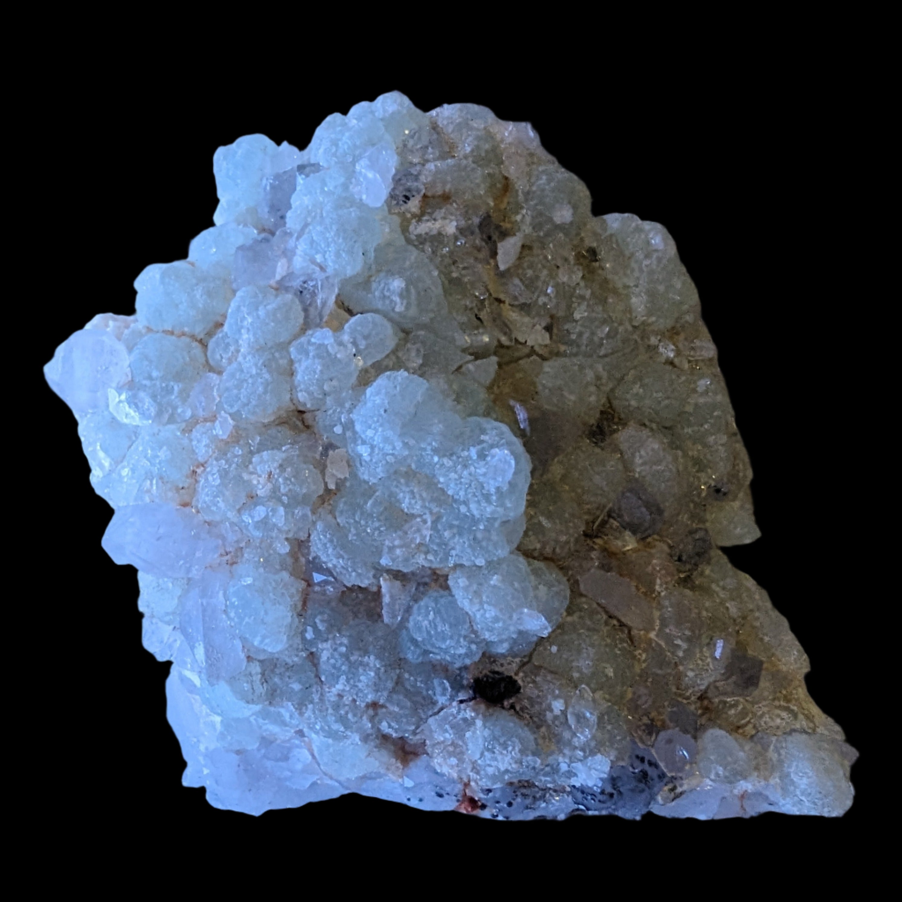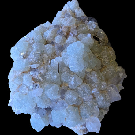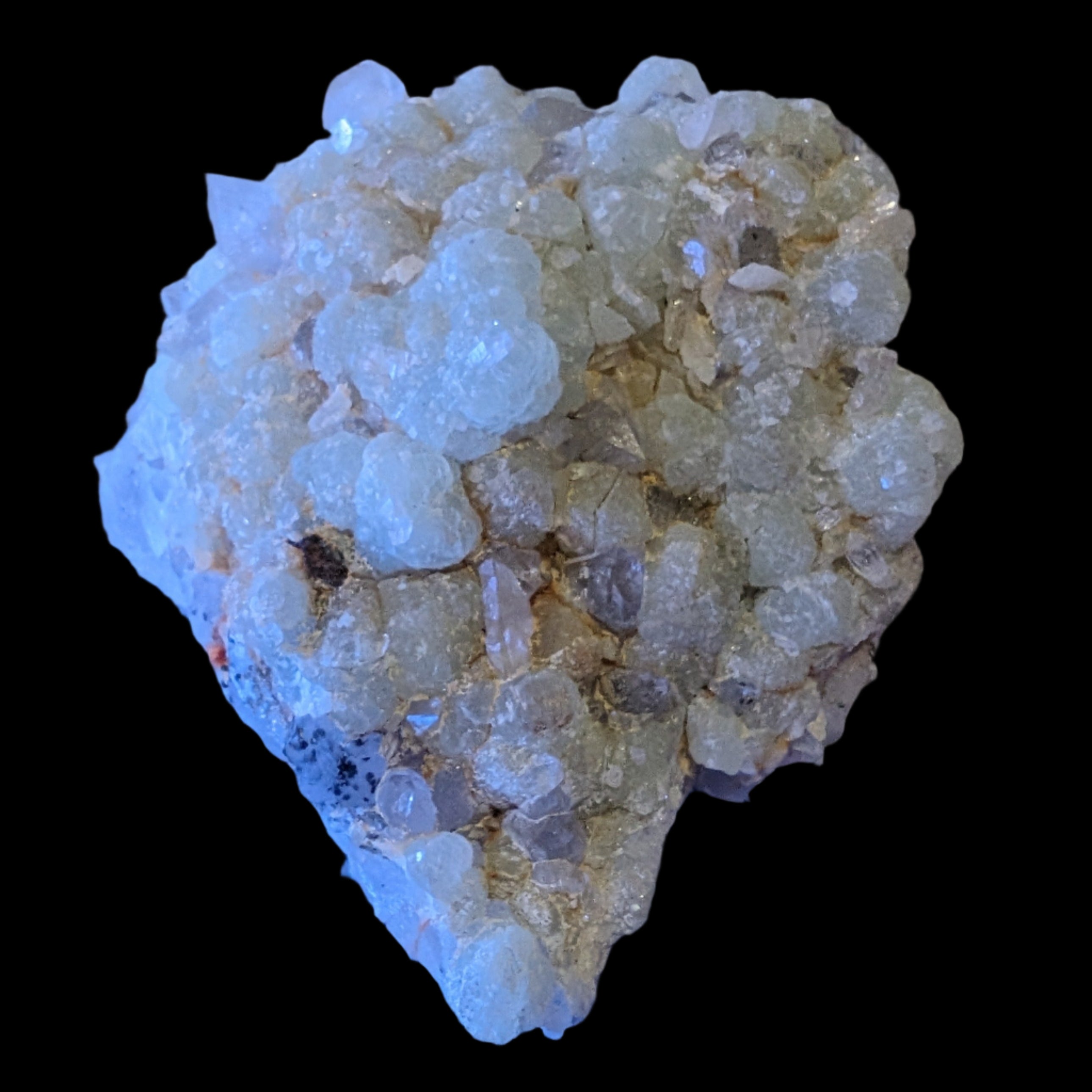 This Green Prehnite with Quartz complex natural crystal cluster specimen, from Guizhou, China, weighs 203g. Prehnite is a calcium aluminium silicate hydroxide. It usually forms in massive, botryoidal, granular or stalactite habits. It also rarely forms as prismatic, pyramidal or tabular crystals. Prehnite commonly occurs with intergrowths of Epidote. Prehnite is translucent and rarely transparent with a vitreous, waxy or pearly lustre. Its usual colour is green or yellow. Prehnite is UV reactive.