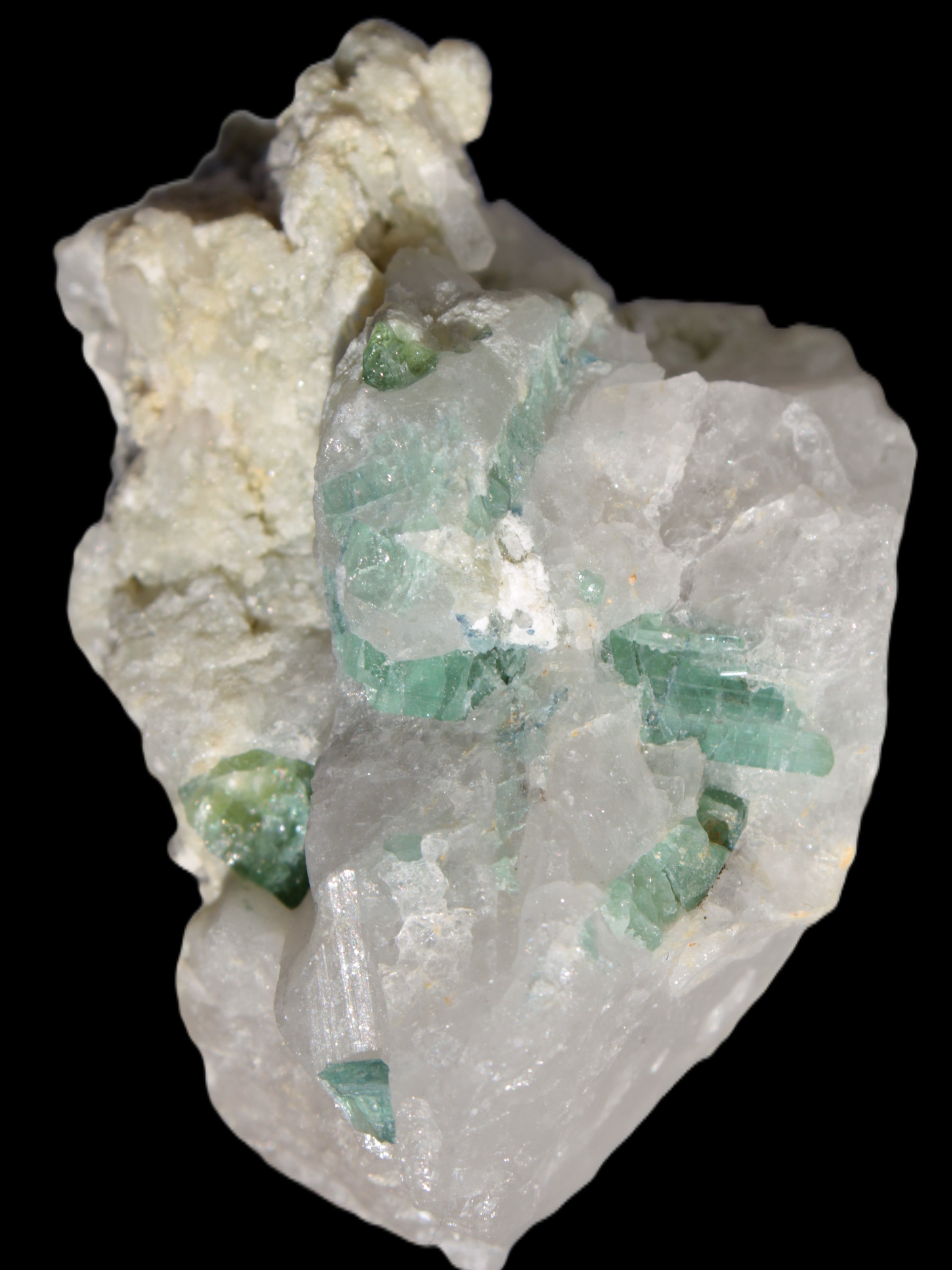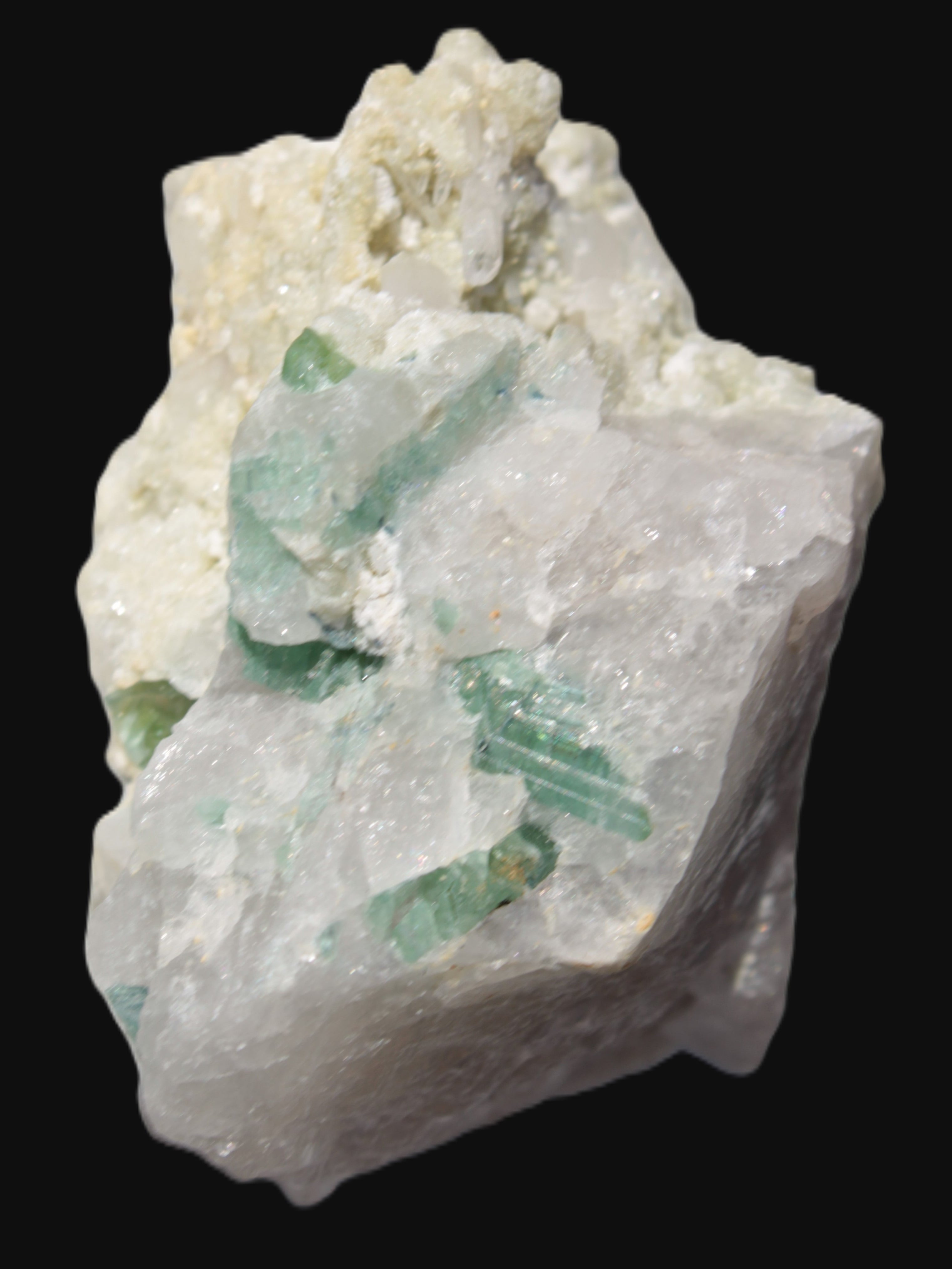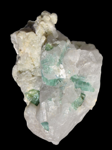 Green Tourmaline is a complex lithium rich borosilicate mineral and member of the Tourmaline family. It crystallizes in the form of elongated rods or triangular and pyramidal crystals. It is usually associated with Quartz. Green Tourmaline is a powerful heart-activation stone. It brings invigorating energy of growth and expansion to the emotional body. The resonance of Green Tourmaline aligns with the heart chakra, helping to calm the nervous system and emotions.
