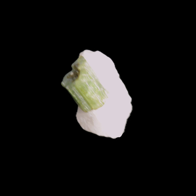 This tiny Green Tourmaline crystal on quartz weighs 2.3g. It was obtained In Afghanistan for Rocks and Things by our partner, Lawrence Handicrafts.