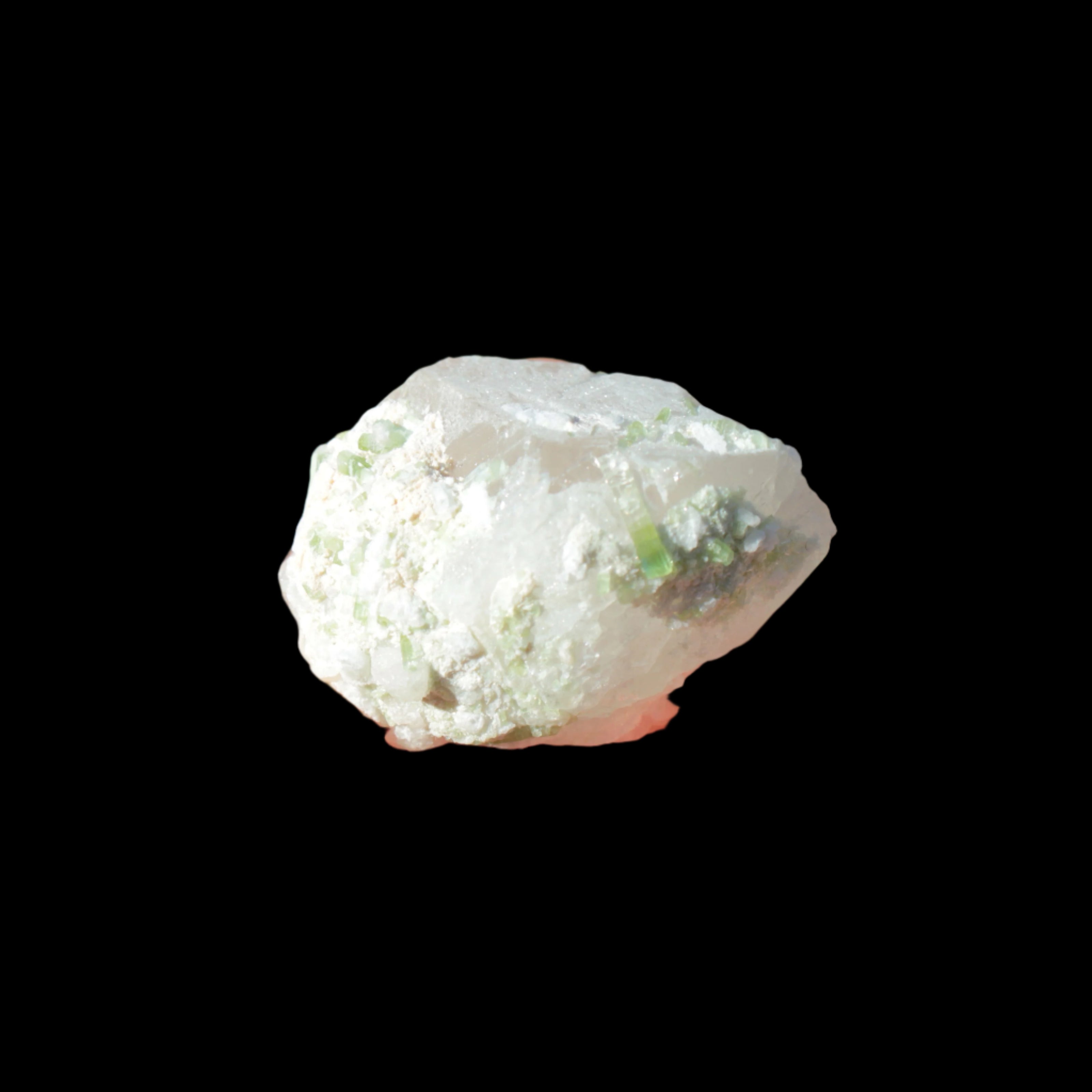 Green Tourmaline is a powerful heart-activation stone. It brings invigorating energy of growth and expansion to the emotional body. The resonance of Green Tourmaline aligns with the heart chakra, helping to calm the nervous system and emotions.